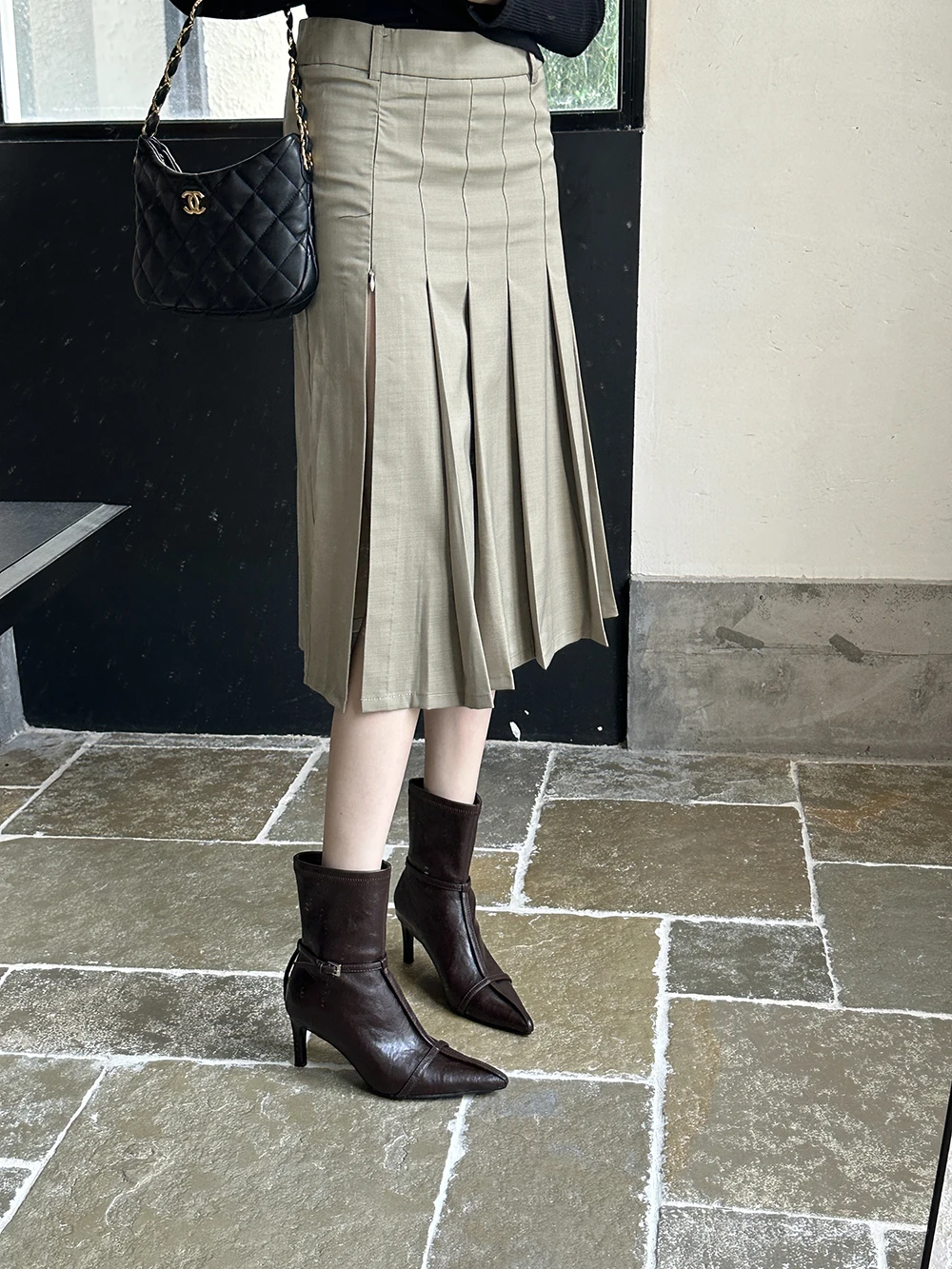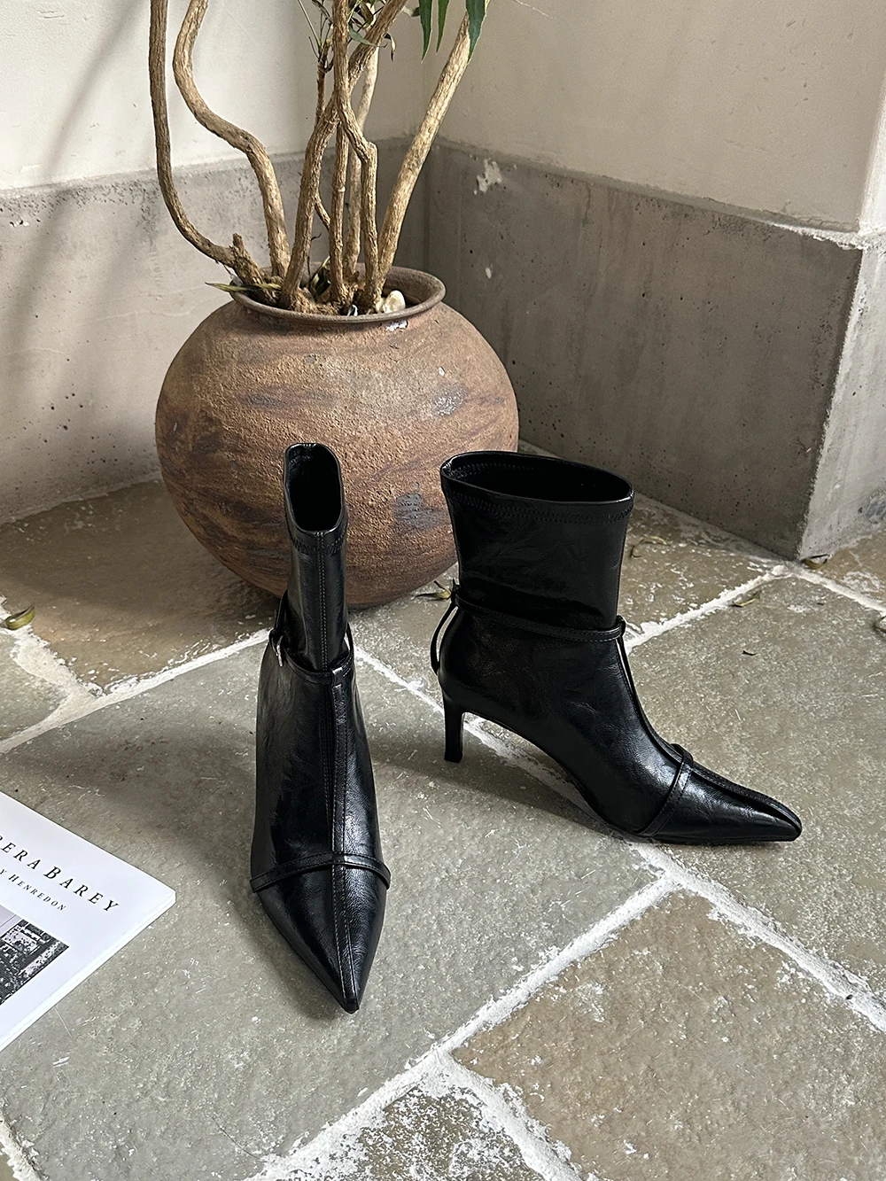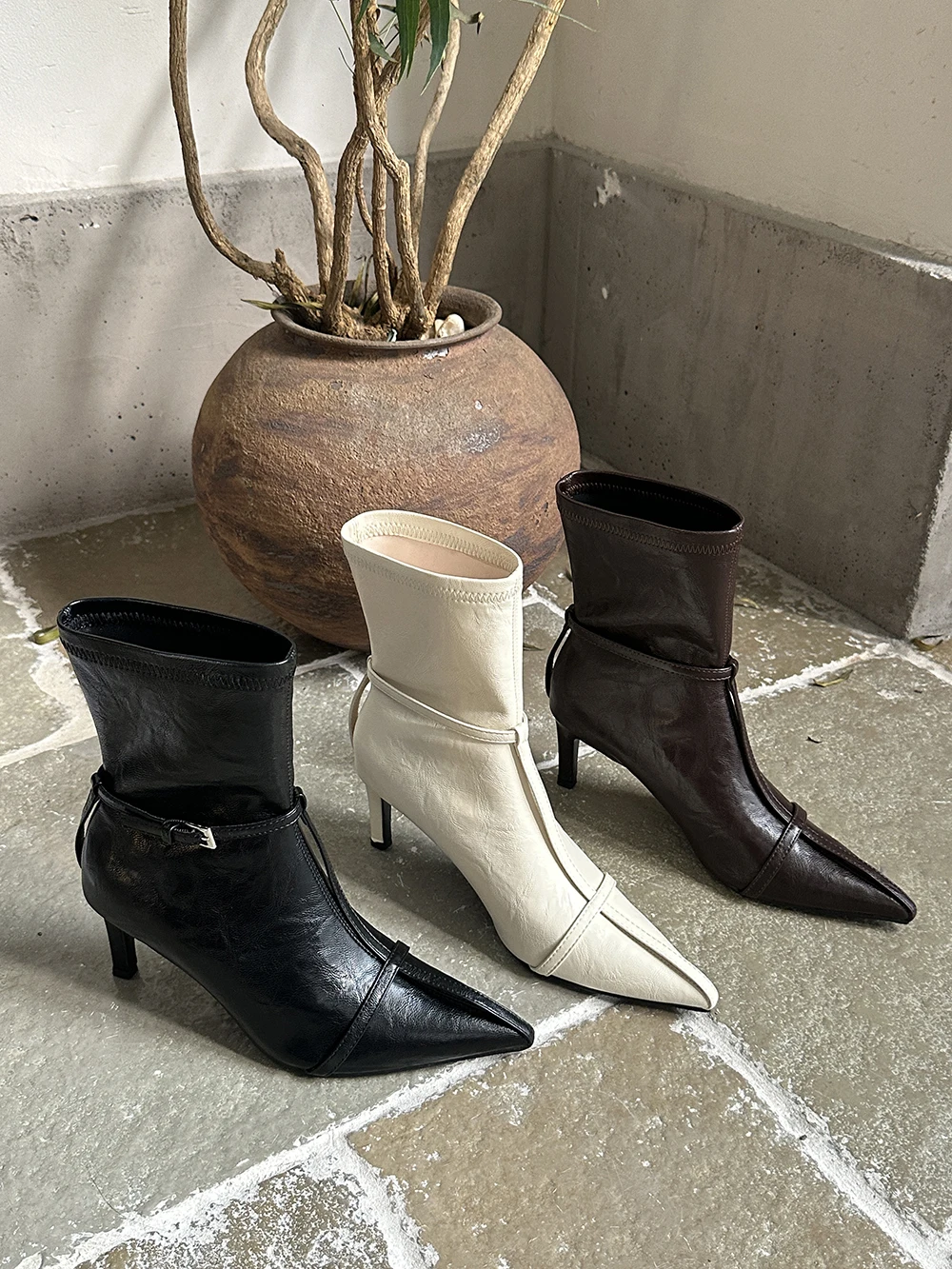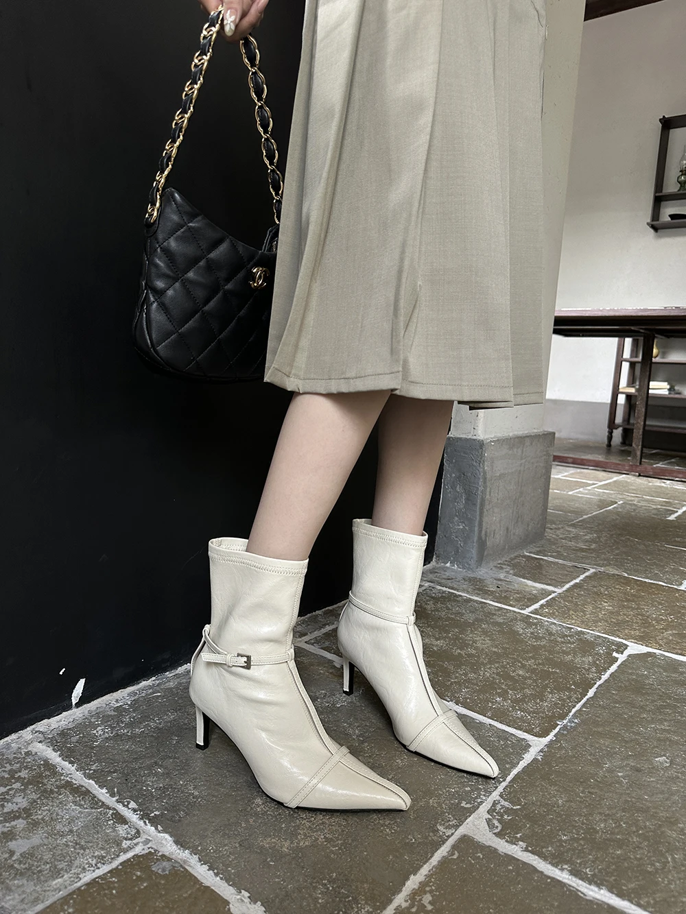 LBSFY - Pointed Toe Women Ankle Boots Chelsea Botas Thin High Heels Black Beige Brown Side Zipper Party Pumps Shoes Woman Size 35-39