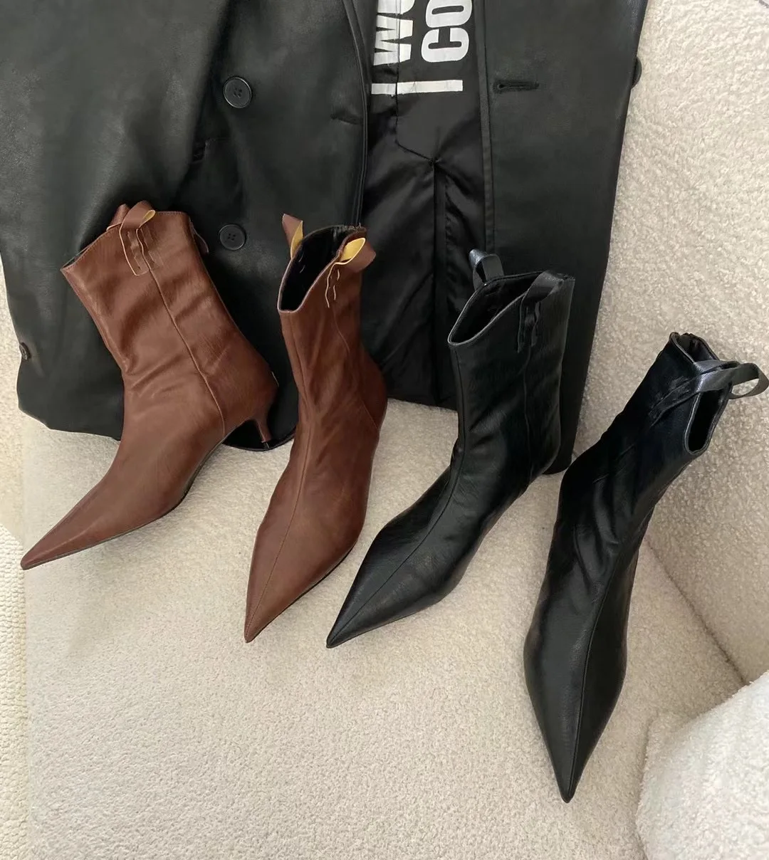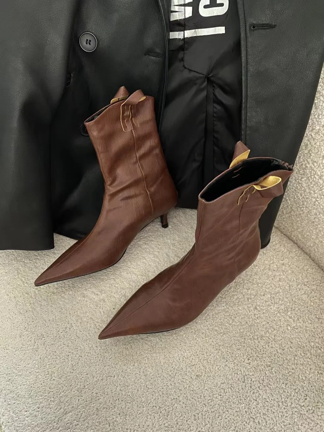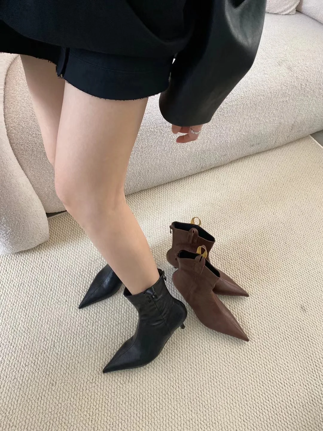 LBSFY - Pointed Toe Women Ankle Boots Chelsea Short Botas Thin Mid Heels 2024 New Arrivals Black Brown Retro Style Party Pumps 35-39