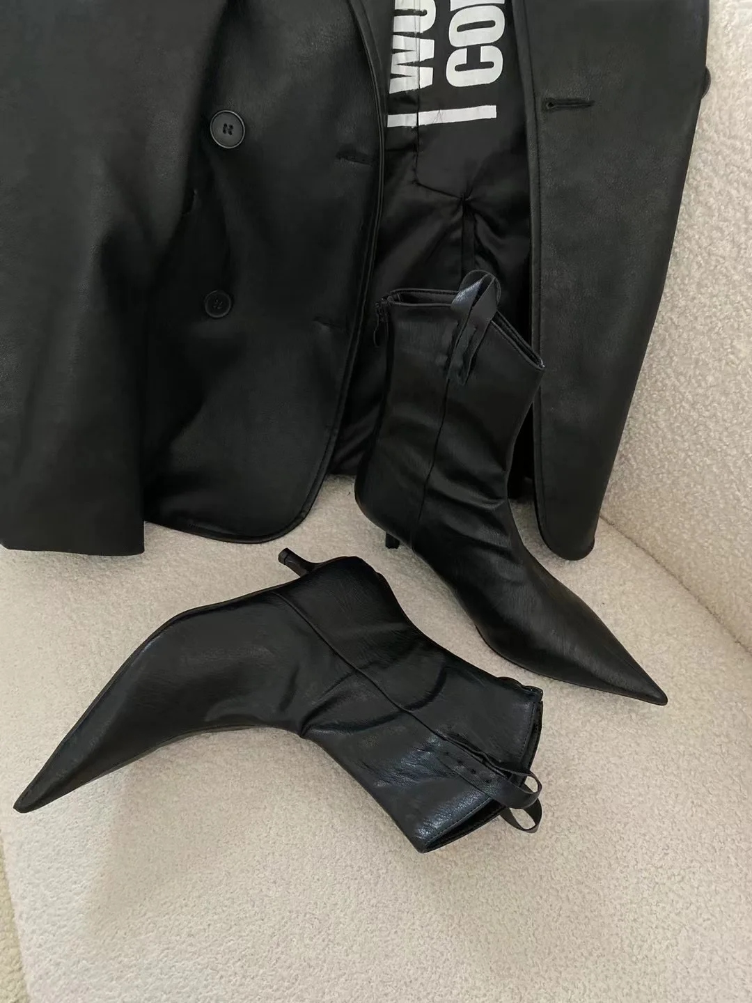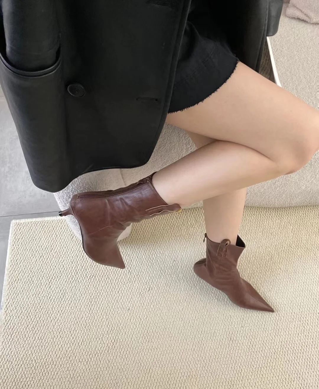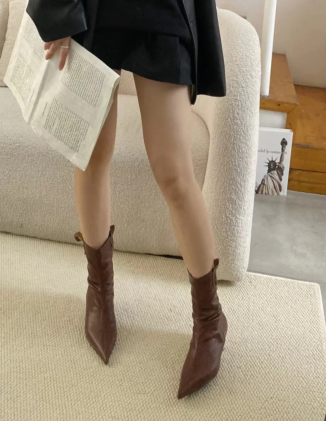 LBSFY - Pointed Toe Women Ankle Boots Chelsea Short Botas Thin Mid Heels 2024 New Arrivals Black Brown Retro Style Party Pumps 35-39