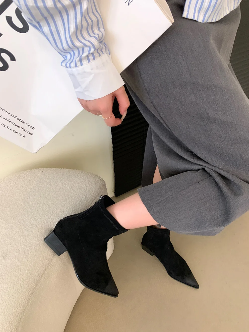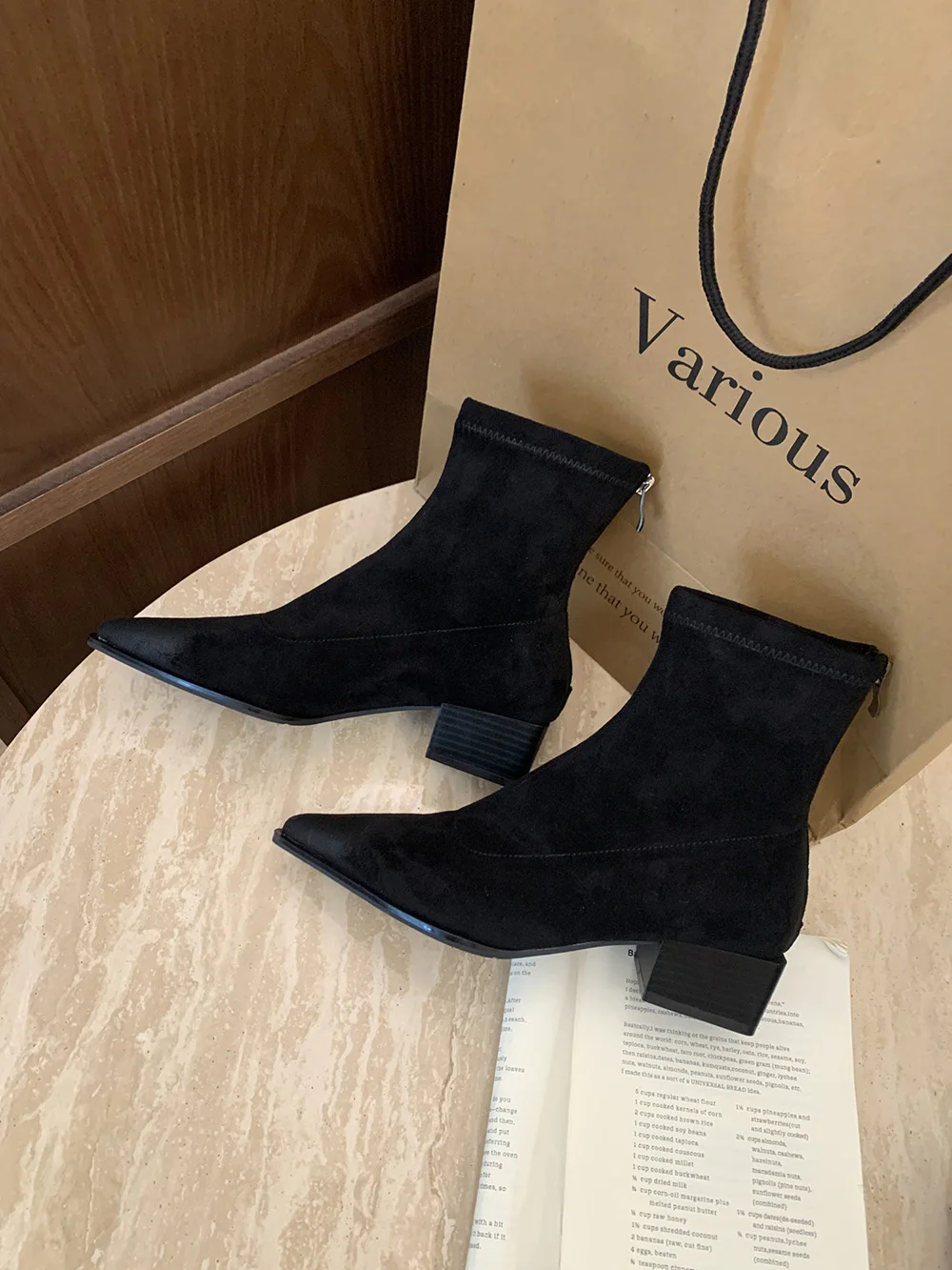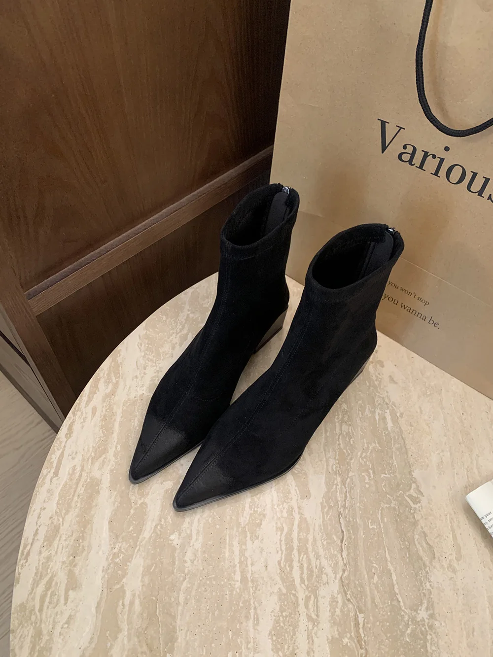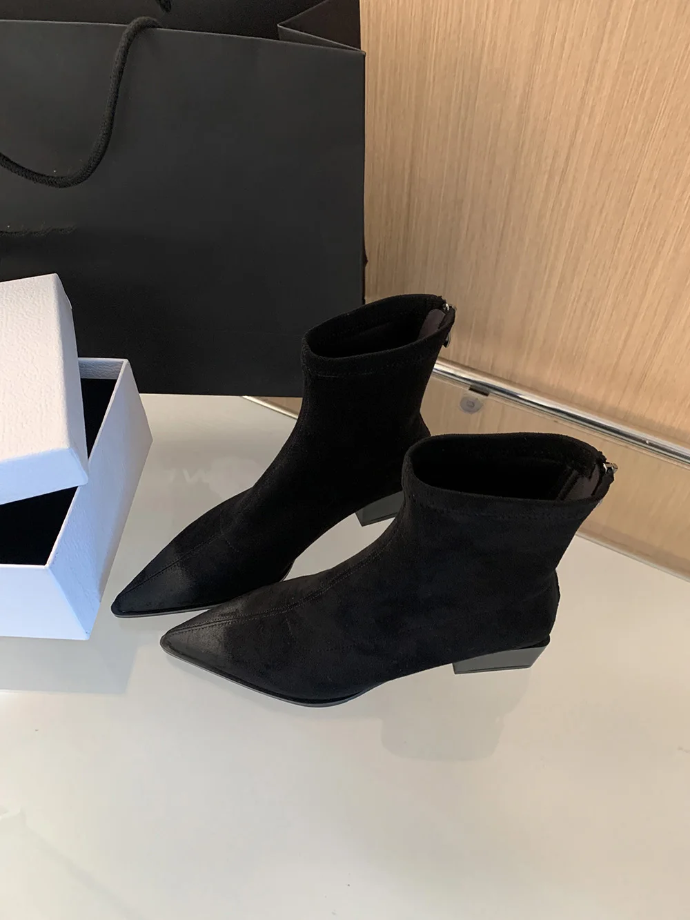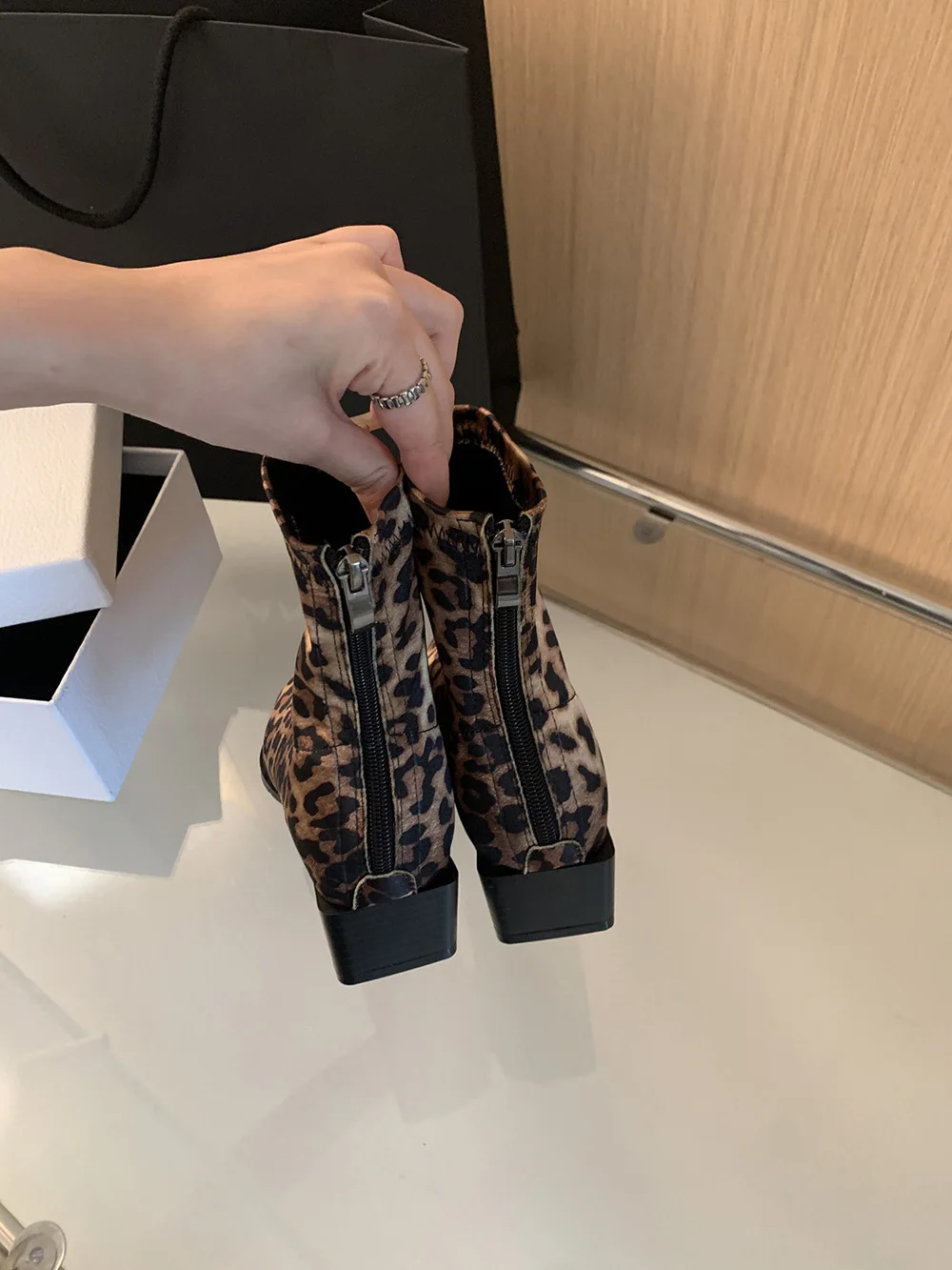 LBSFY - Pointed Toe Women Ankle Boots Leopard Black Beige Winter Chelsea Boots Flat Low Heels Sock Stretch Shoes Woman Size 35-39