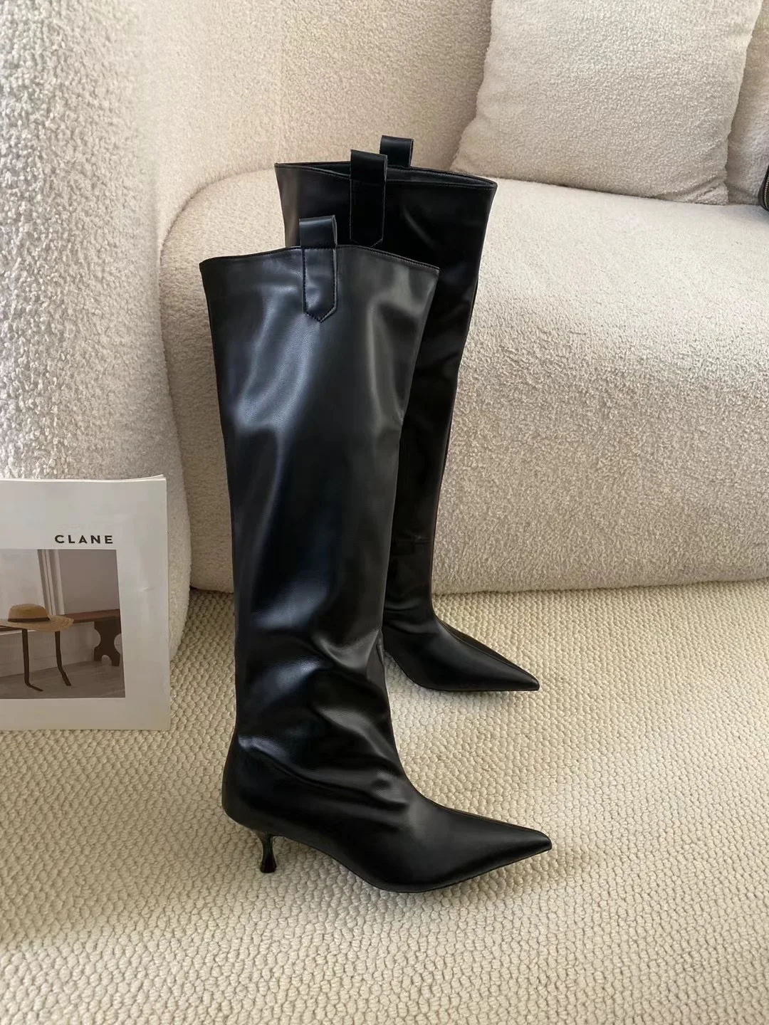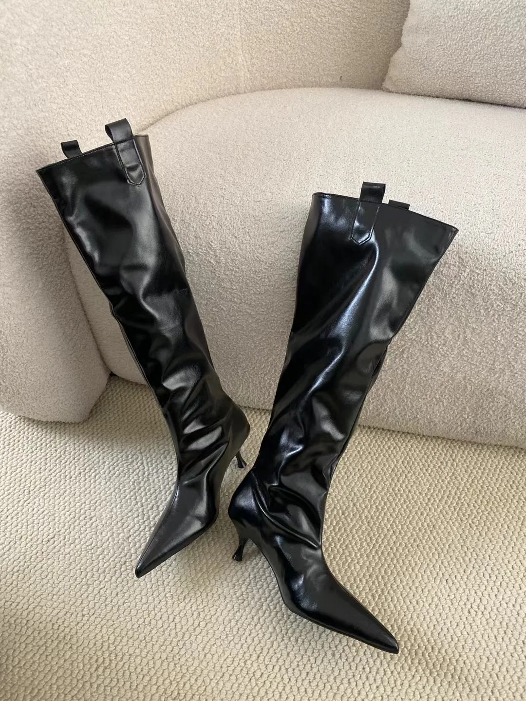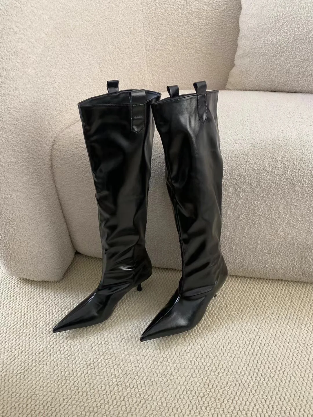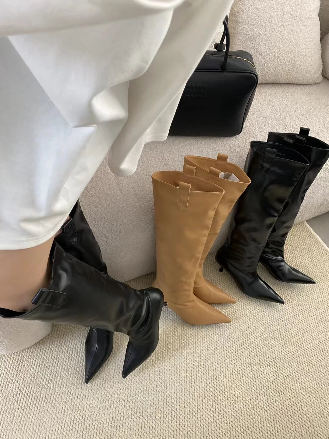 LBSFY - Pointed Toe Women Knee High Boots Black Brown Thin High Heels Shallow Slip On Chelsea Botas Fashion Party Pumps Shoes Woman 39