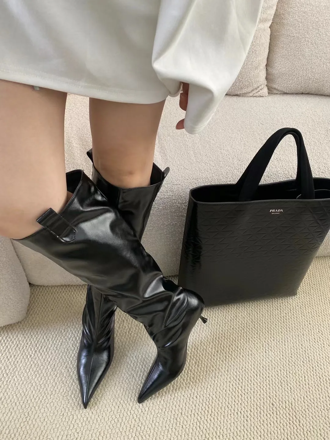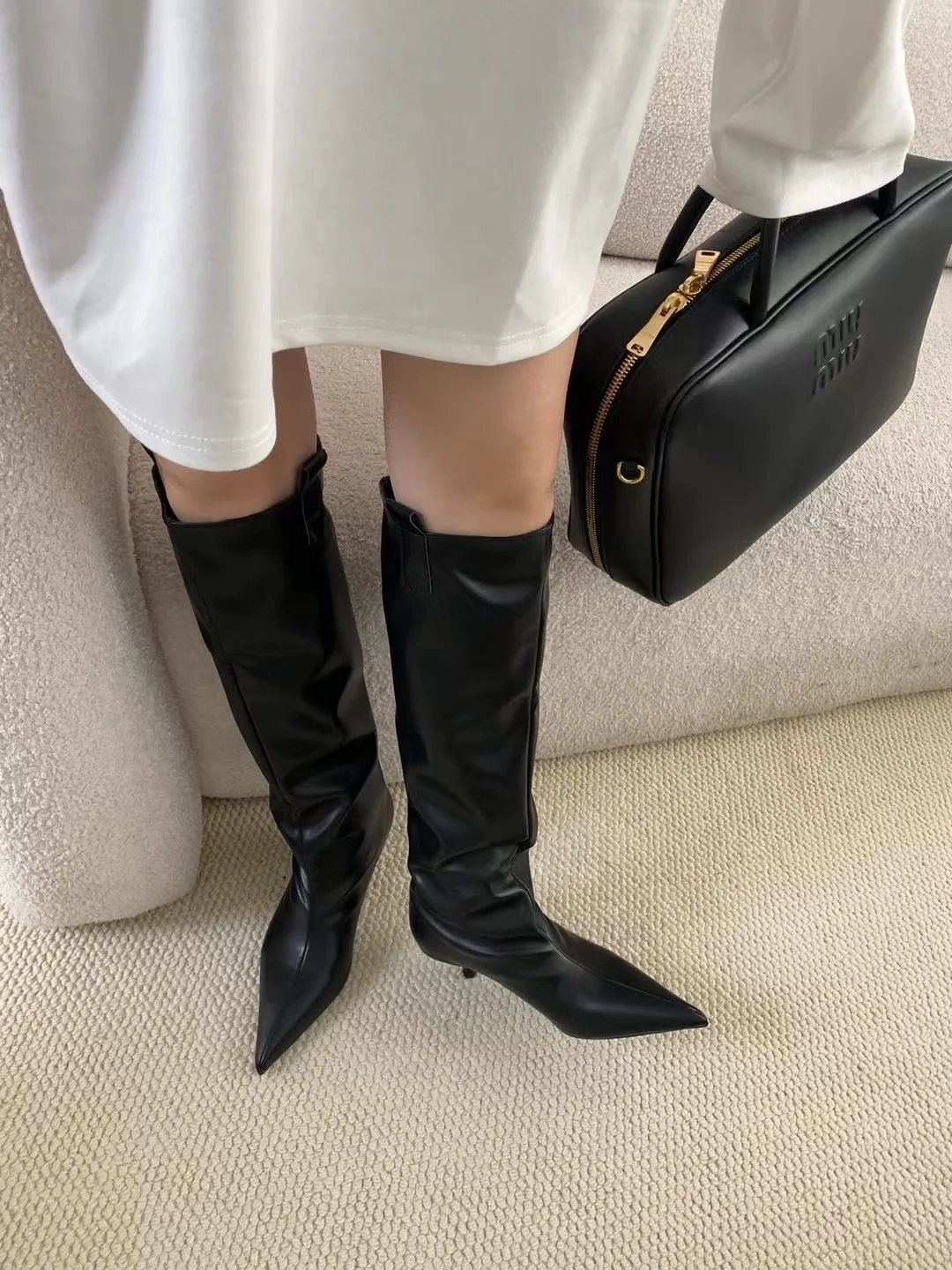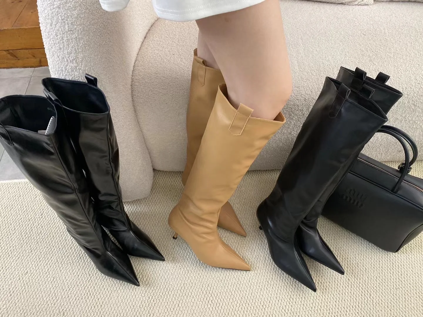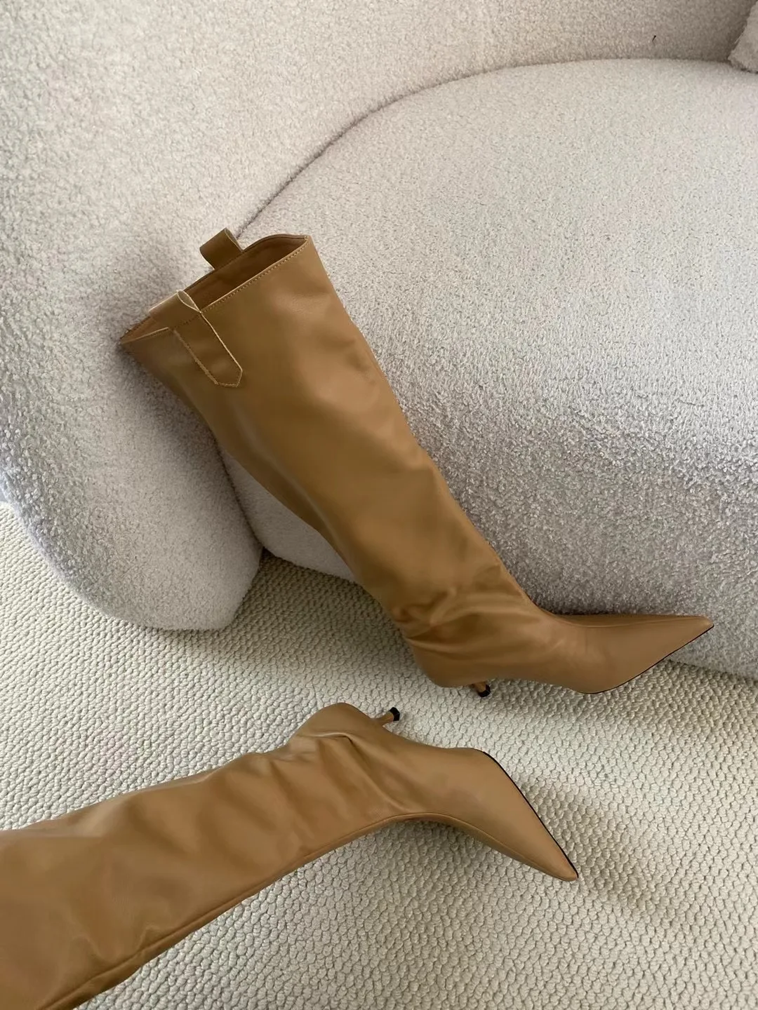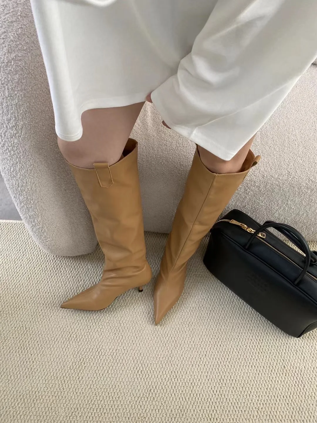 LBSFY - Pointed Toe Women Knee High Boots Black Brown Thin High Heels Shallow Slip On Chelsea Botas Fashion Party Pumps Shoes Woman 39