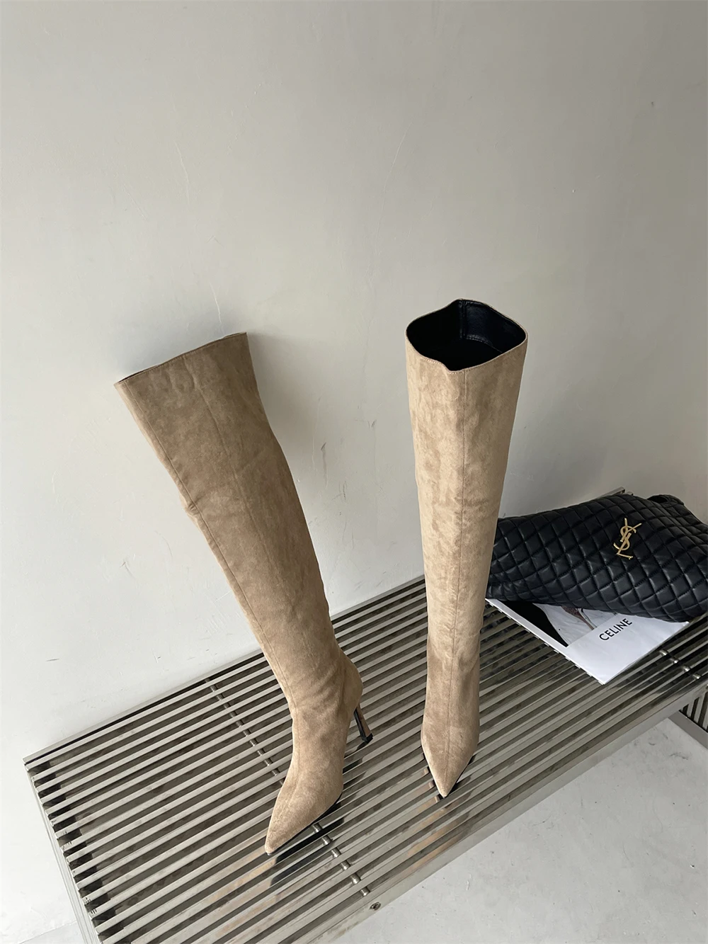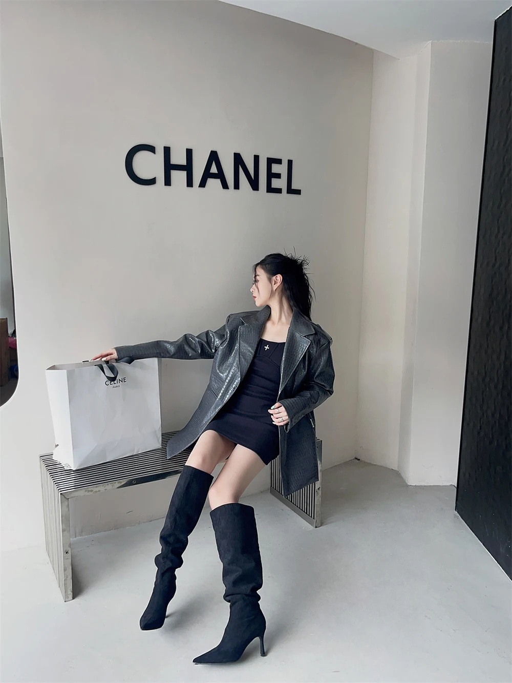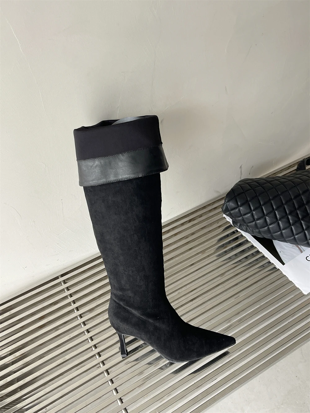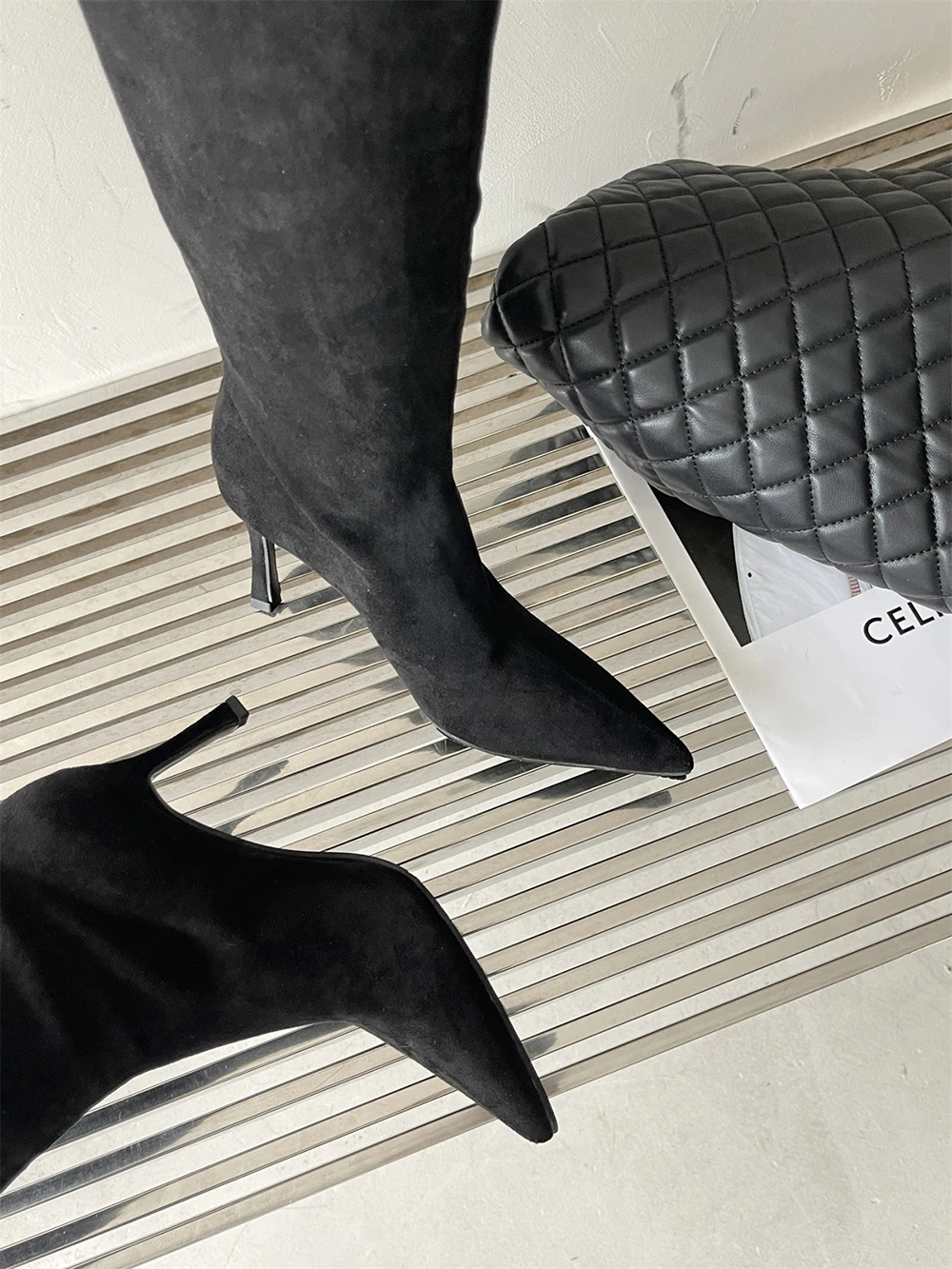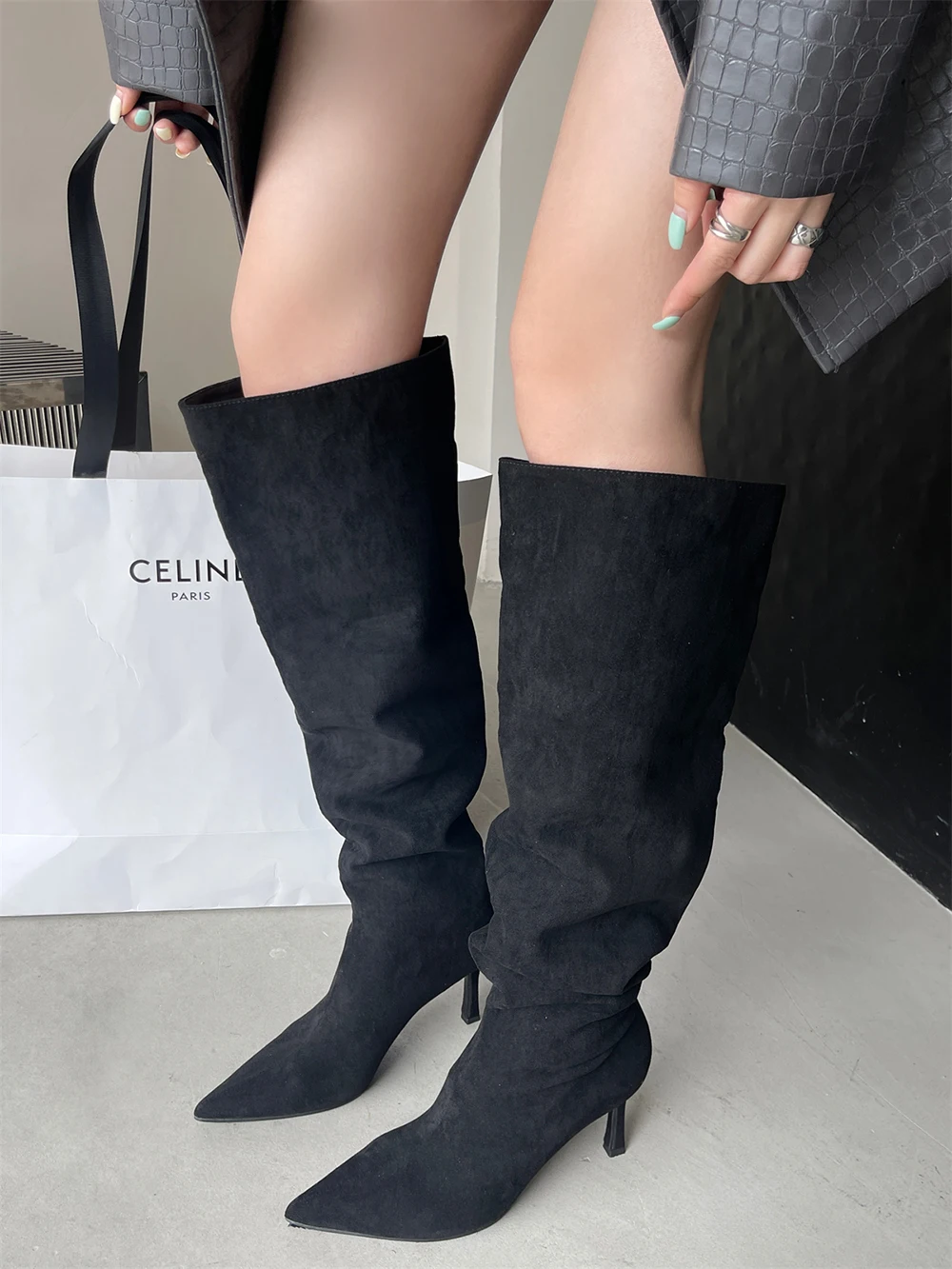 LBSFY - Pointed Toe Women Knee High Boots Chelsea Bootie Black Leopard Beige Zebra Winter Party Pumps Shoes Woman Slip On Size 35-40