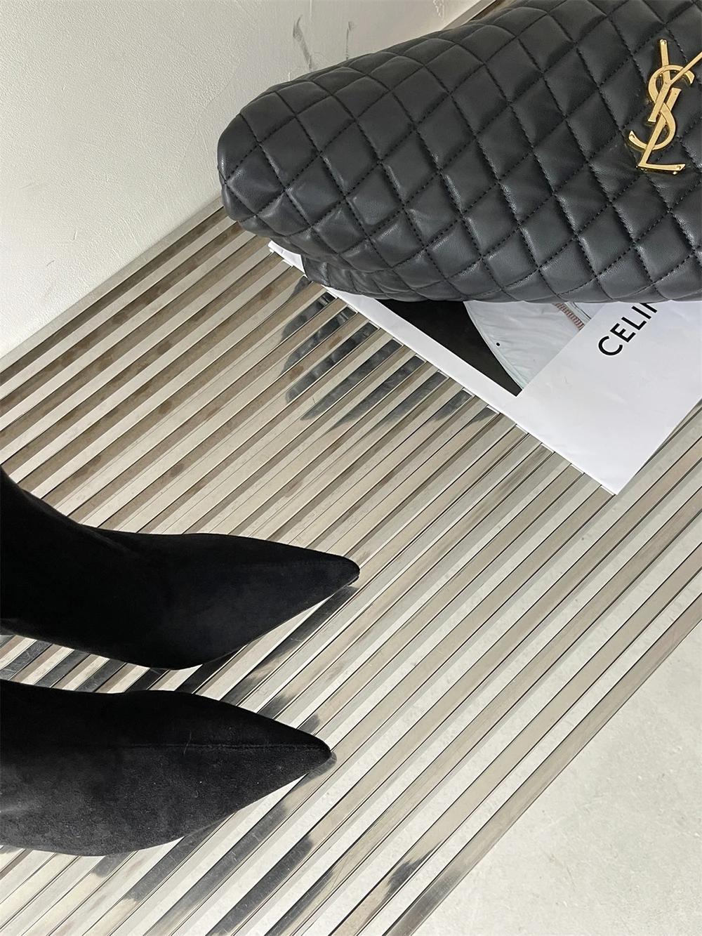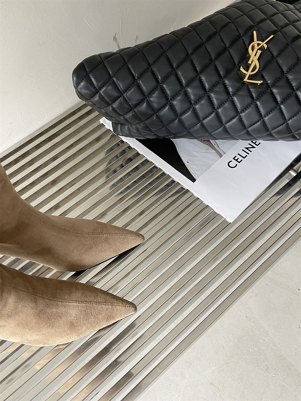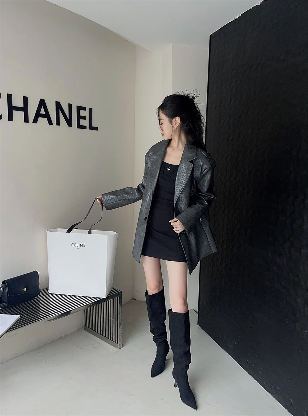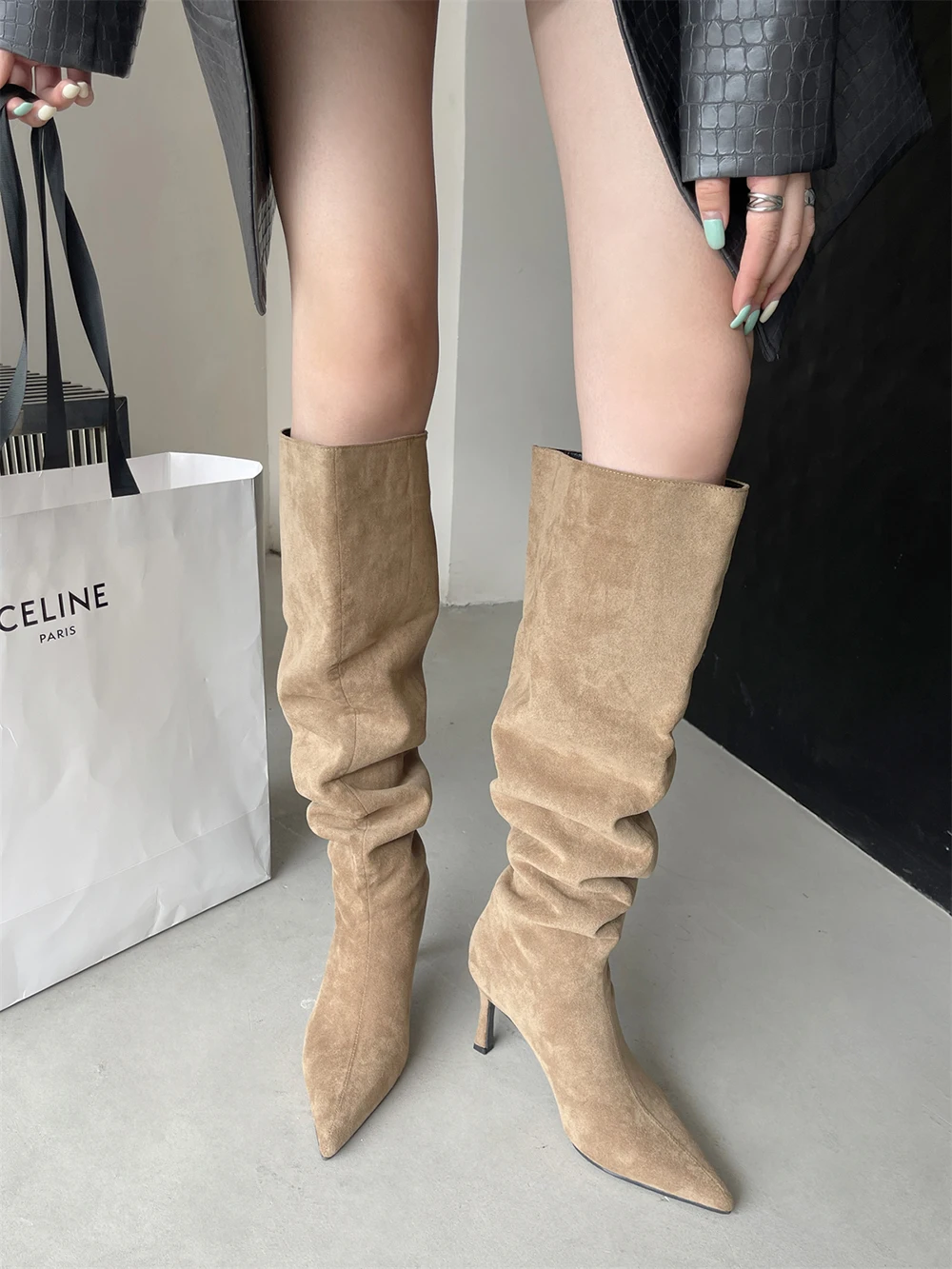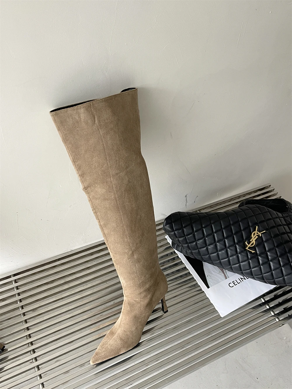 LBSFY - Pointed Toe Women Knee High Boots Chelsea Bootie Black Leopard Beige Zebra Winter Party Pumps Shoes Woman Slip On Size 35-40