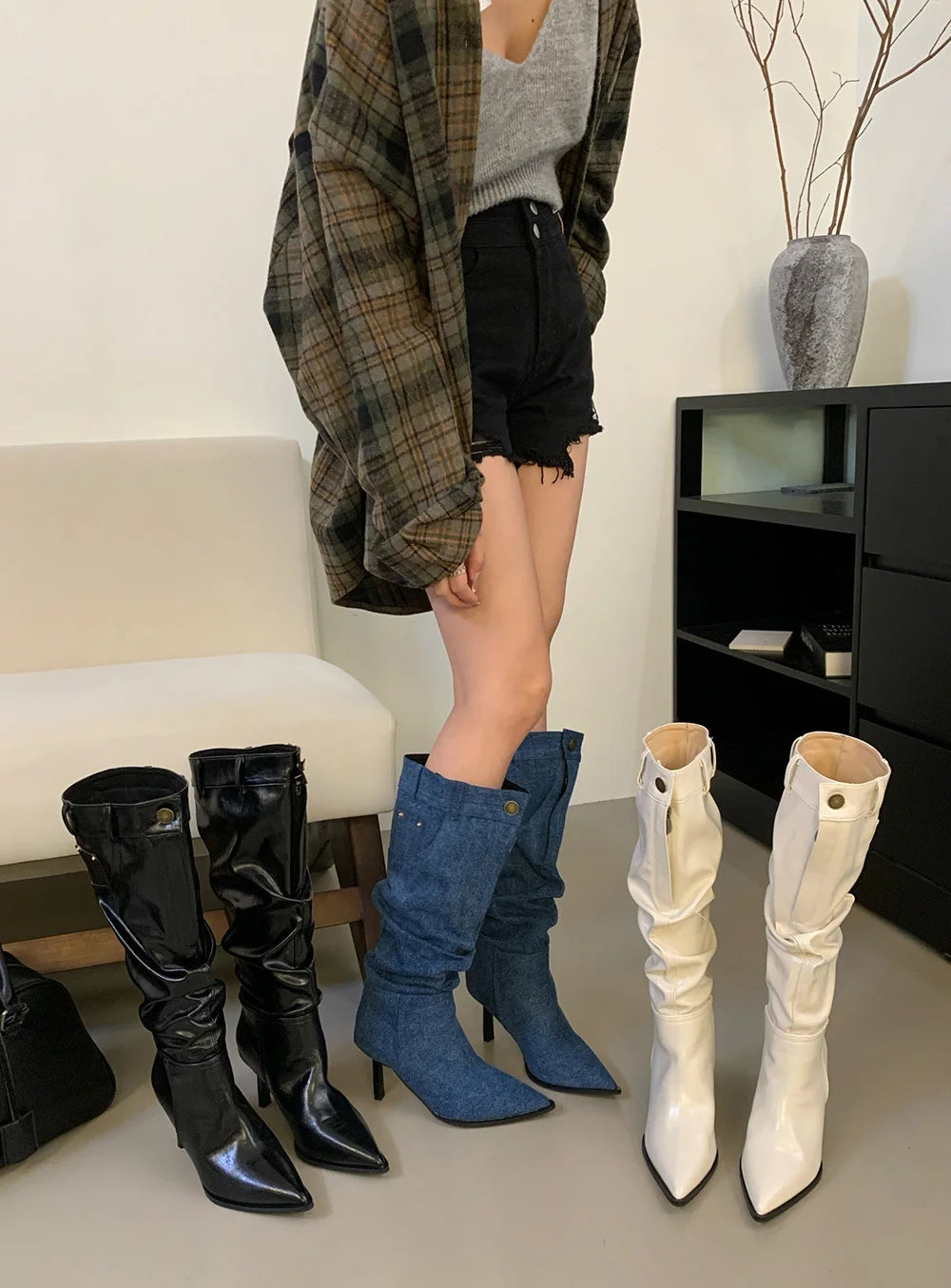 LBSFY - Pointed Toe Women Knee High Boots Knight Botas Thin High Heels Black Blue Beige 2024 New Arrivals Party Pumps Shoes Woman 35-39