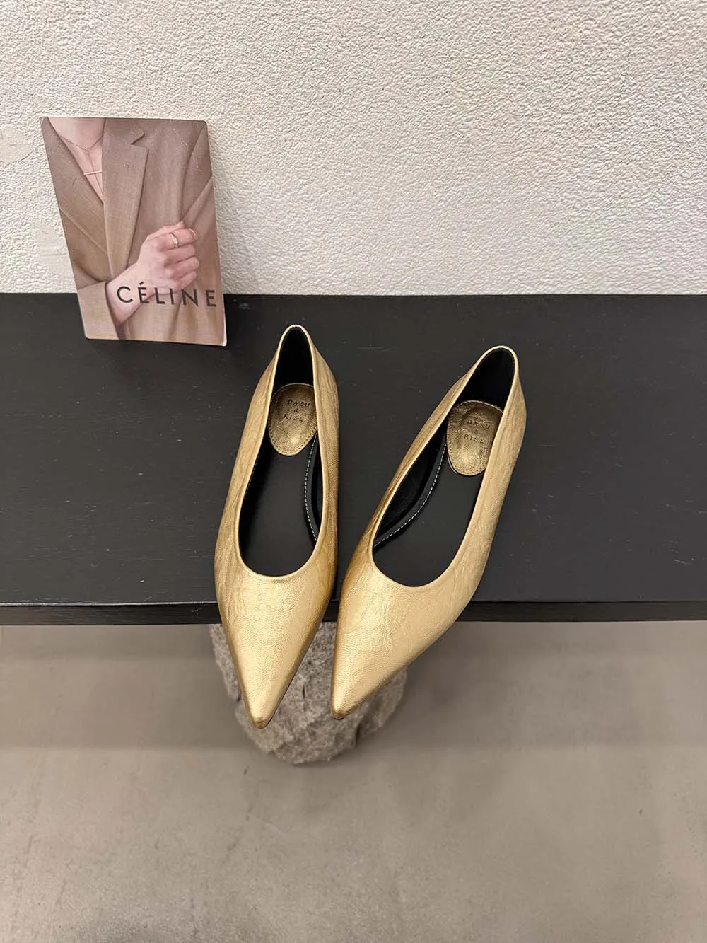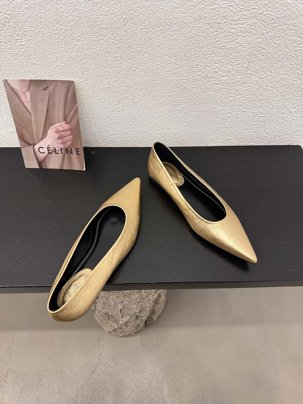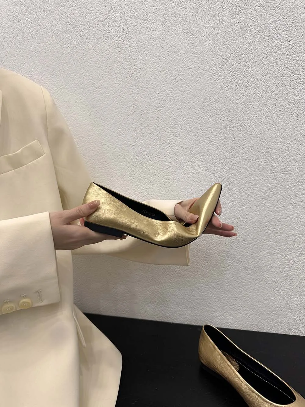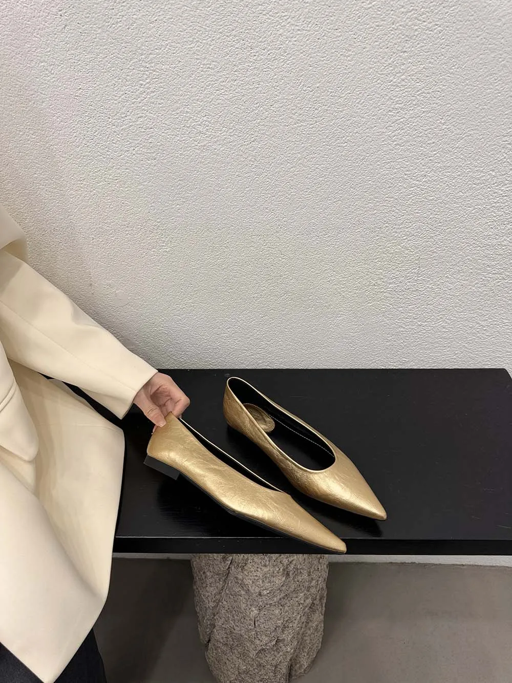LBSFY - Pointed Toe Women Loafers 2024 New Arrivals Autumn Spring Dress Shoes Casual Fashion Laies Low Heeled Solid Color Black Gold 39