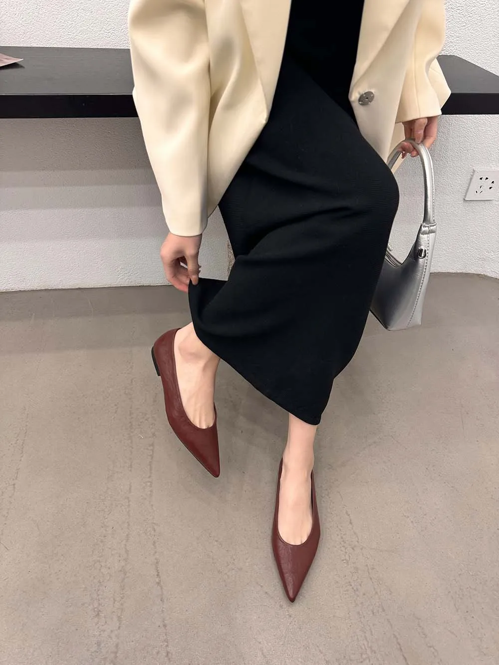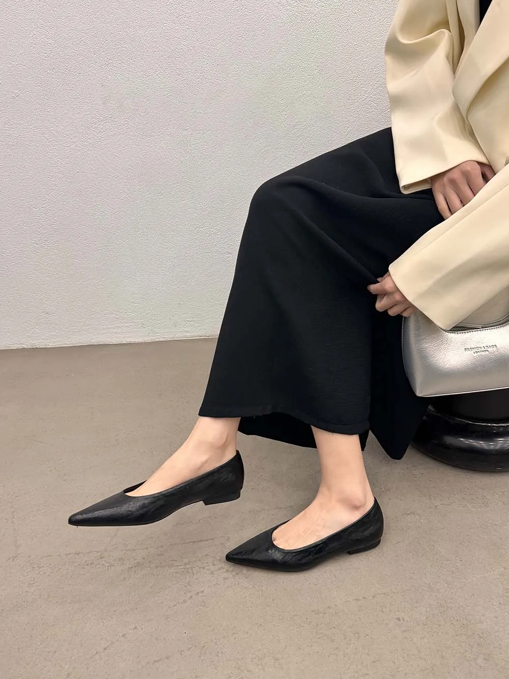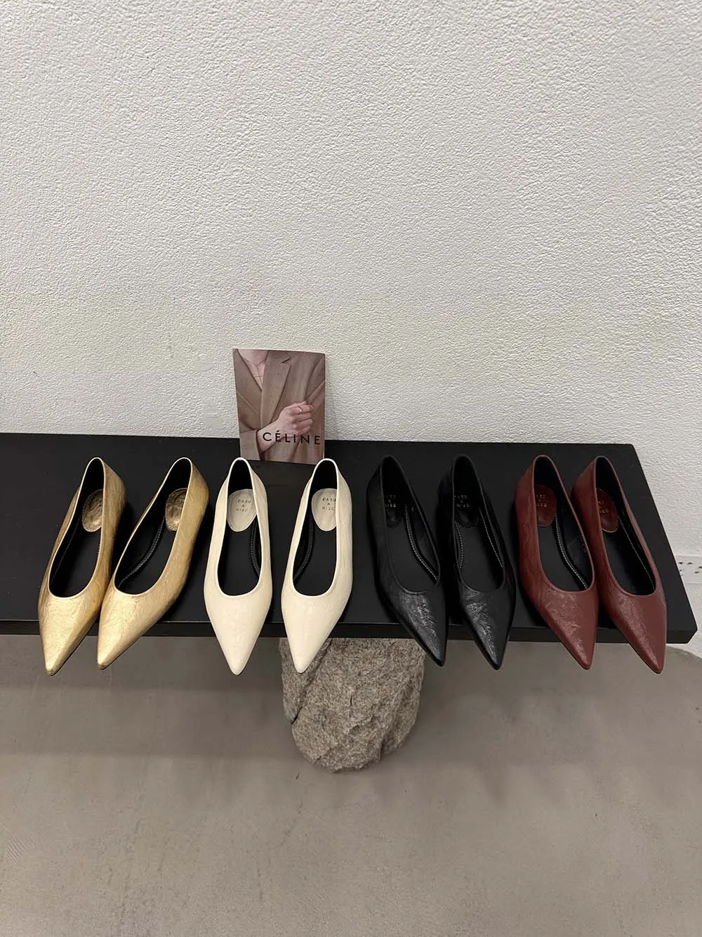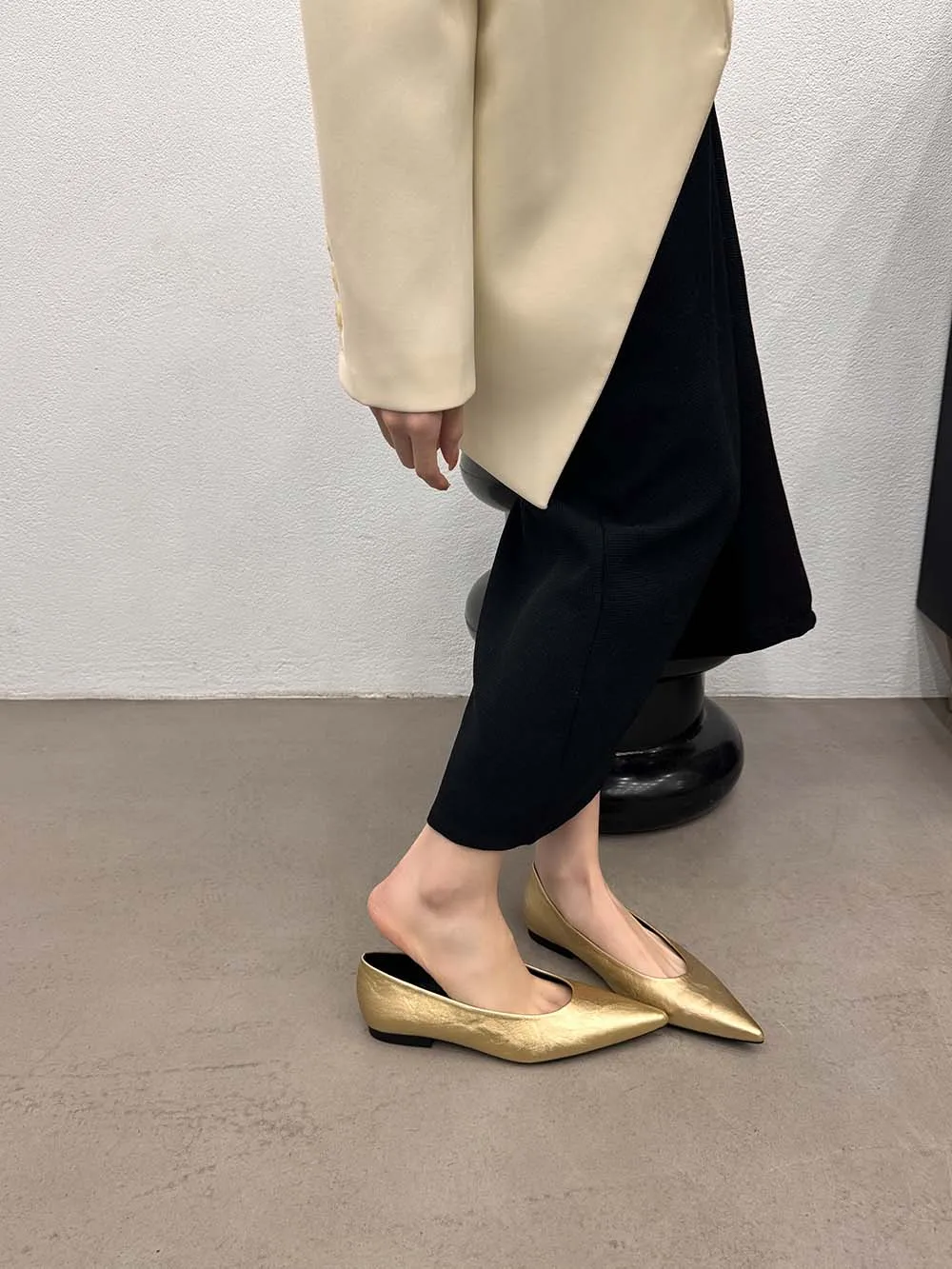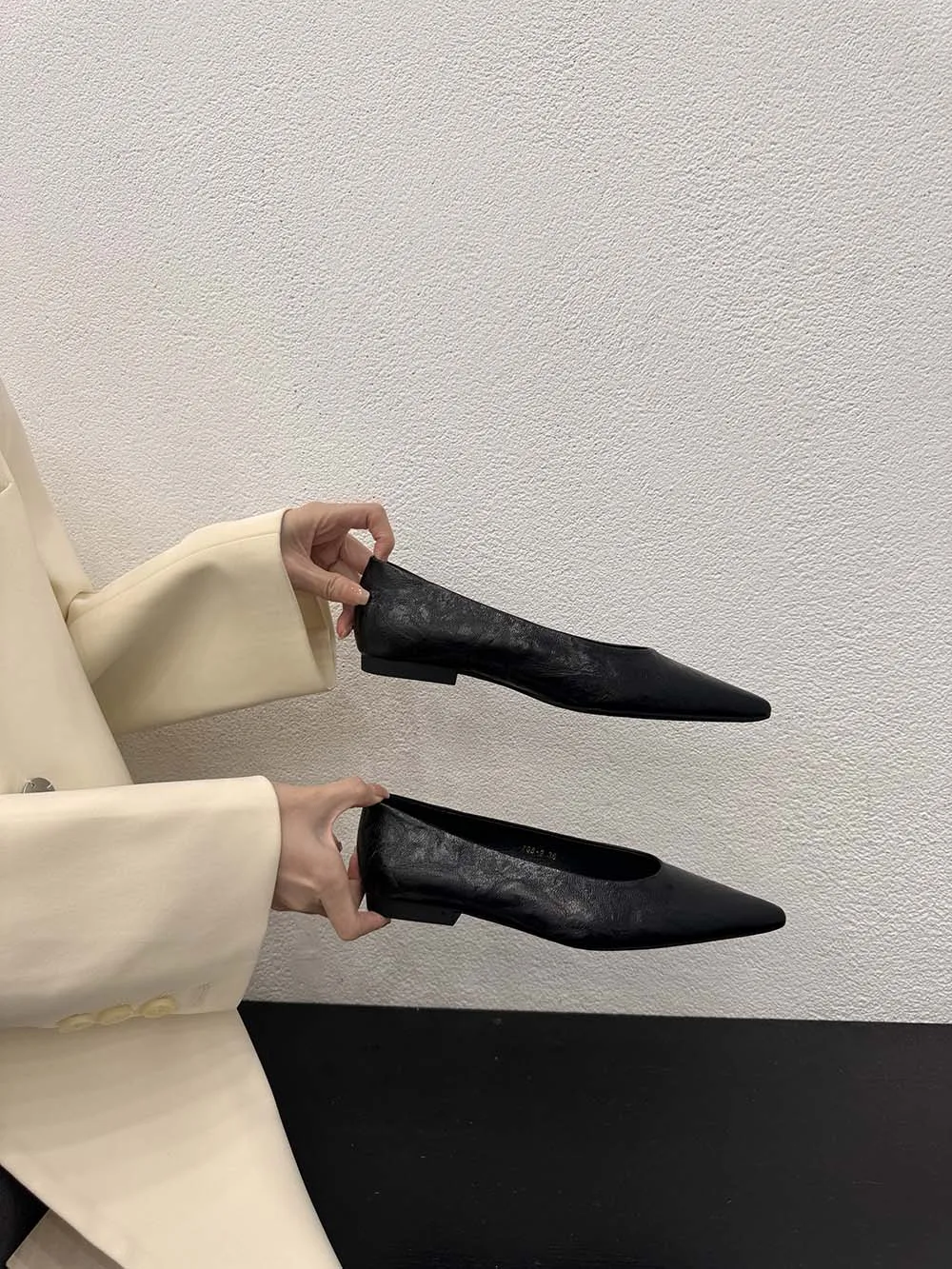 LBSFY - Pointed Toe Women Loafers 2024 New Arrivals Autumn Spring Dress Shoes Casual Fashion Laies Low Heeled Solid Color Black Gold 39