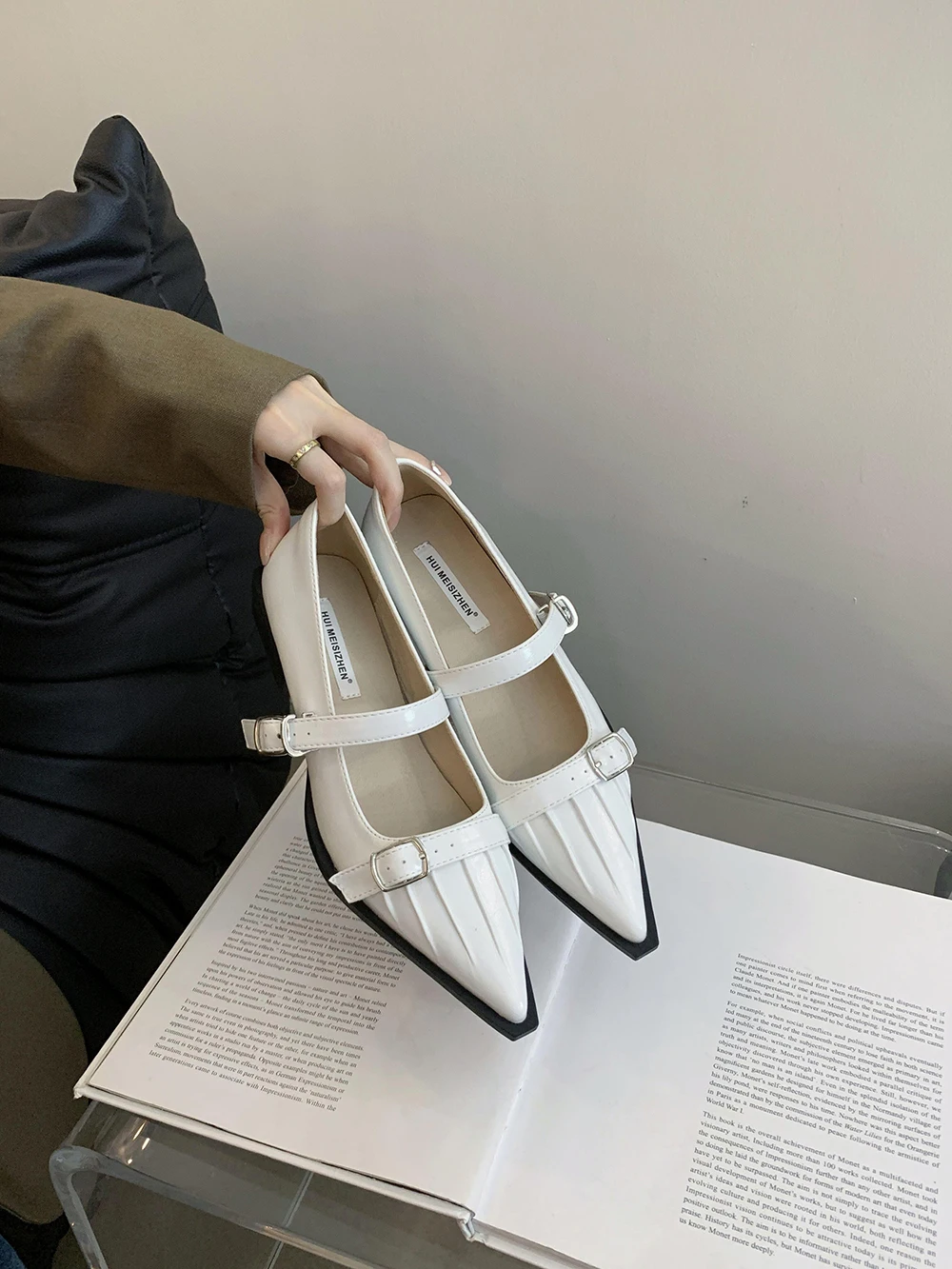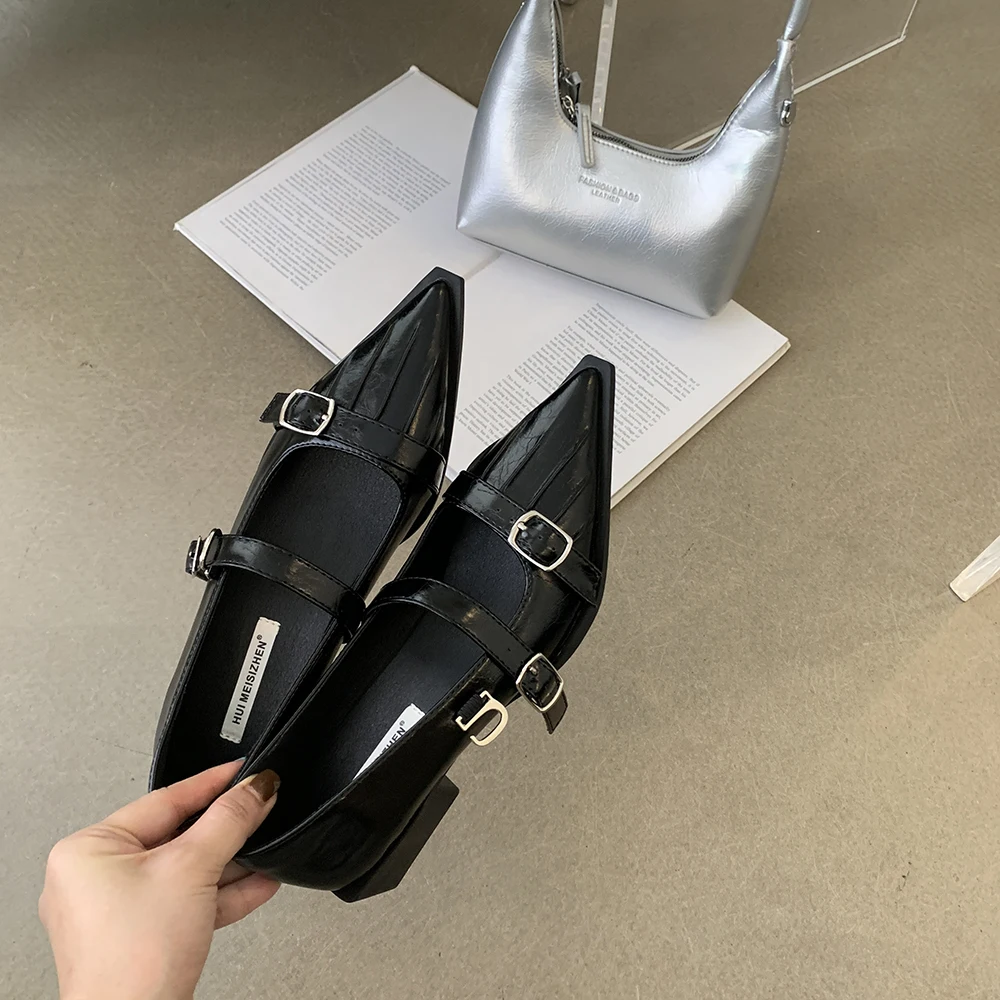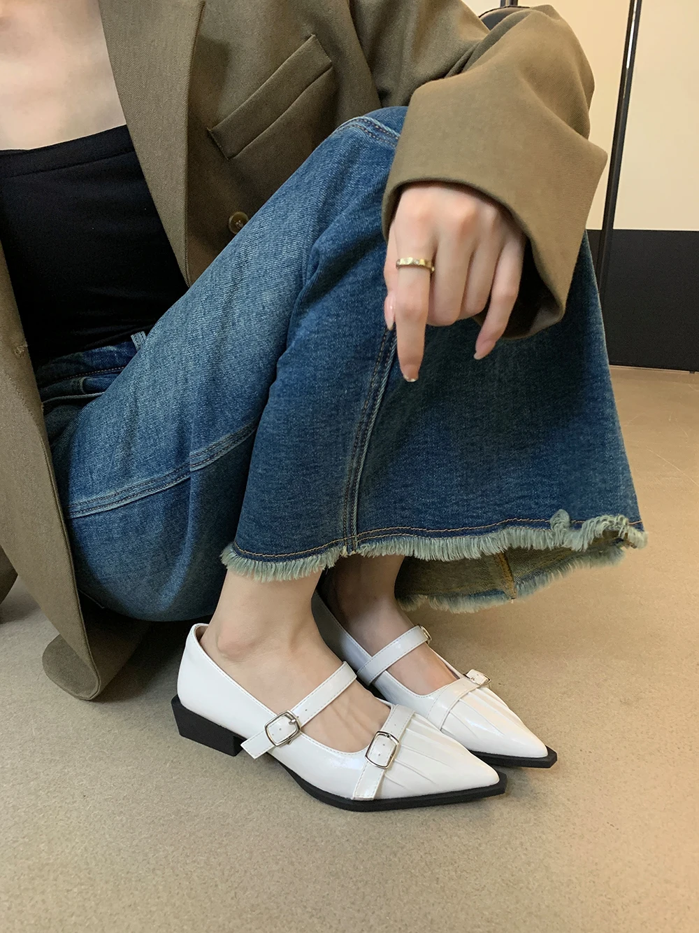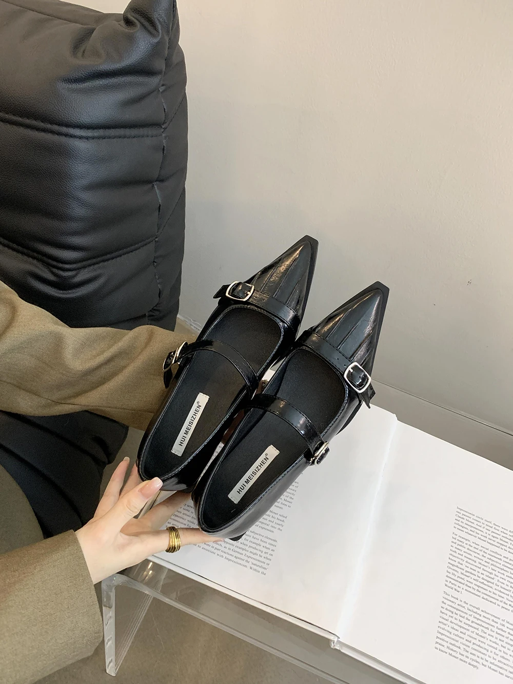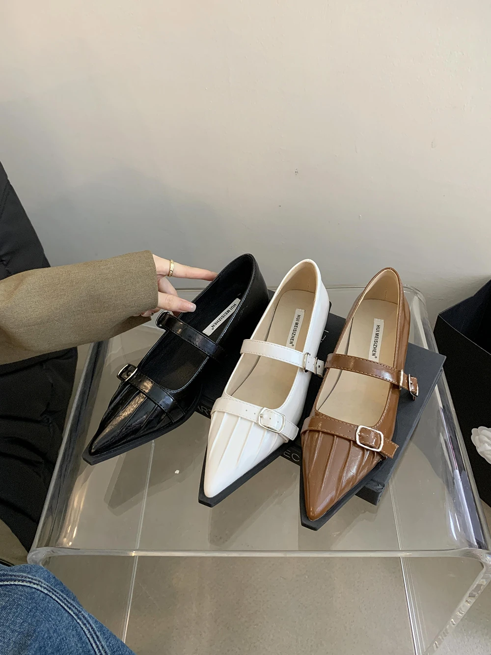 LBSFY - Pointed Toe Women Loafers 2024 New Arrivals Black Brown White Fashion Dress Shoes Belt Buckle Black White Brown Party Low Heeled