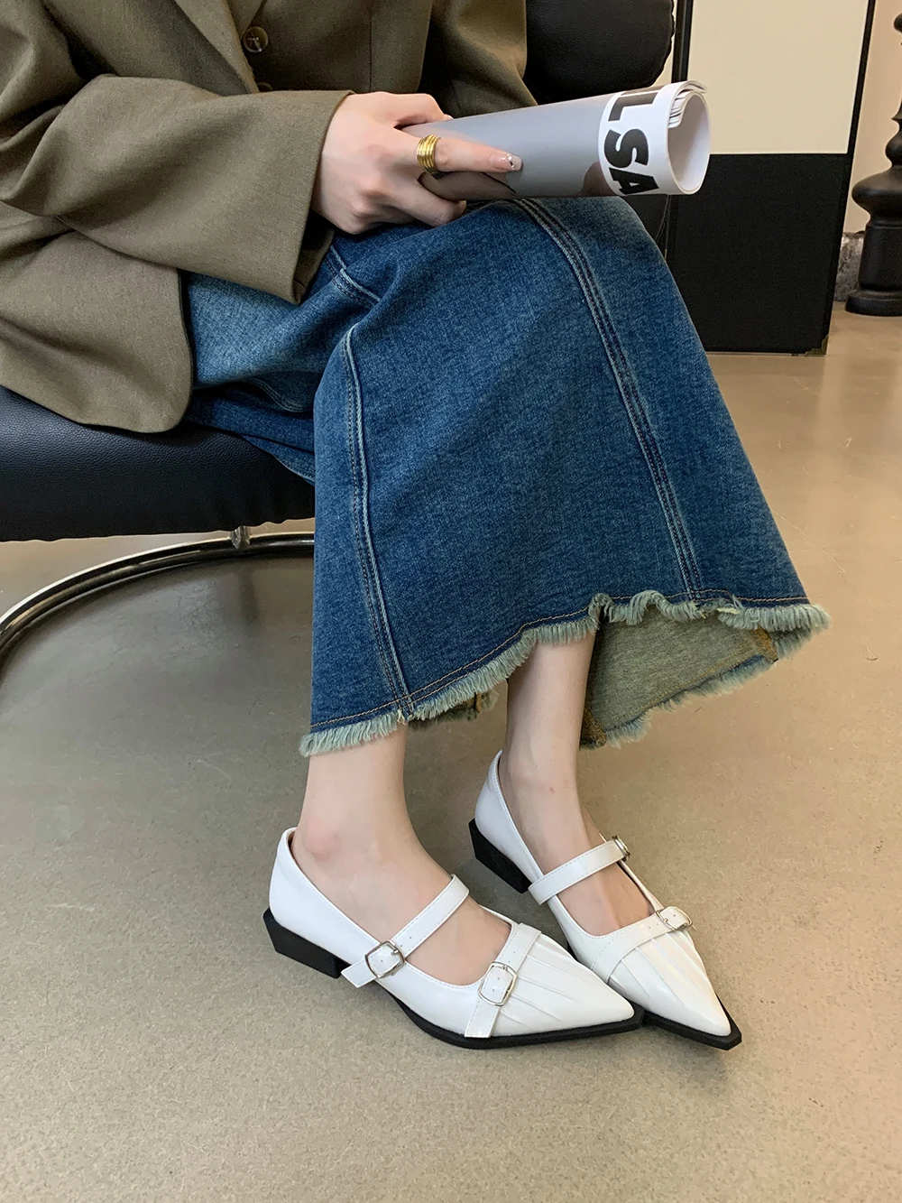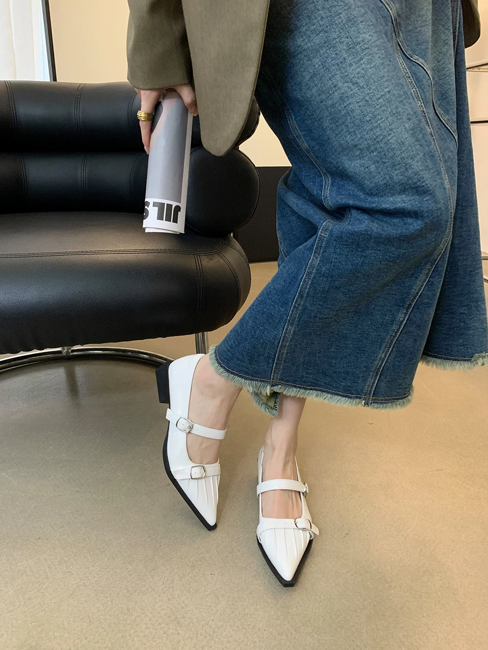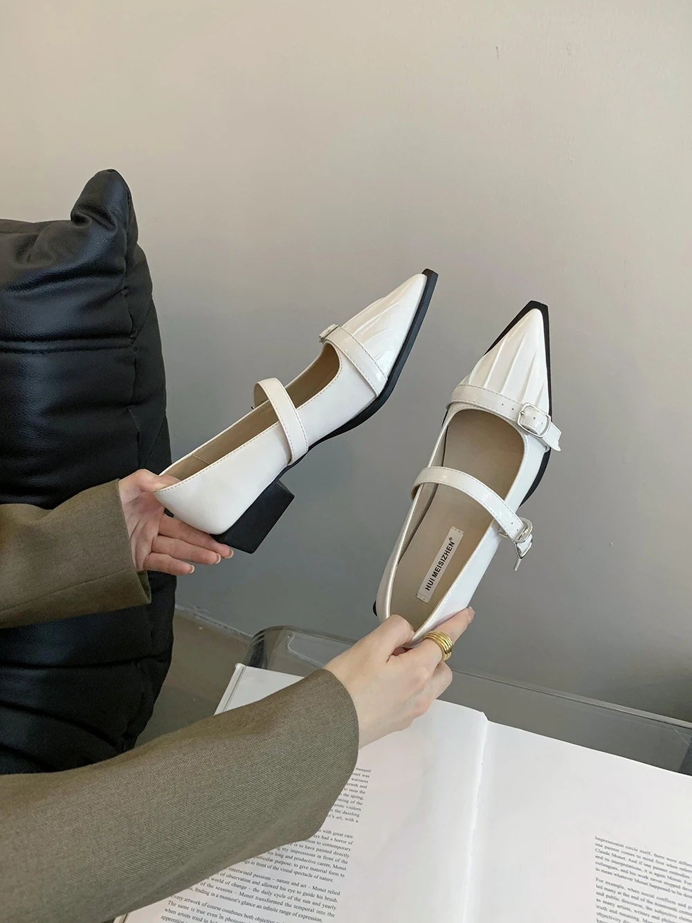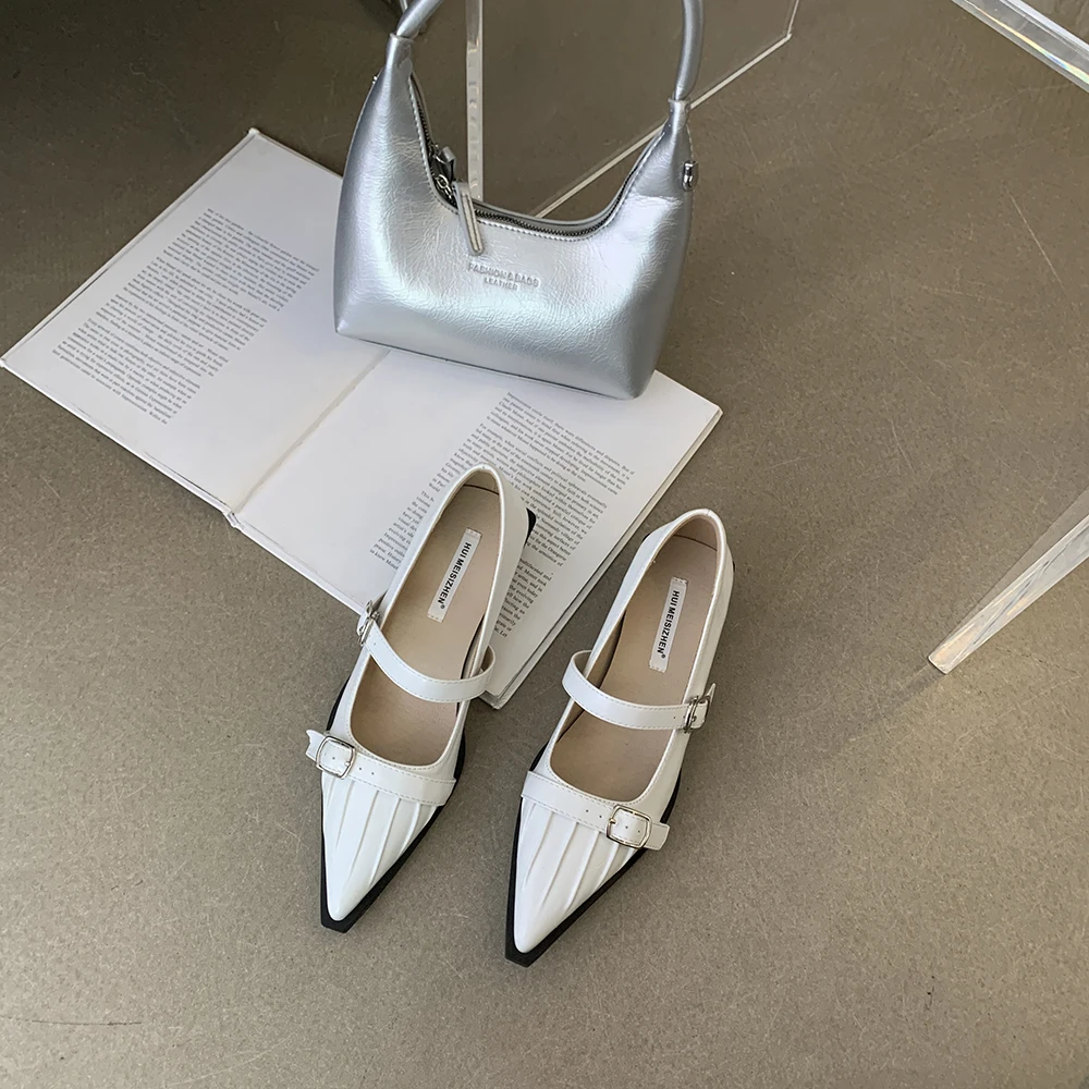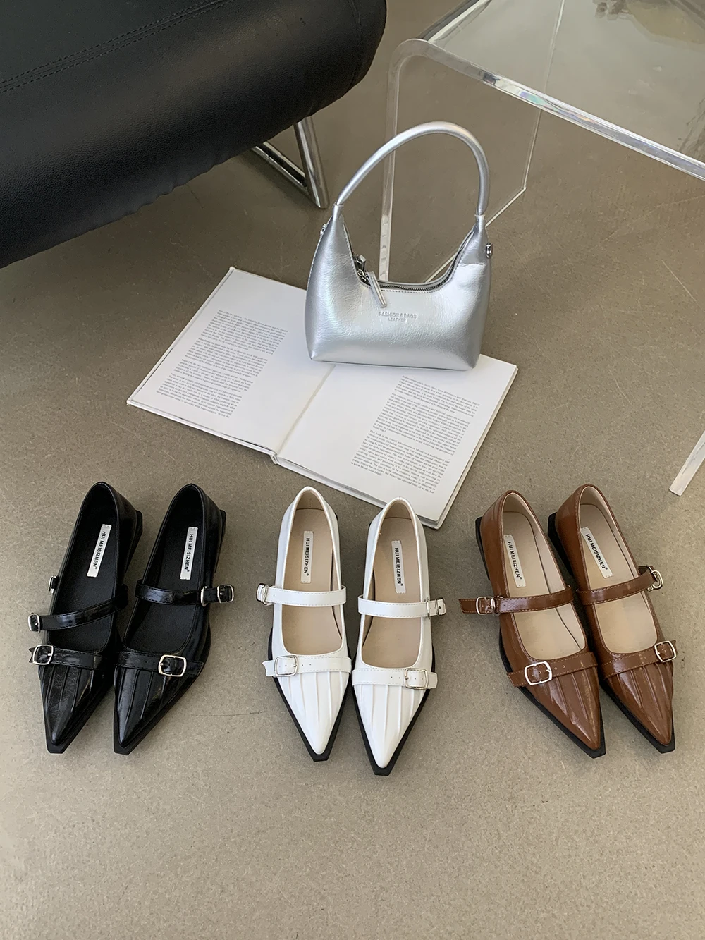 LBSFY - Pointed Toe Women Loafers 2024 New Arrivals Black Brown White Fashion Dress Shoes Belt Buckle Black White Brown Party Low Heeled