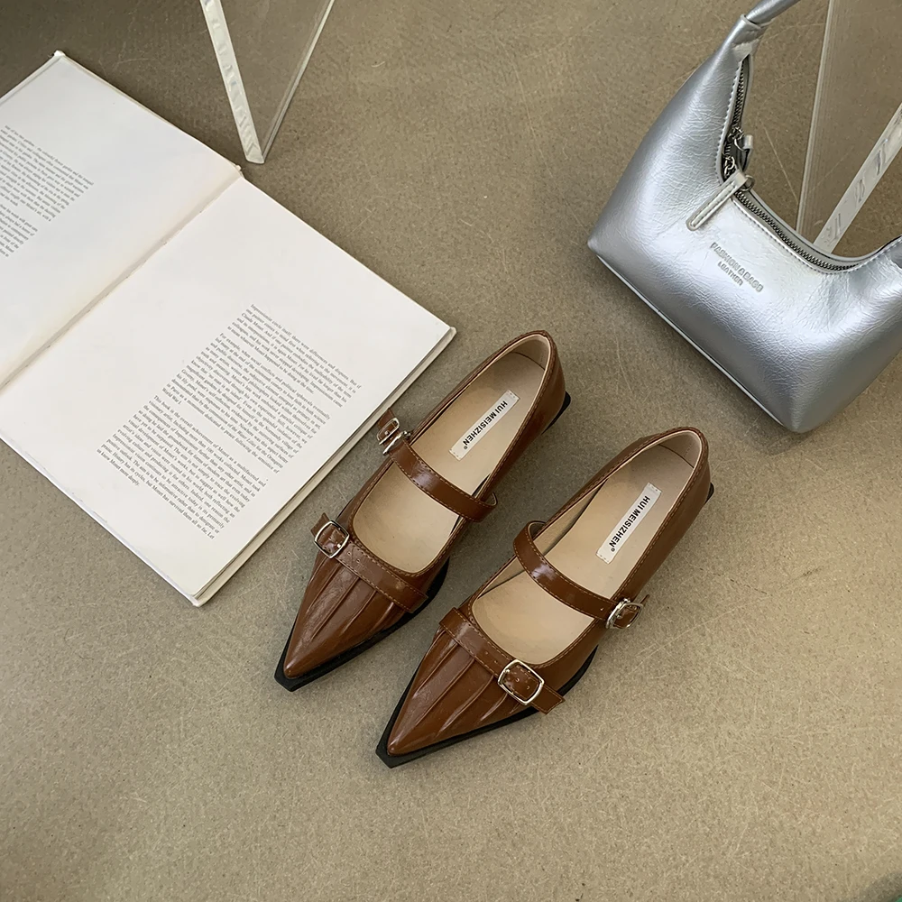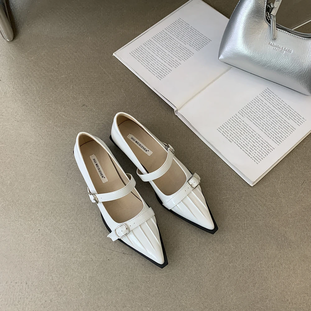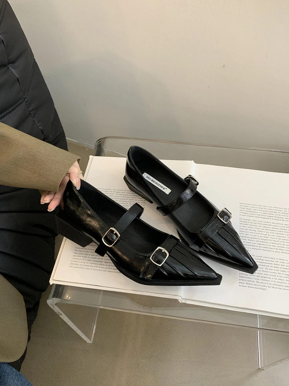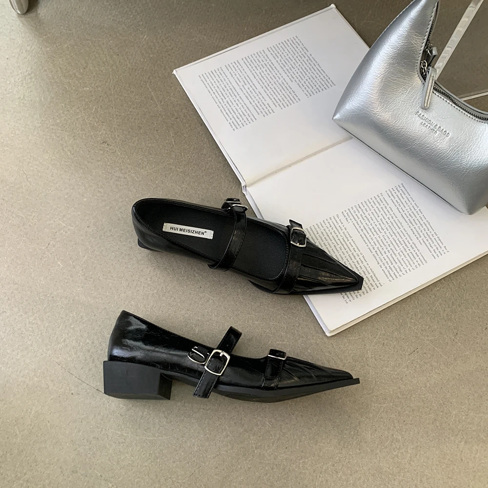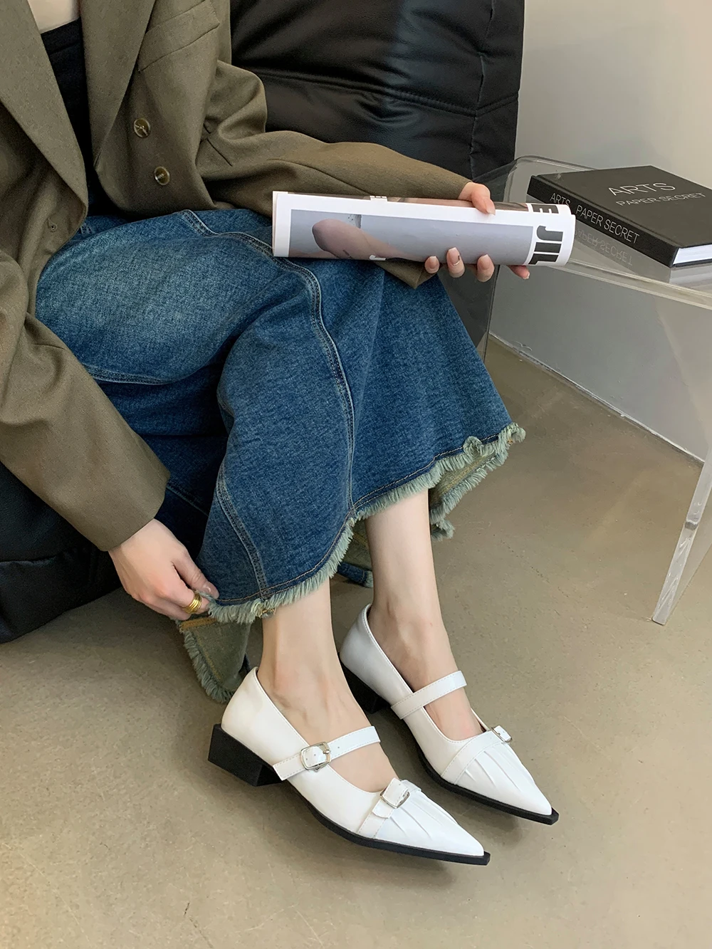 LBSFY - Pointed Toe Women Loafers 2024 New Arrivals Black Brown White Fashion Dress Shoes Belt Buckle Black White Brown Party Low Heeled