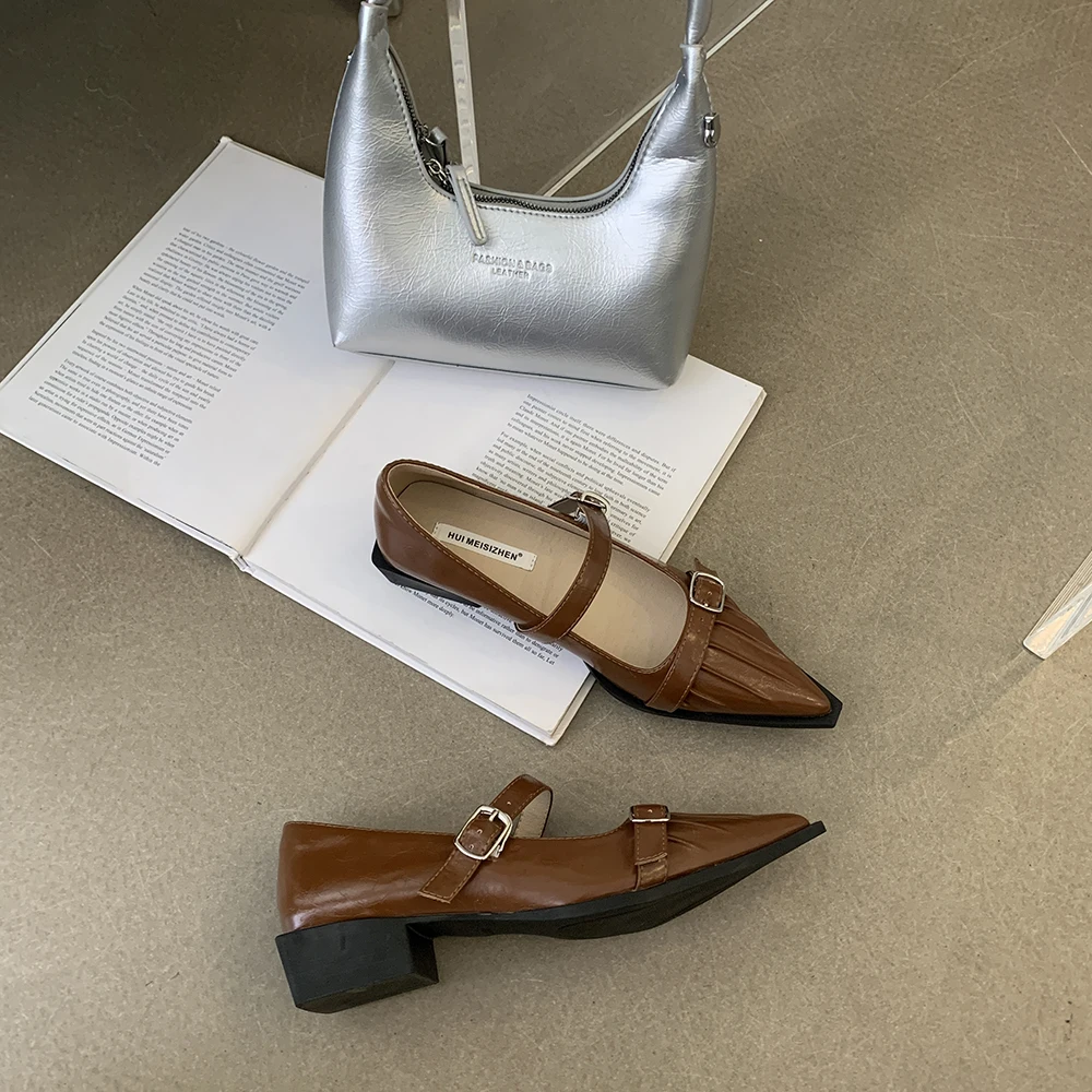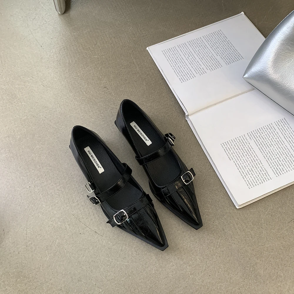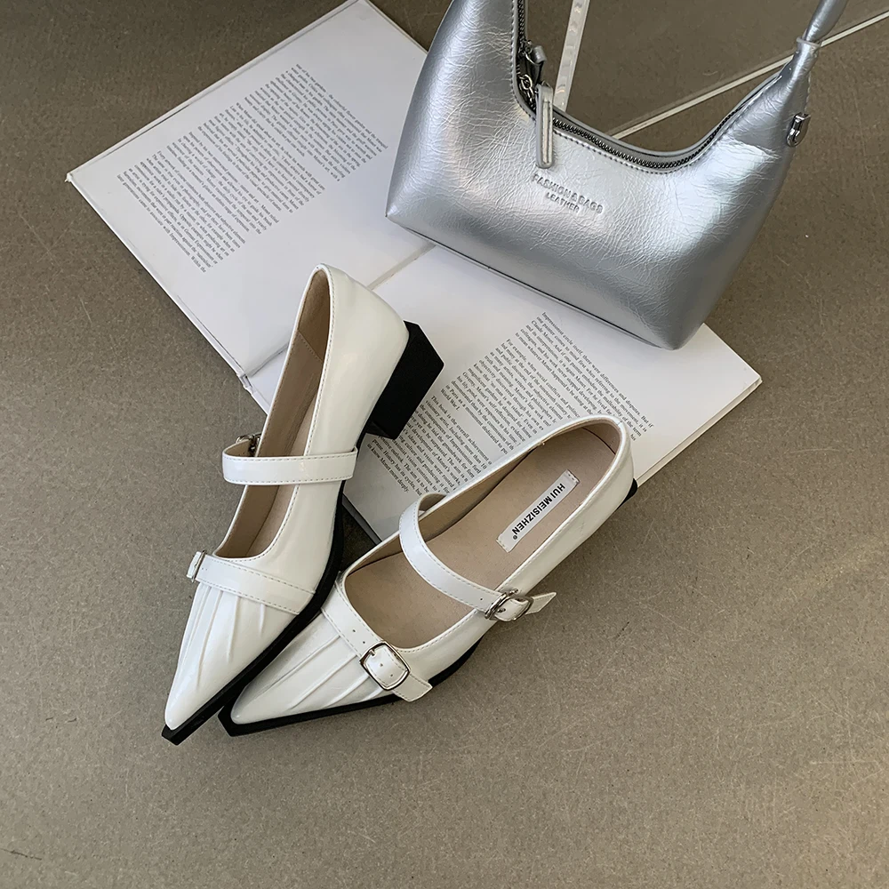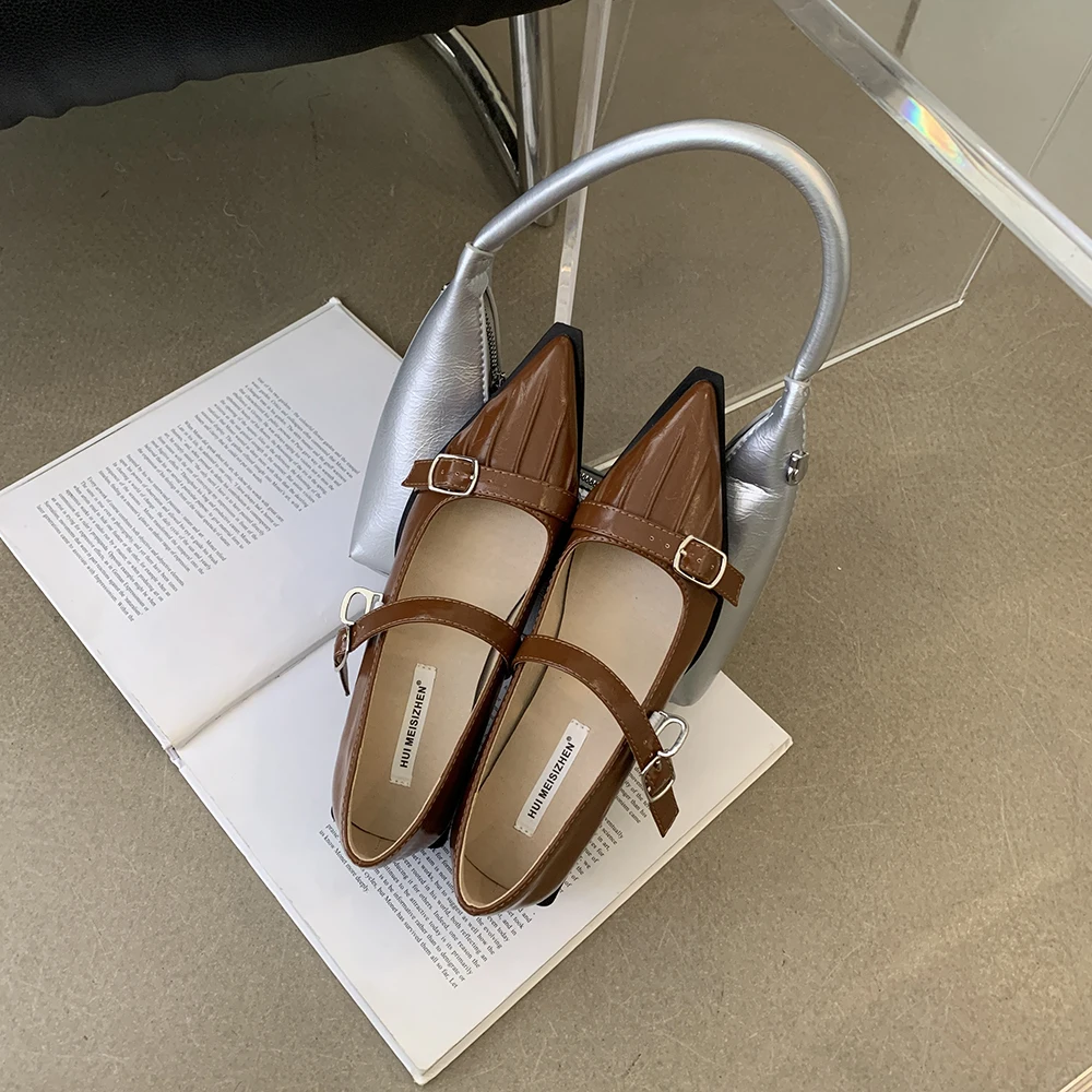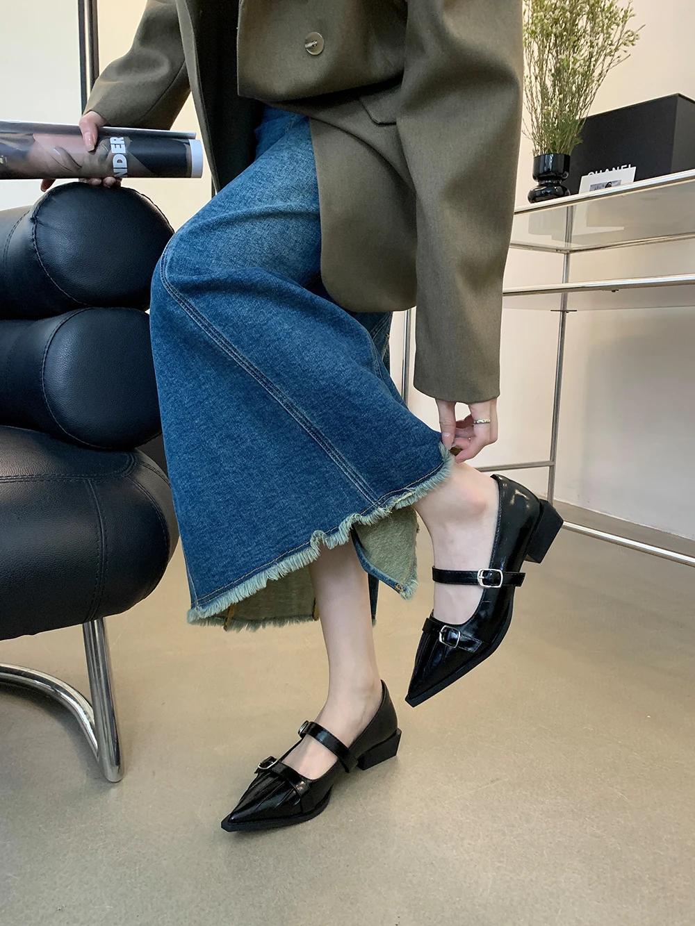 LBSFY - Pointed Toe Women Loafers 2024 New Arrivals Black Brown White Fashion Dress Shoes Belt Buckle Black White Brown Party Low Heeled
