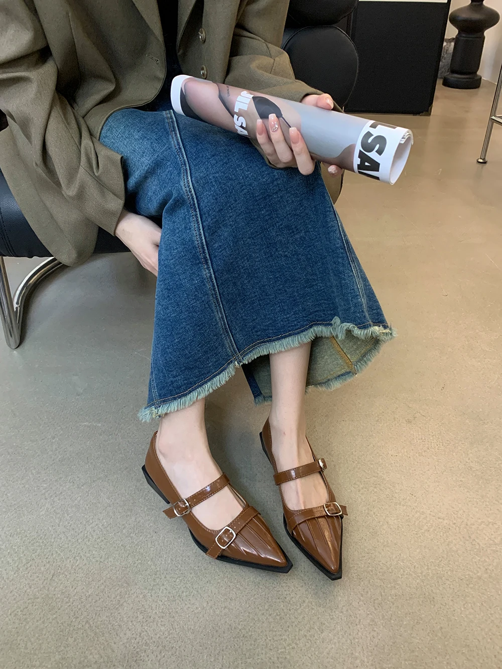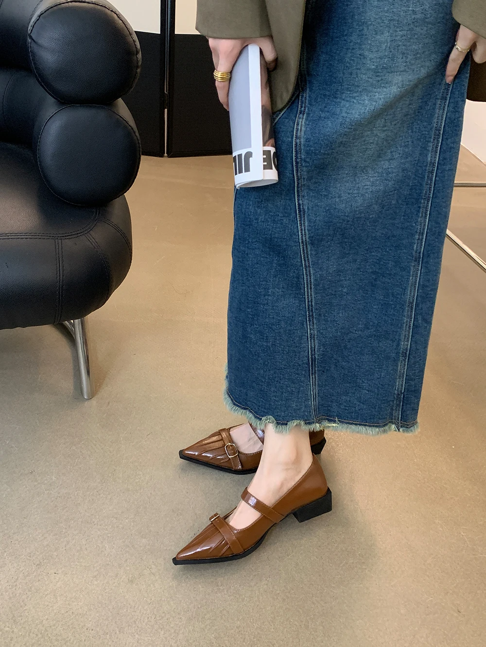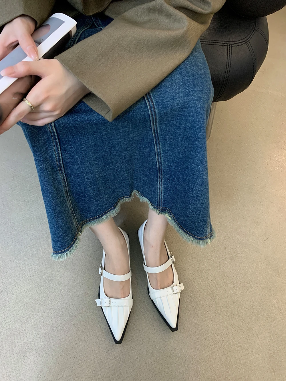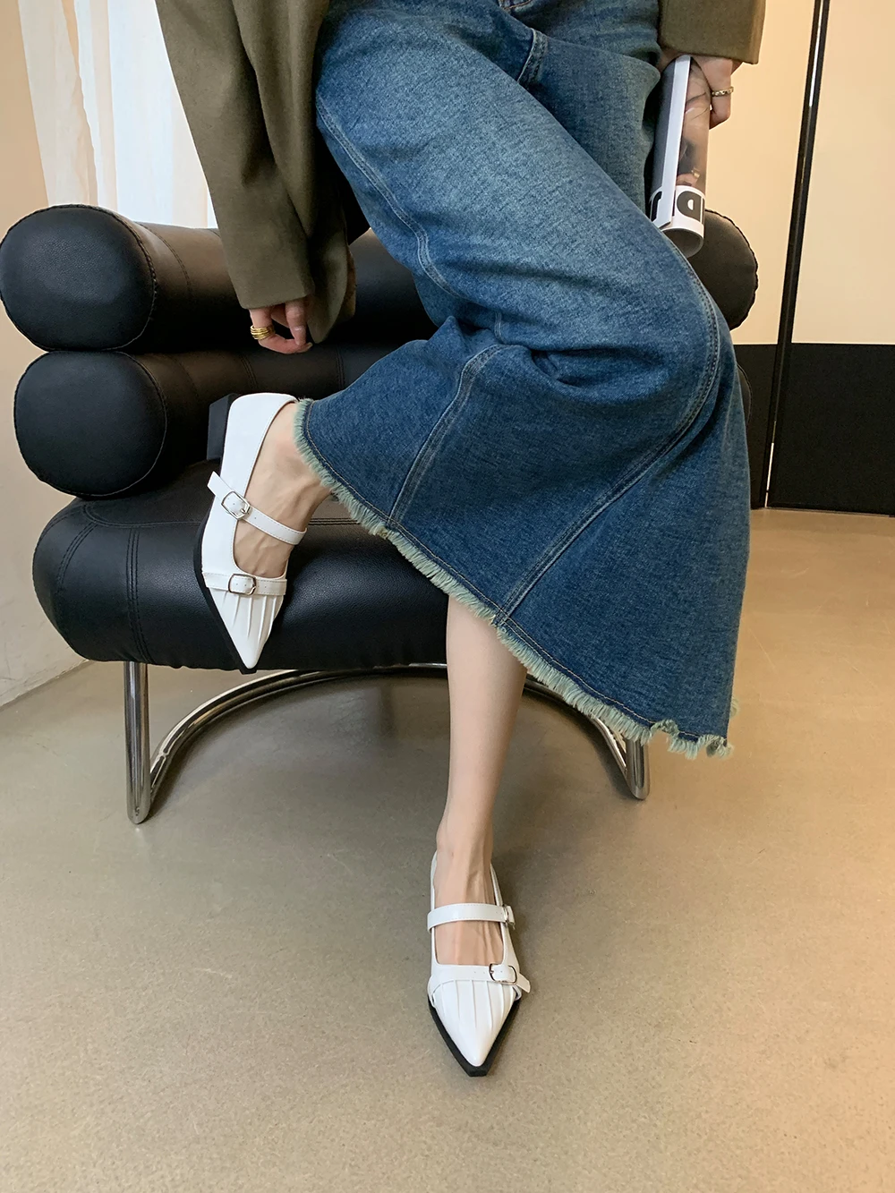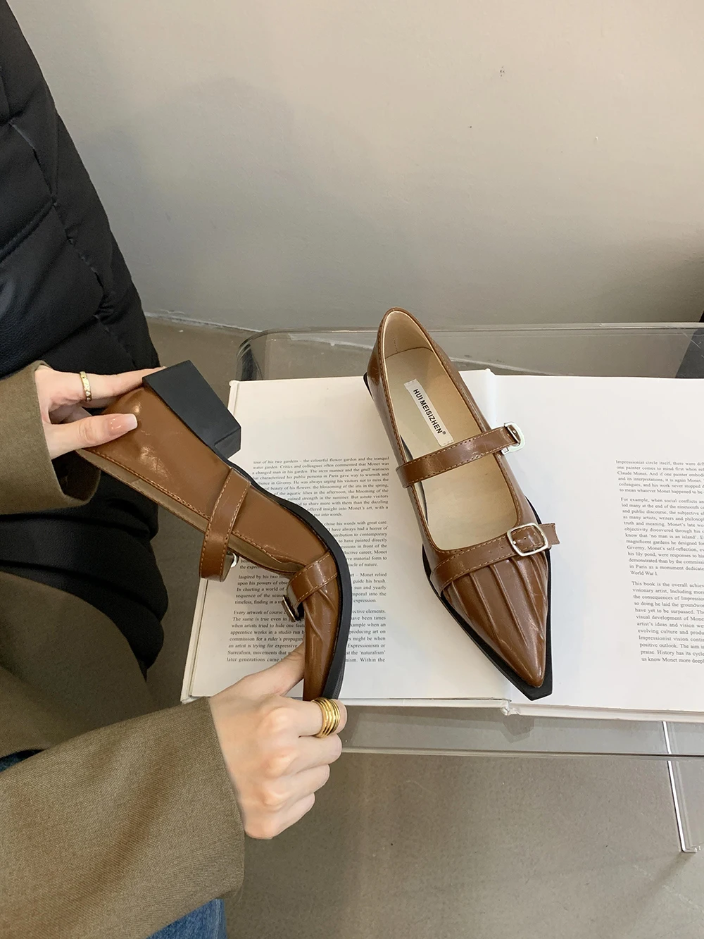 LBSFY - Pointed Toe Women Loafers 2024 New Arrivals Black Brown White Fashion Dress Shoes Belt Buckle Black White Brown Party Low Heeled