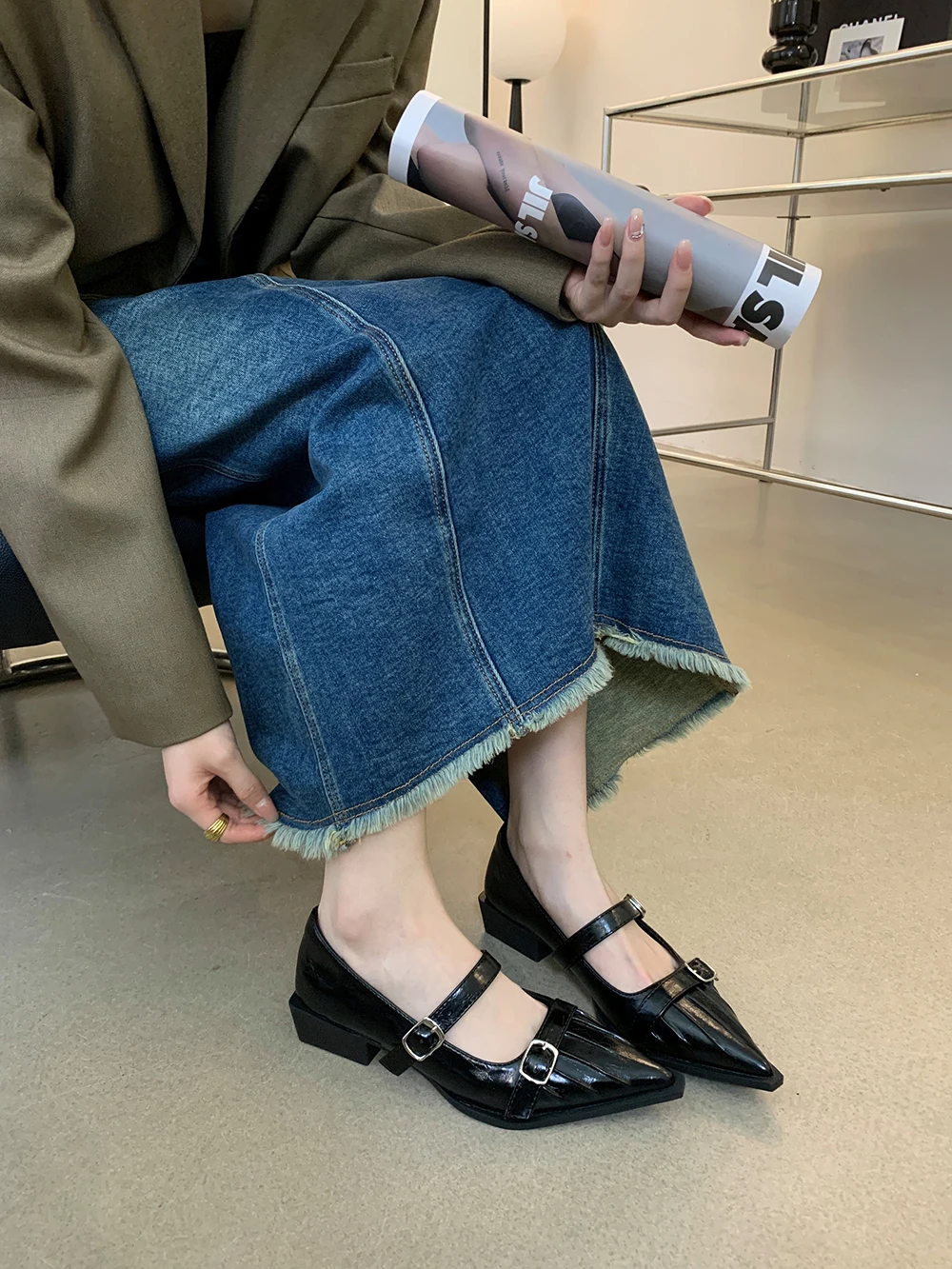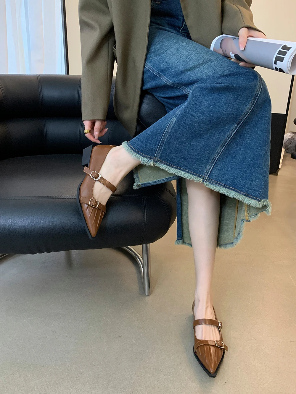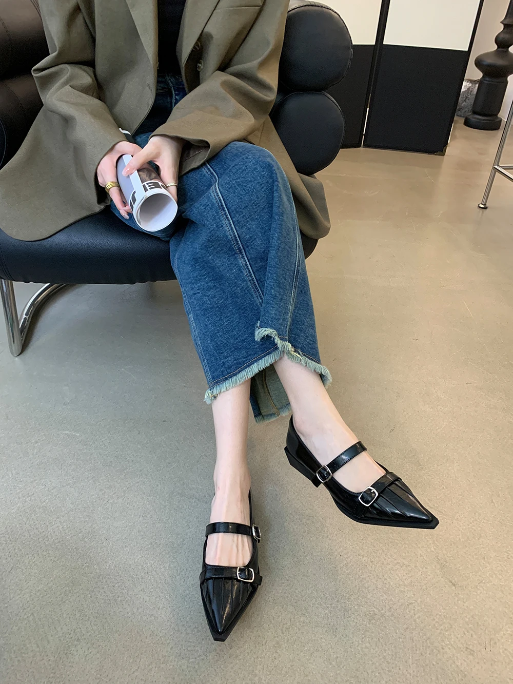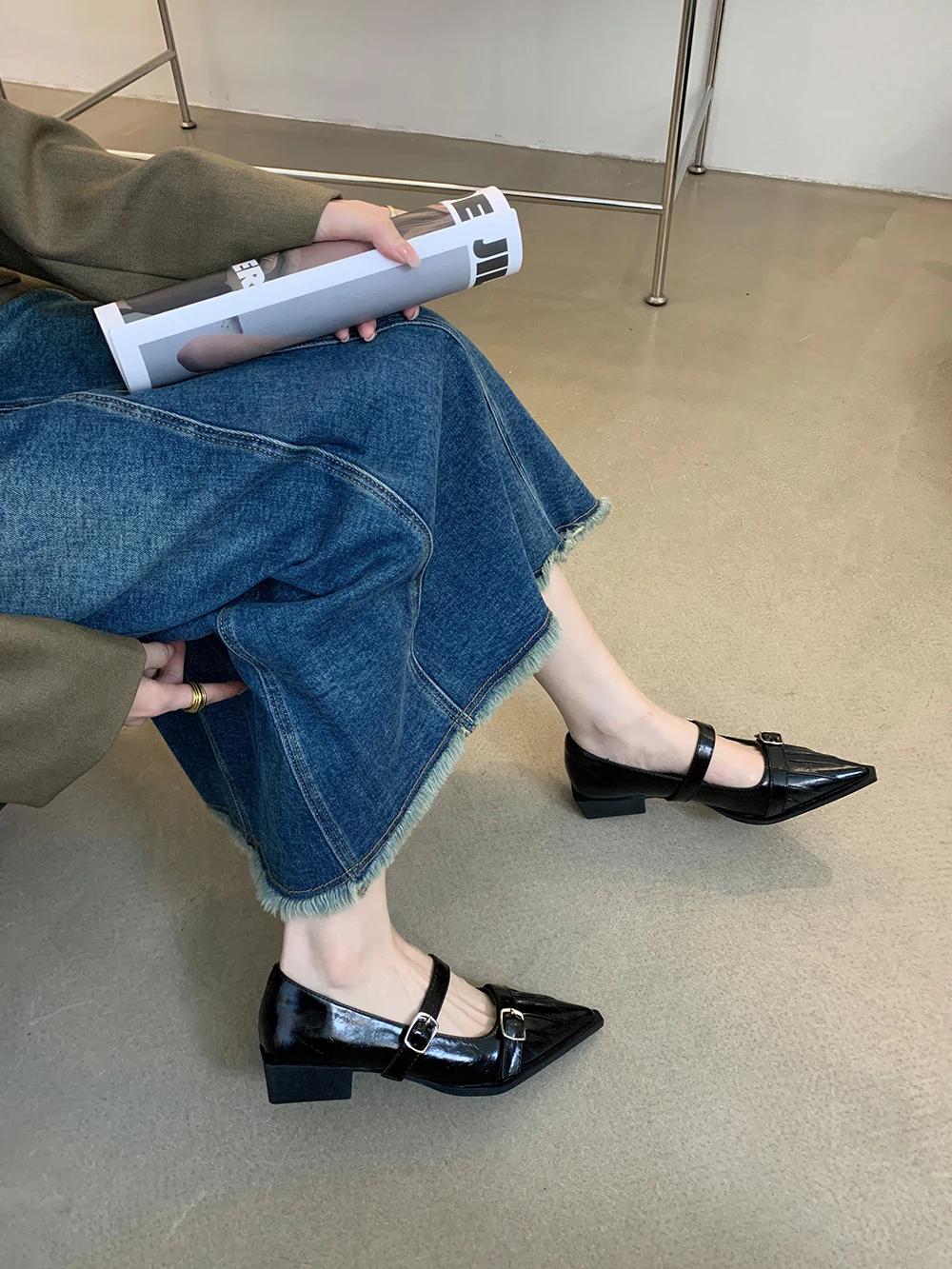LBSFY - Pointed Toe Women Loafers 2024 New Arrivals Black Brown White Fashion Dress Shoes Belt Buckle Black White Brown Party Low Heeled
