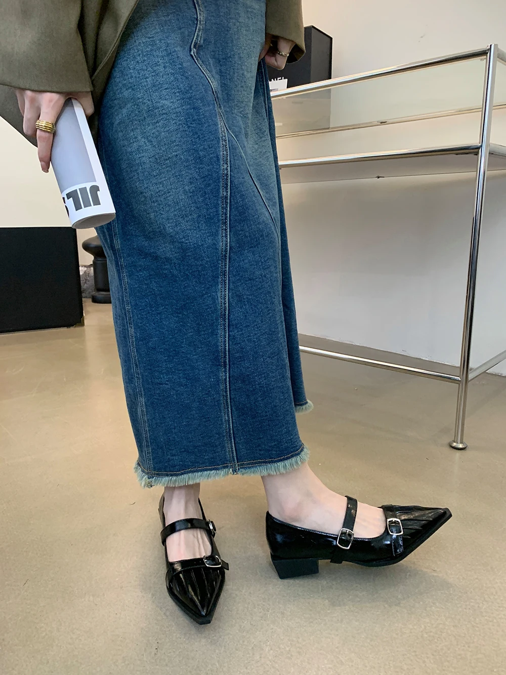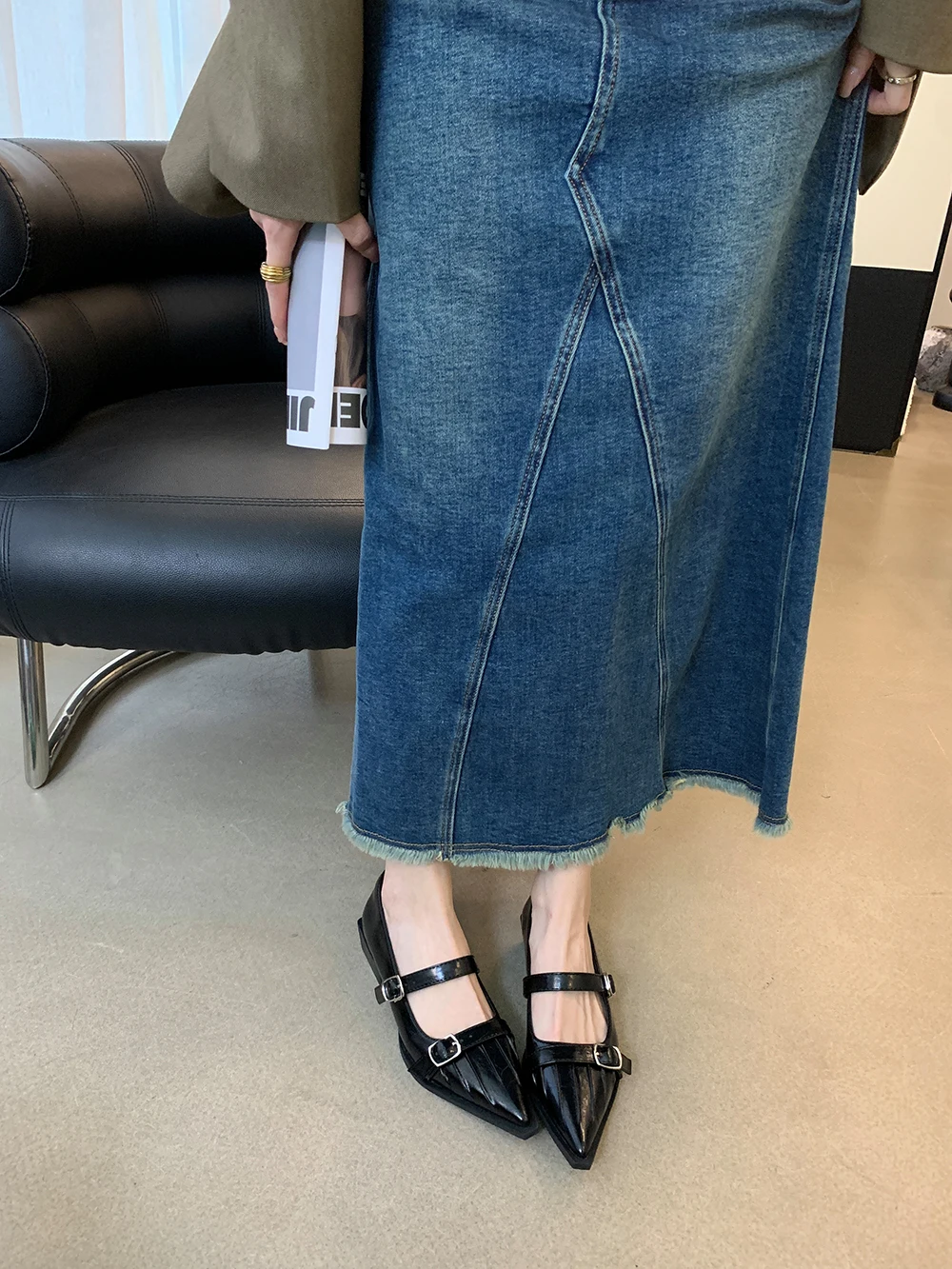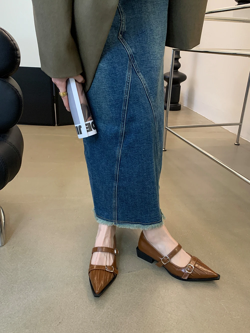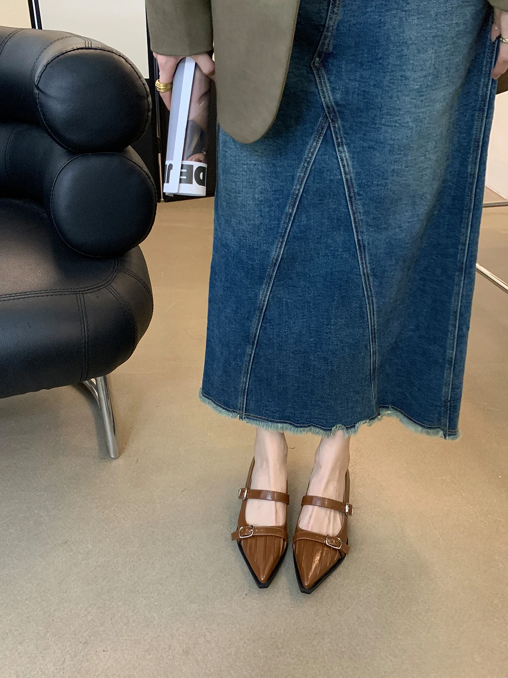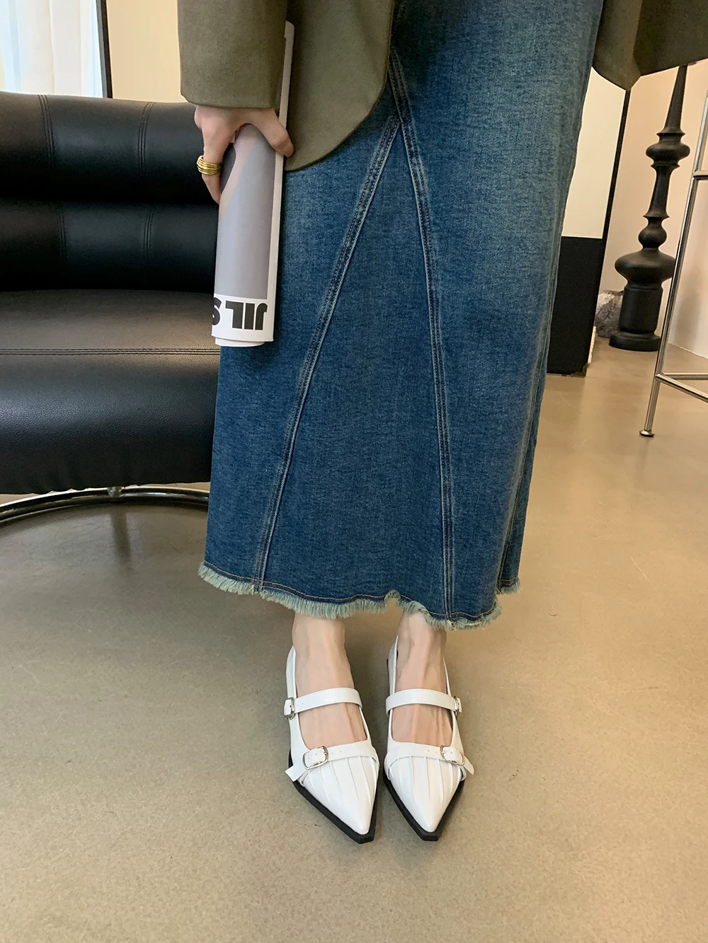 LBSFY - Pointed Toe Women Loafers 2024 New Arrivals Black Brown White Fashion Dress Shoes Belt Buckle Black White Brown Party Low Heeled