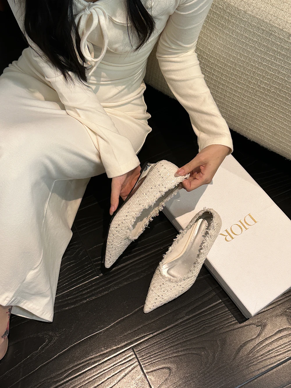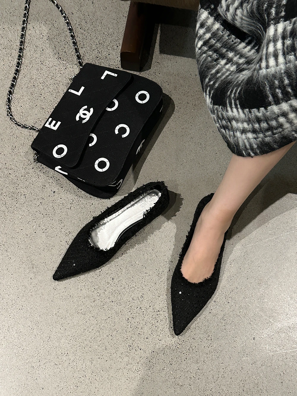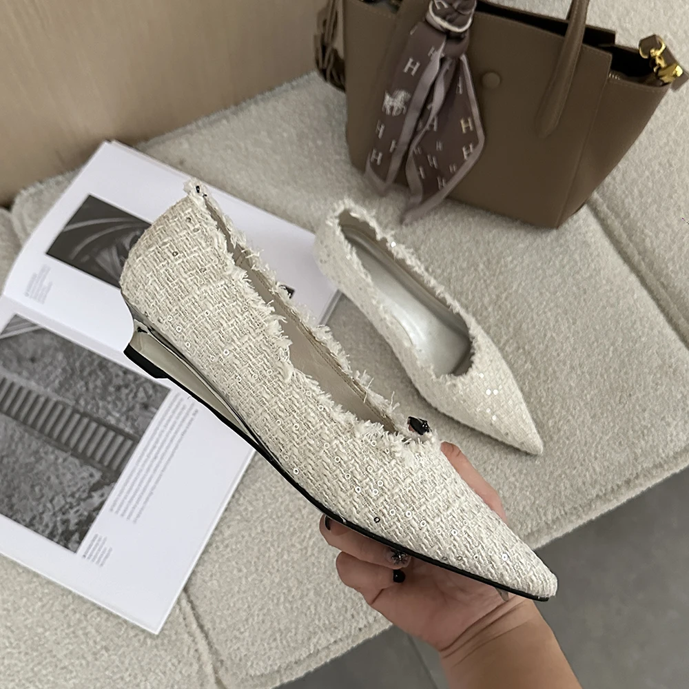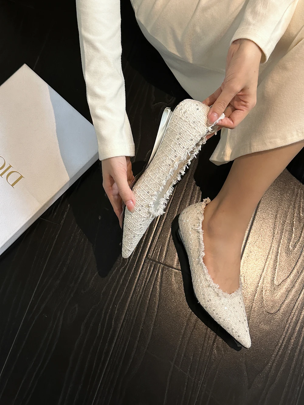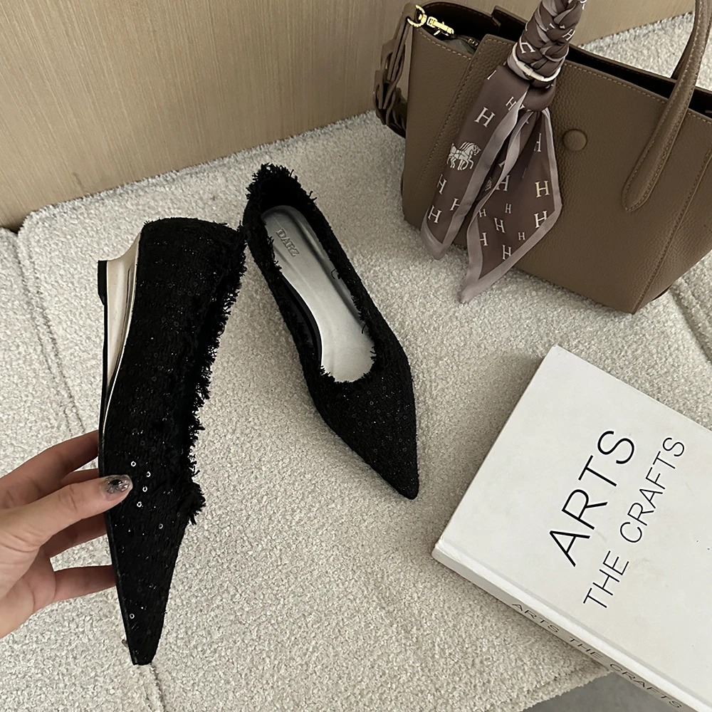 LBSFY - Pointed Toe Women Loafers Casual Mules Shoes Shallow Slip On Sequined Cloth Autumn Spring Party Dress Casual Party Pumps 35-39