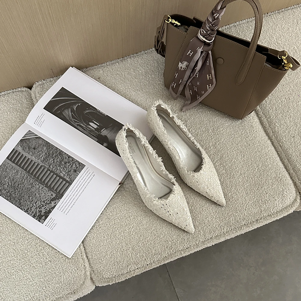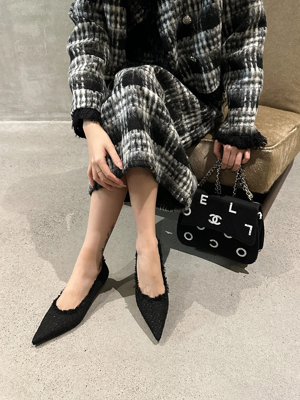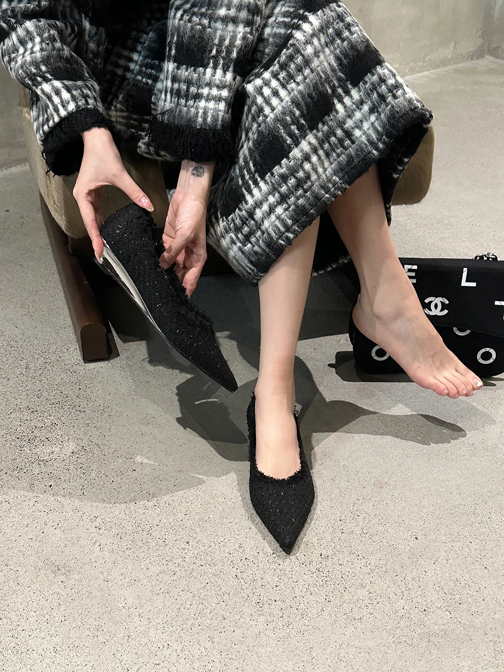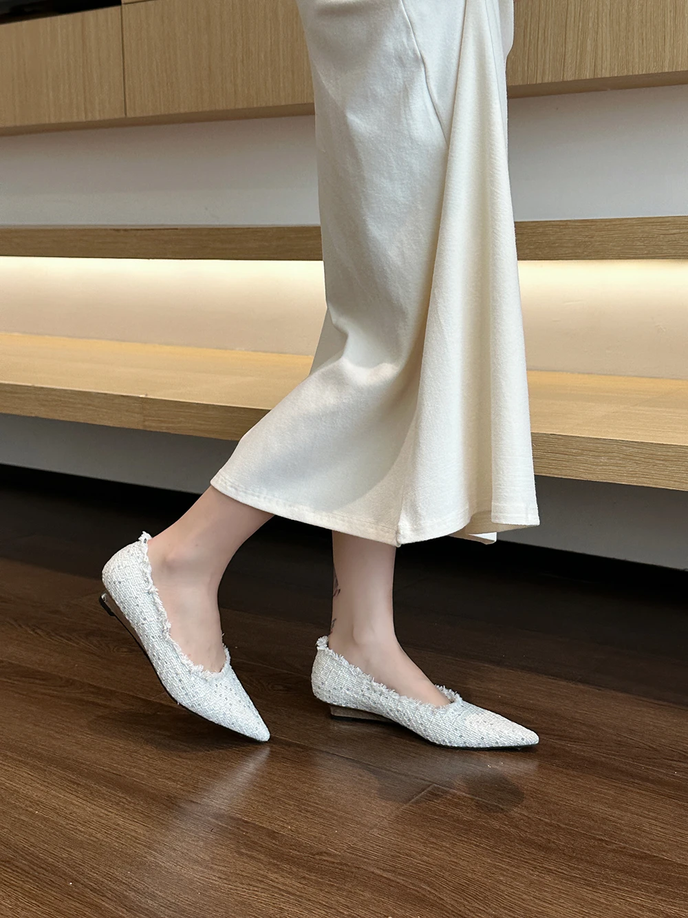 LBSFY - Pointed Toe Women Loafers Casual Mules Shoes Shallow Slip On Sequined Cloth Autumn Spring Party Dress Casual Party Pumps 35-39