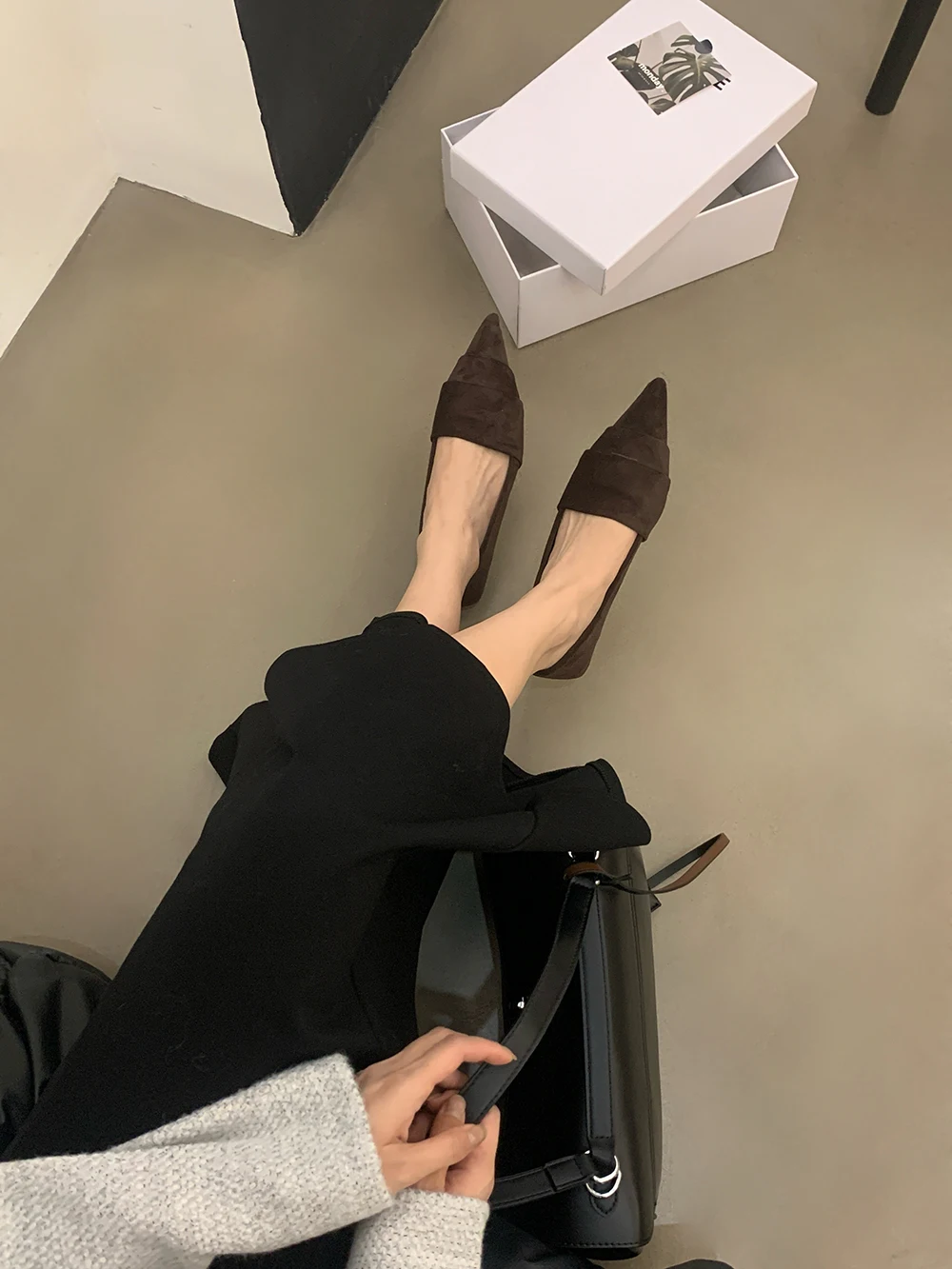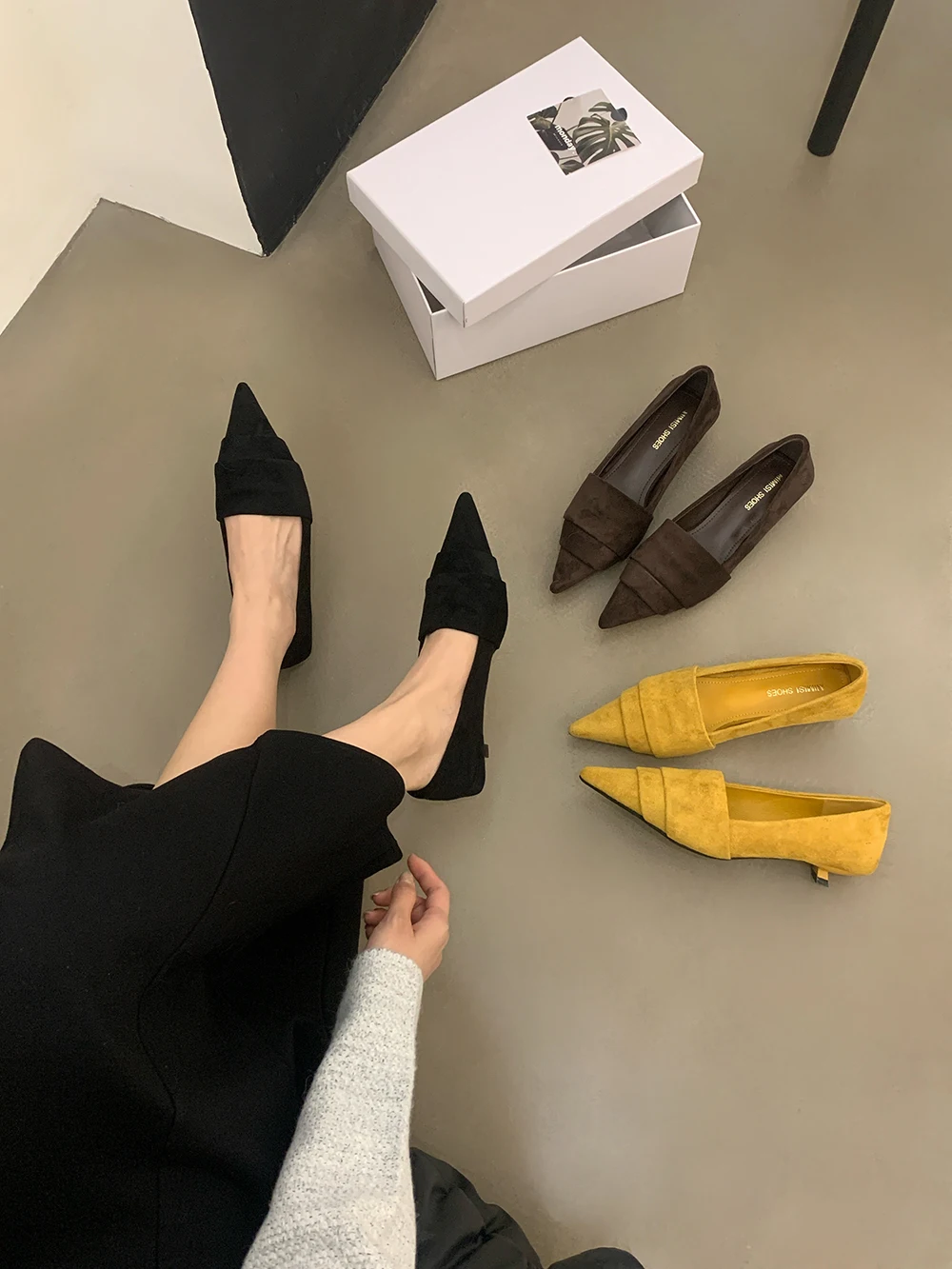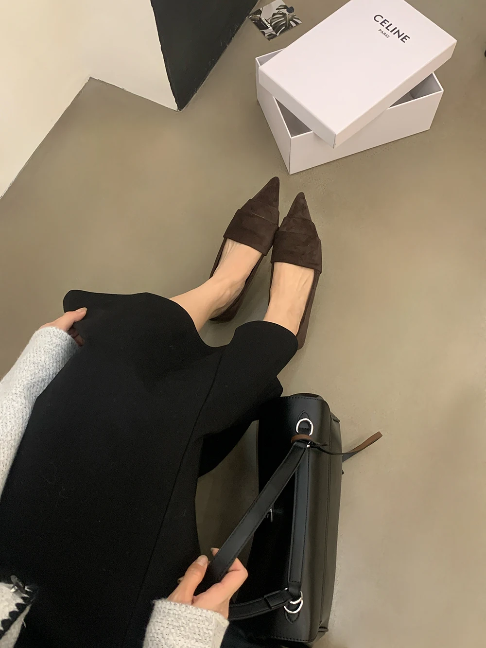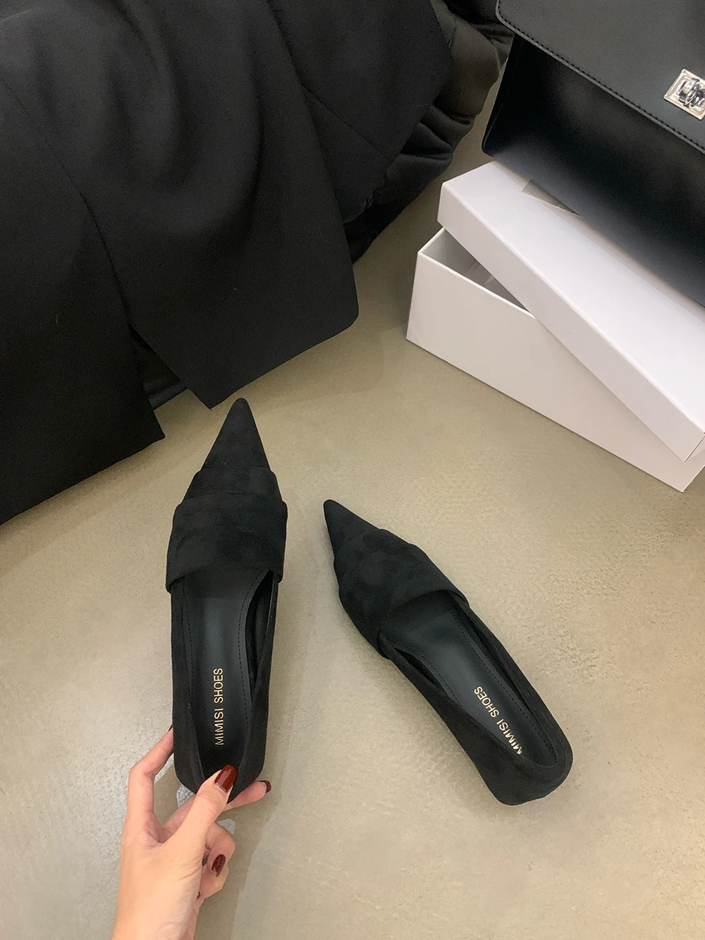 LBSFY - Pointed Toe Women Pumps 2025 New Arrivals Flock Dress Shoes Thin Mid Heels Shallow Slip On Party Pumps Casual Office Pumps 35-39