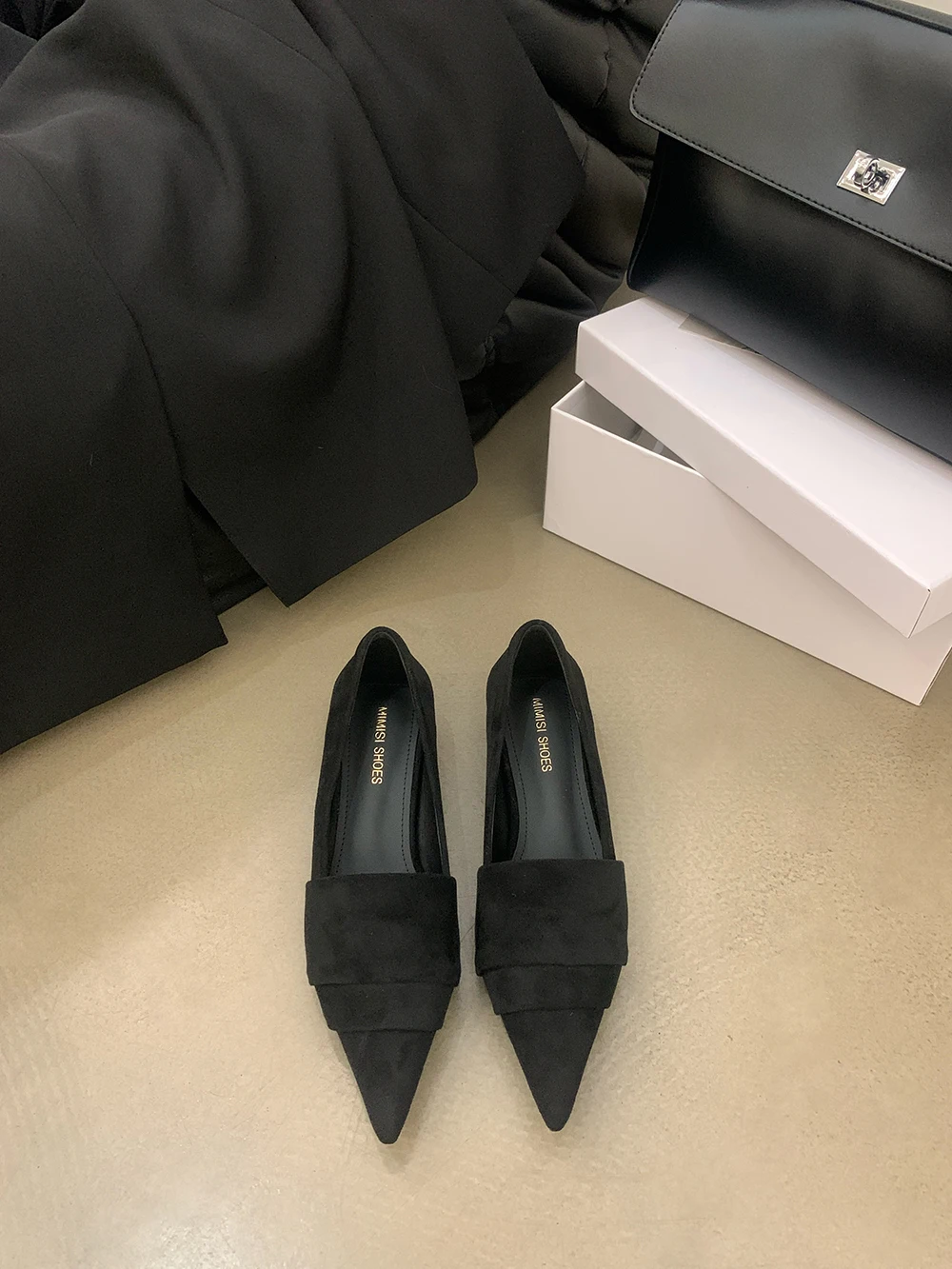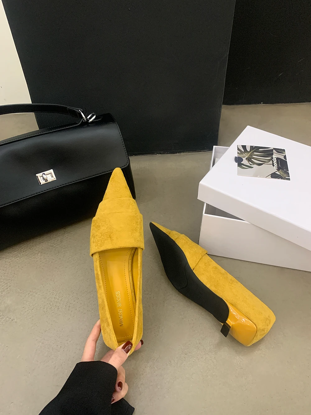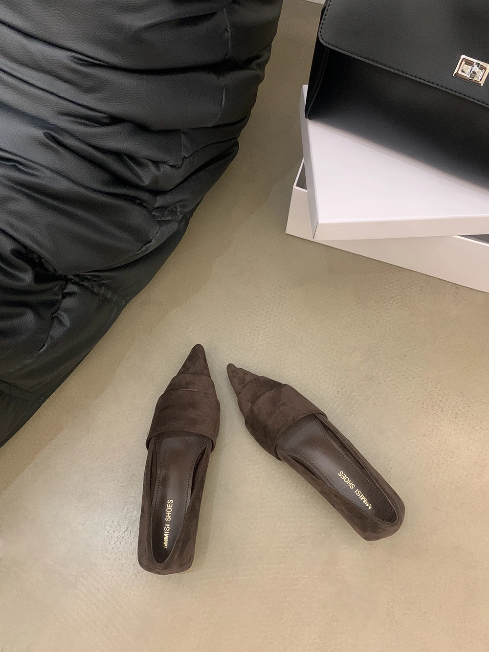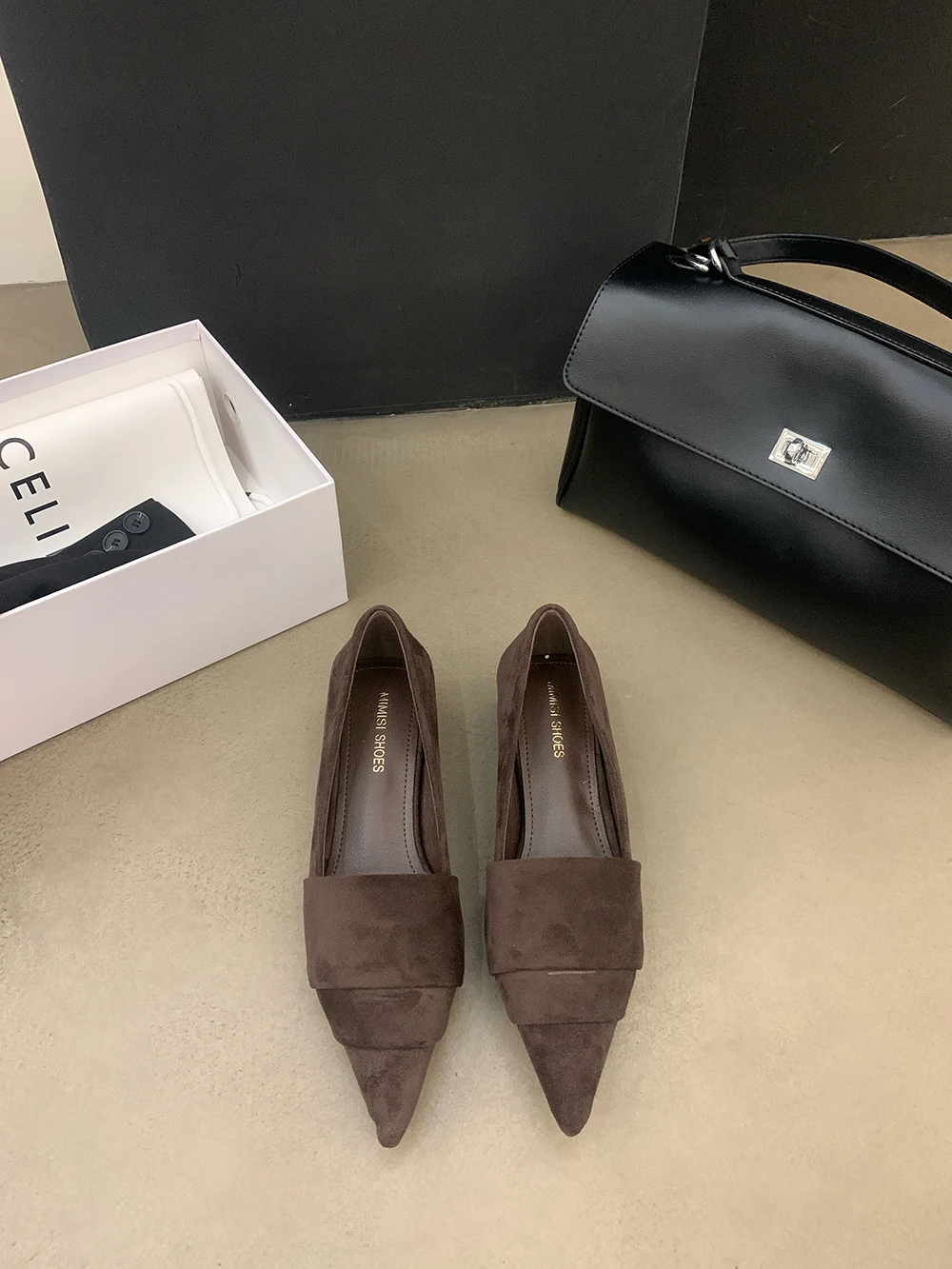LBSFY - Pointed Toe Women Pumps 2025 New Arrivals Flock Dress Shoes Thin Mid Heels Shallow Slip On Party Pumps Casual Office Pumps 35-39