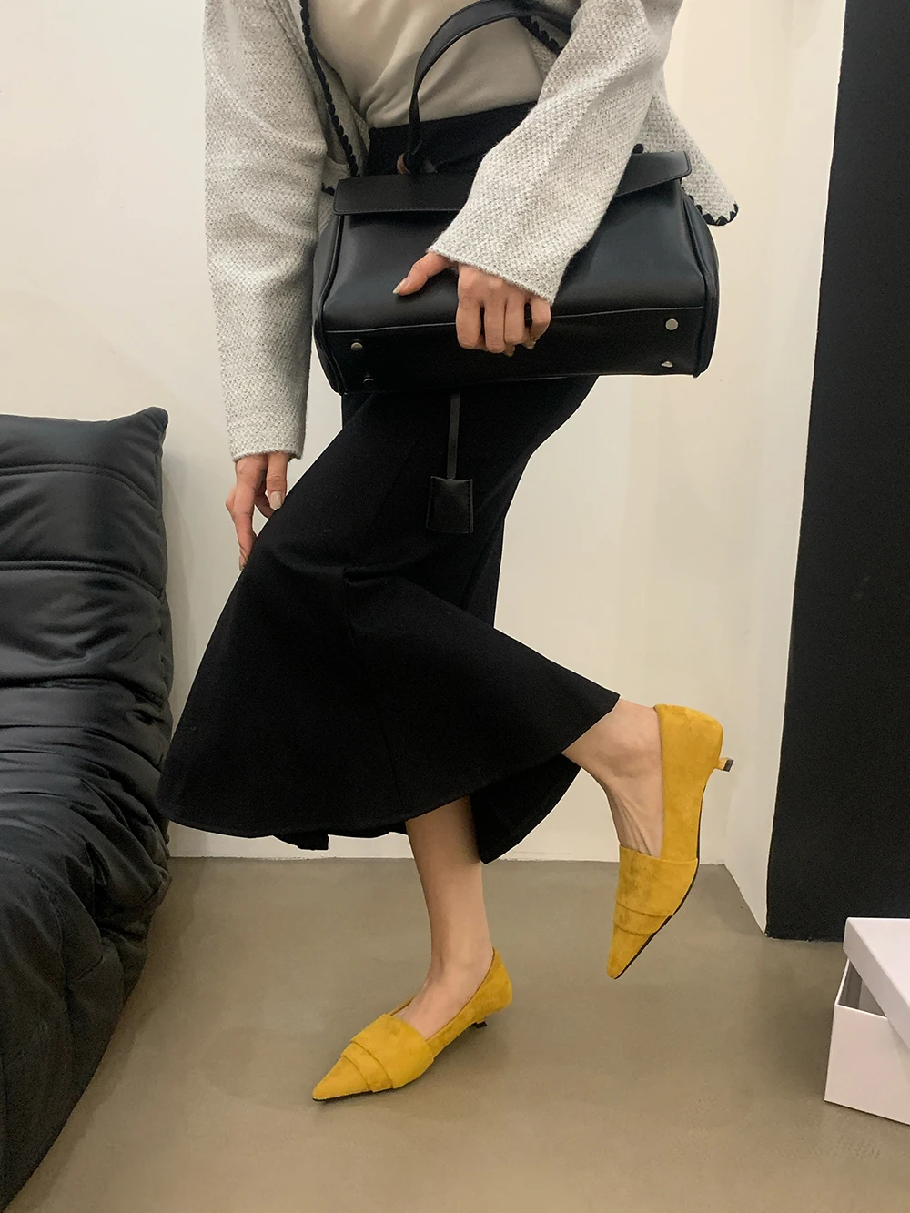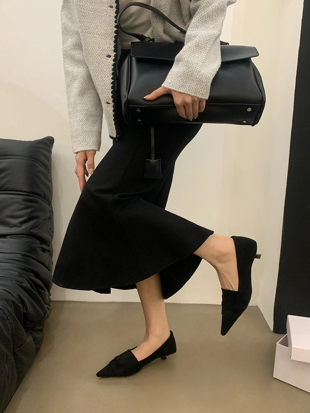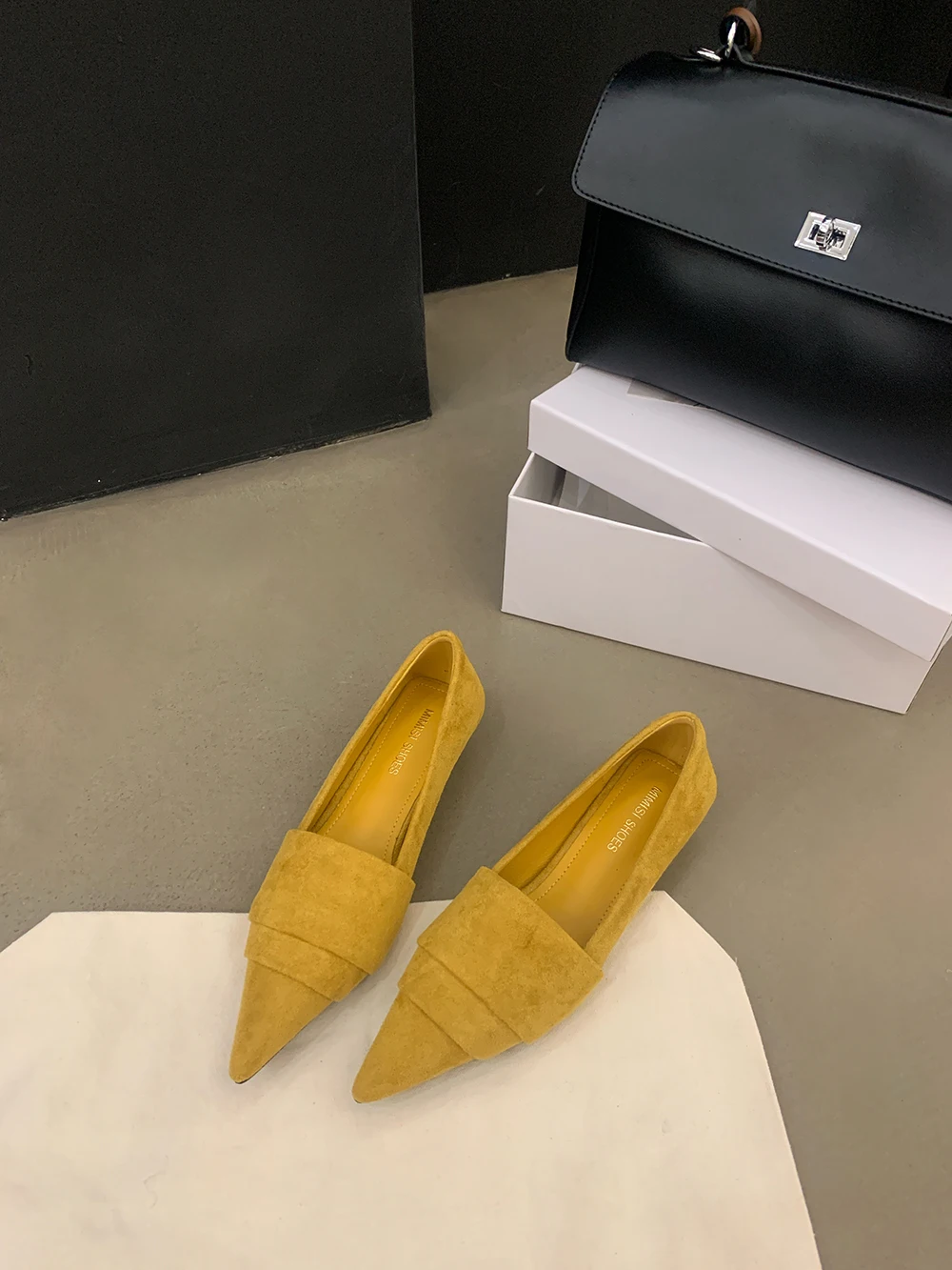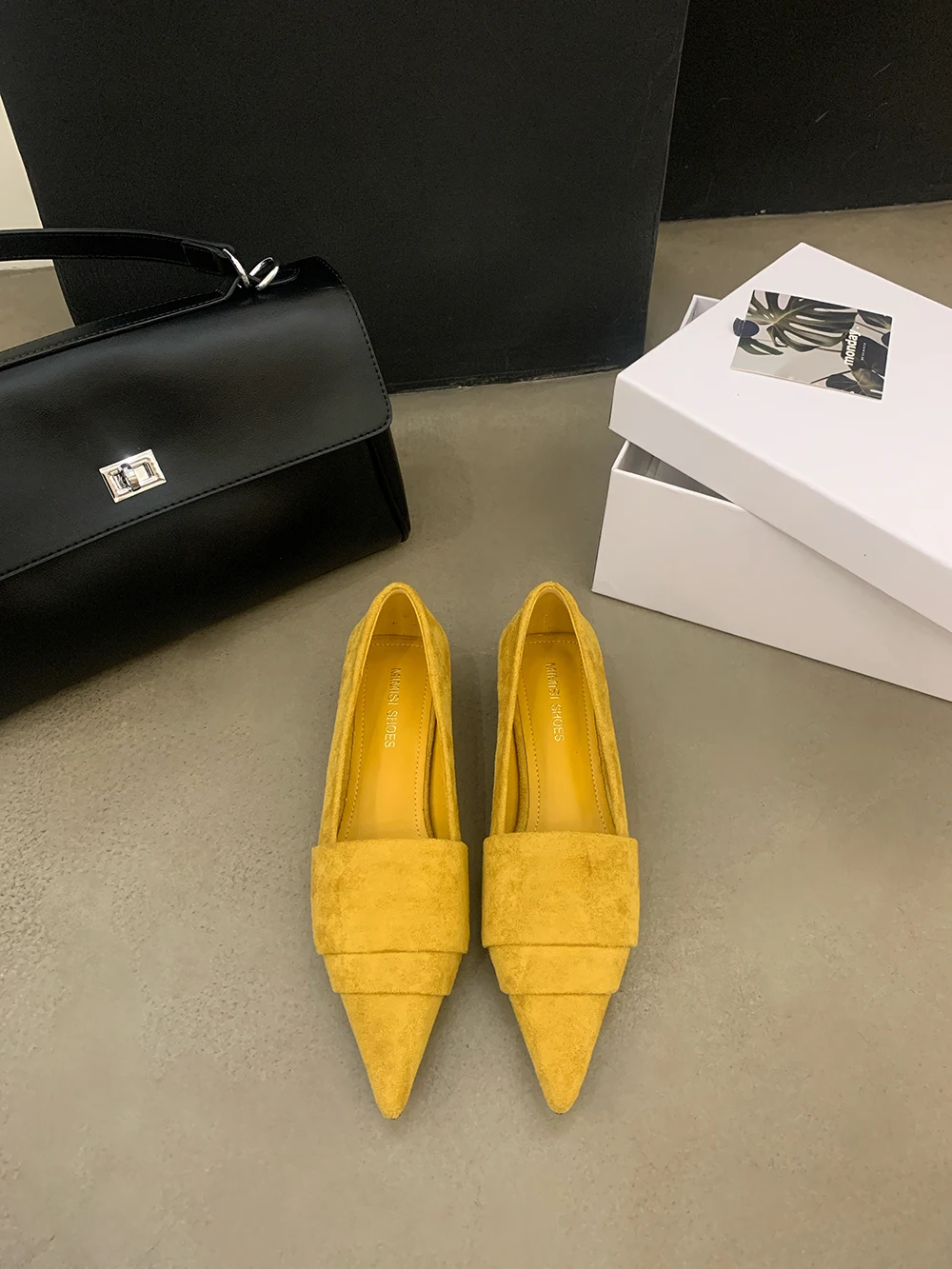 LBSFY - Pointed Toe Women Pumps 2025 New Arrivals Flock Dress Shoes Thin Mid Heels Shallow Slip On Party Pumps Casual Office Pumps 35-39