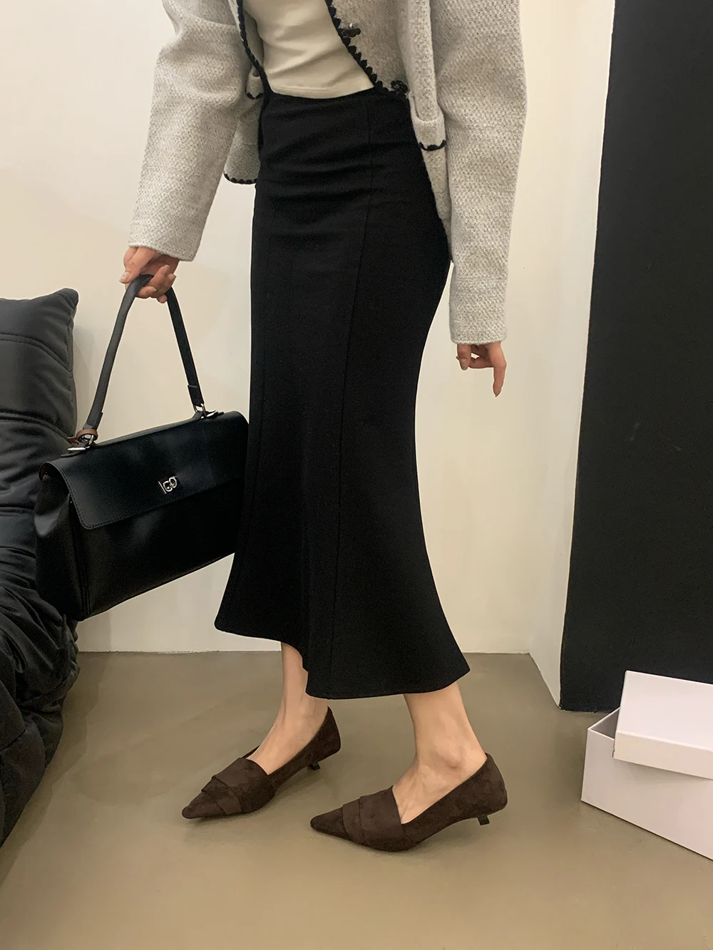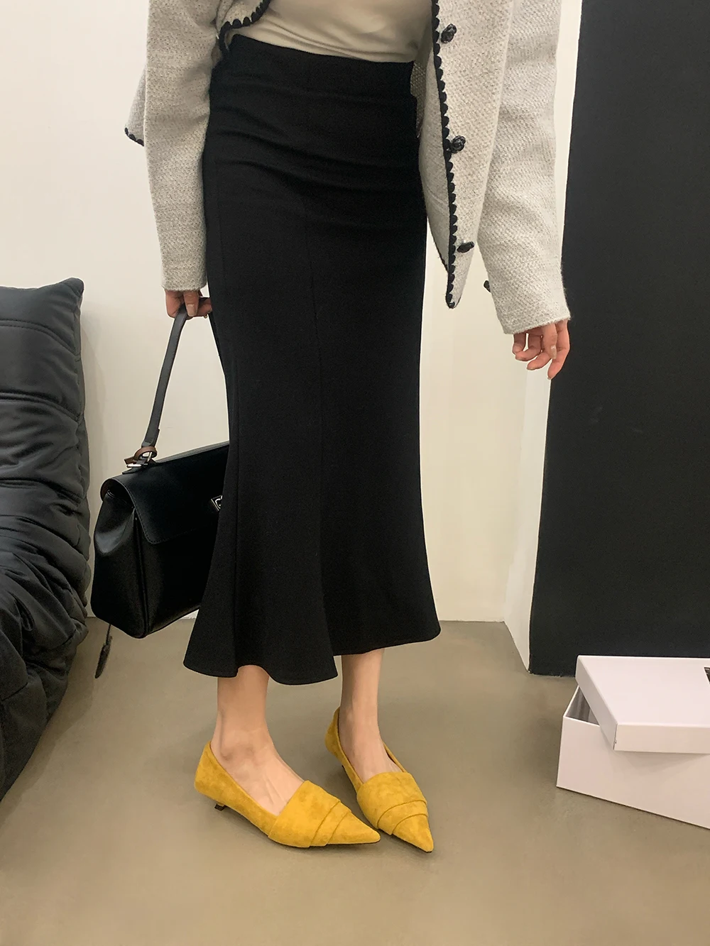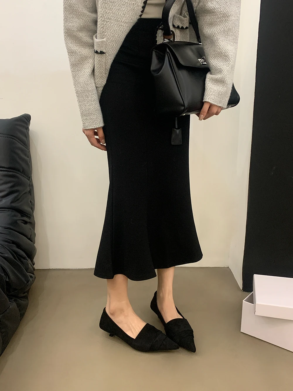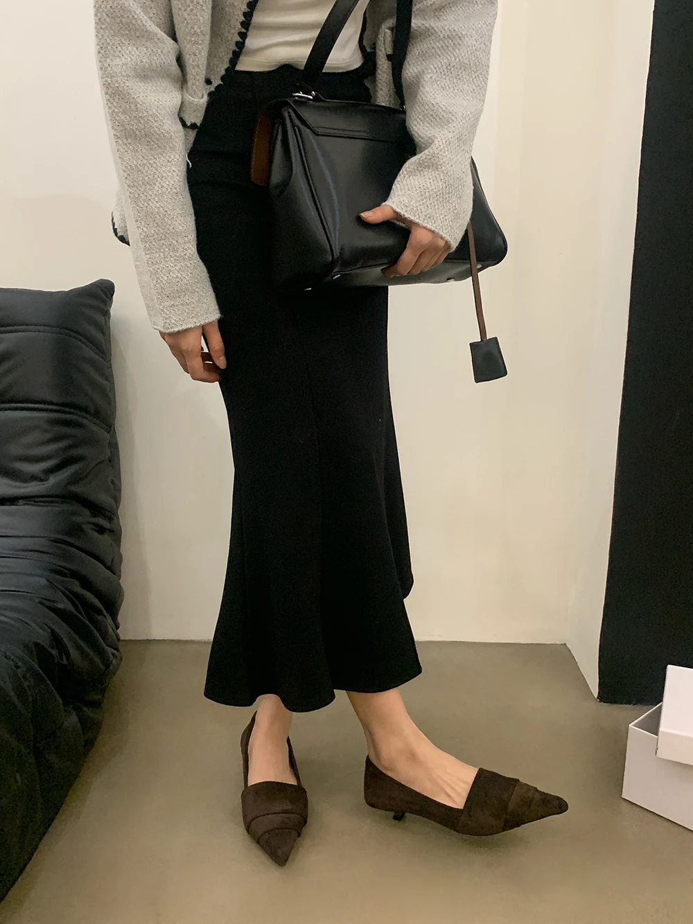LBSFY - Pointed Toe Women Pumps 2025 New Arrivals Flock Dress Shoes Thin Mid Heels Shallow Slip On Party Pumps Casual Office Pumps 35-39