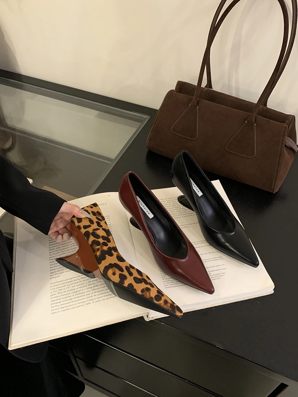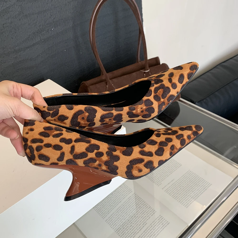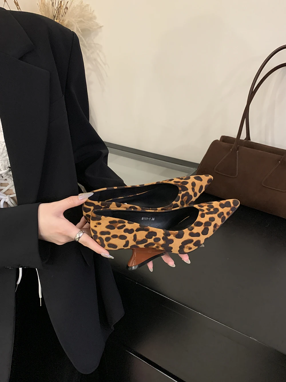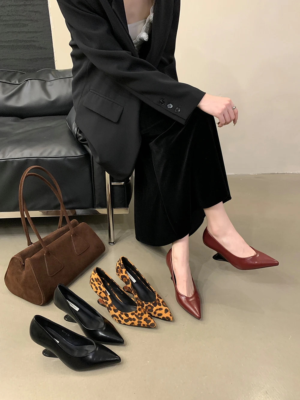 LBSFY - Pointed Toe Women Pumps Black/Wine Red/Leopard Shallow Pumps Shoes Woman Wedge High Heels Slip On Party Pumps Shoes Size 35-39