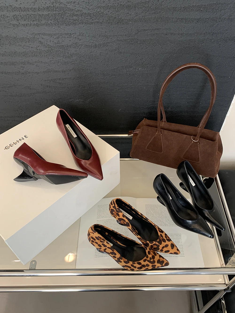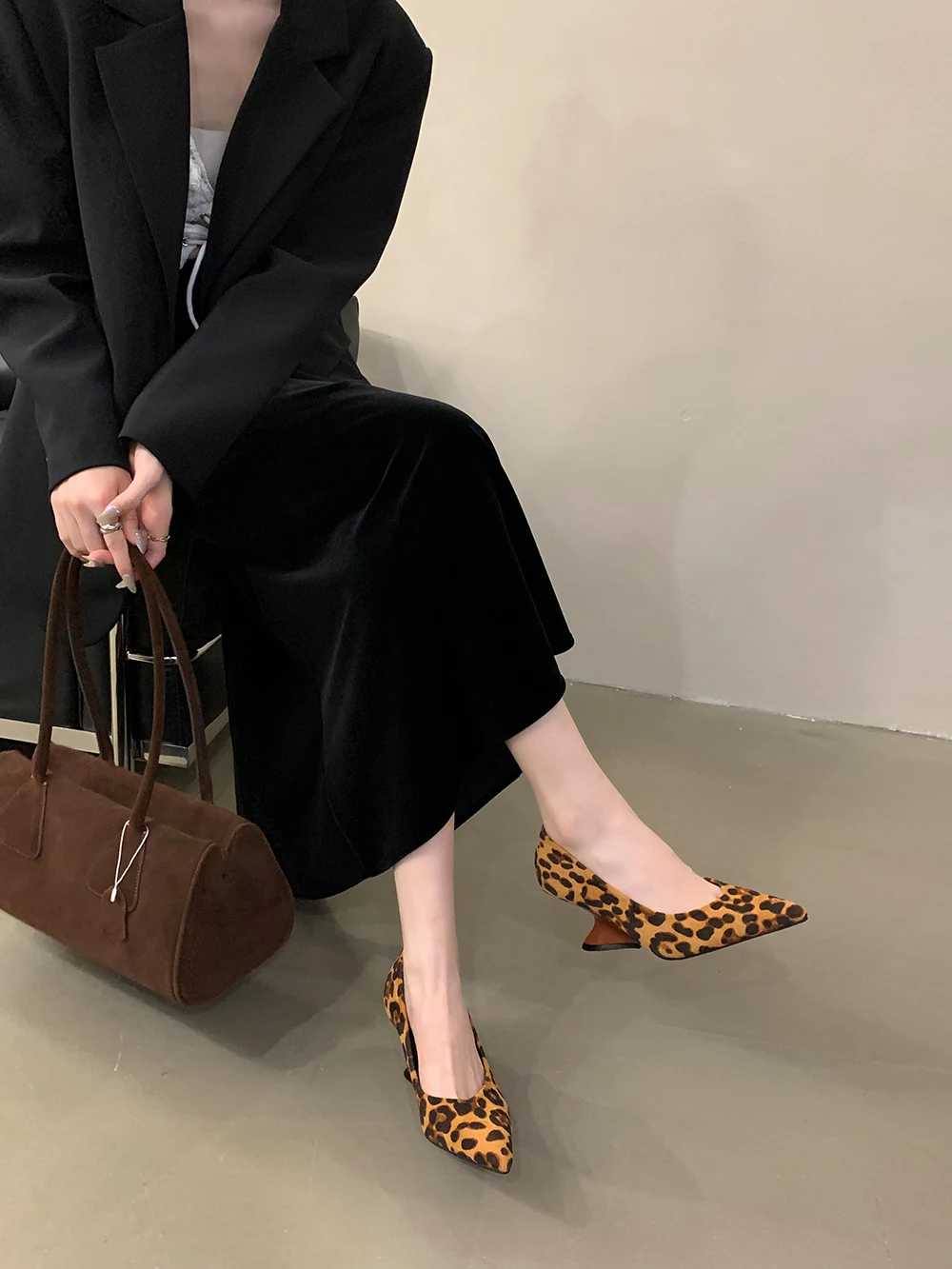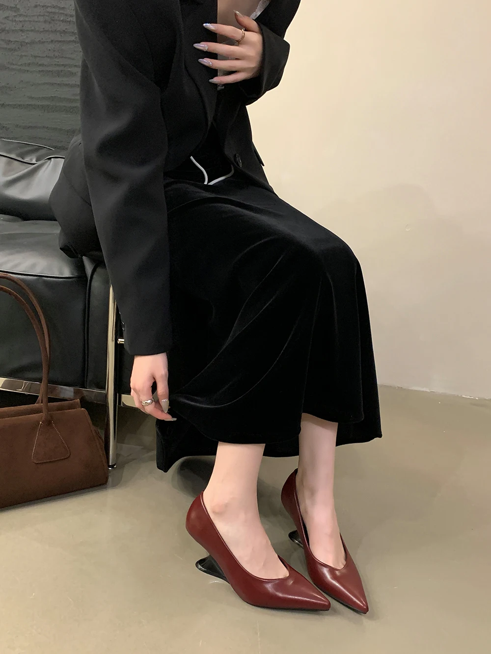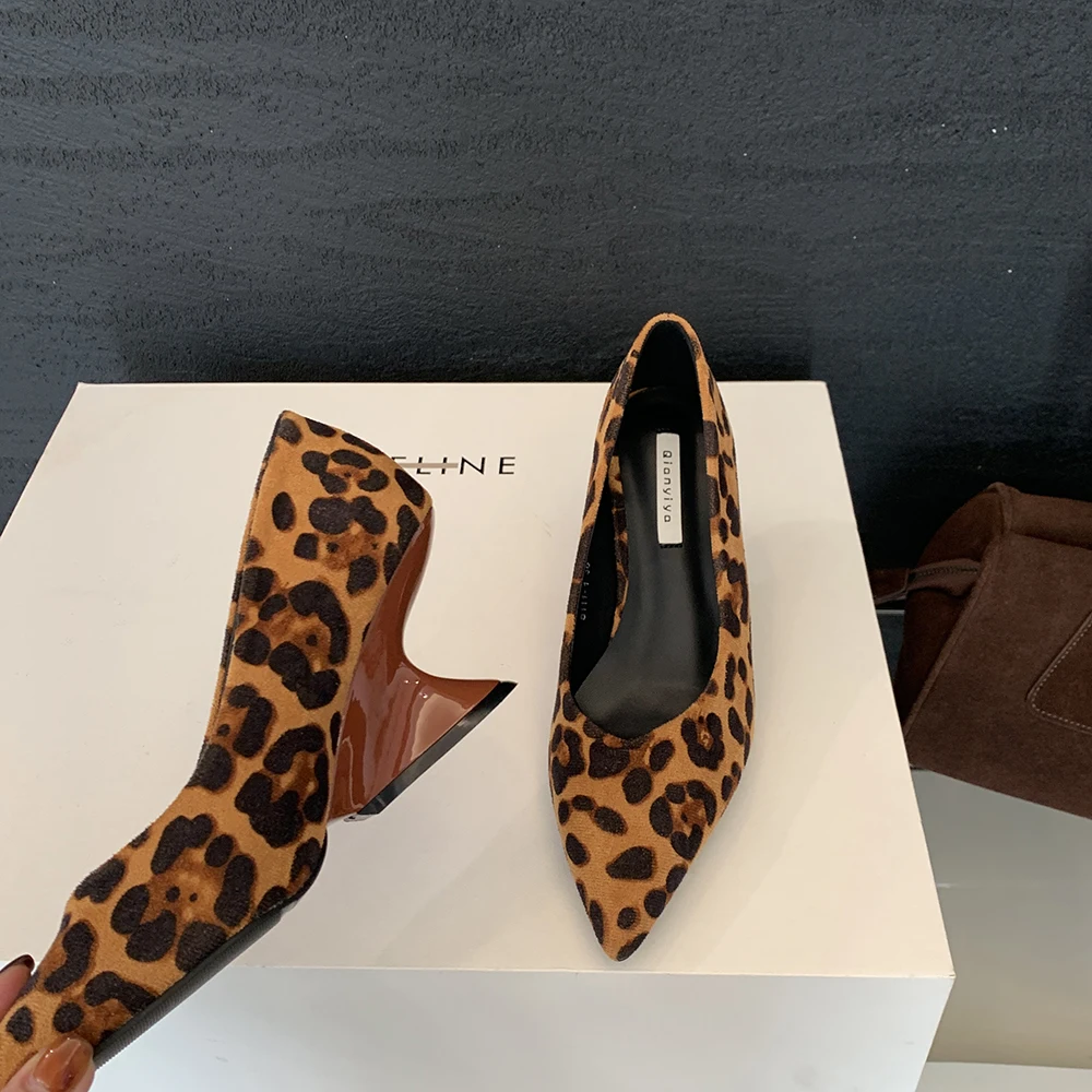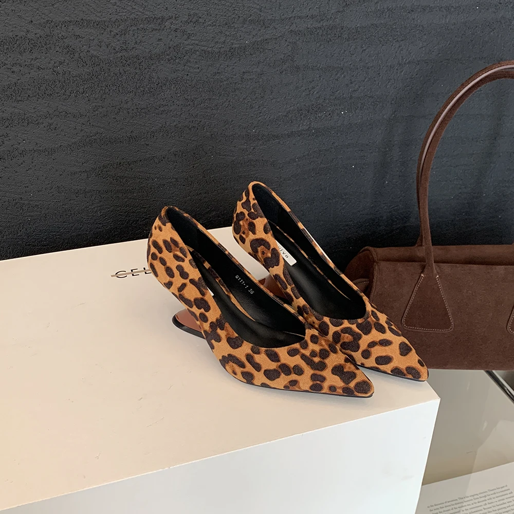 LBSFY - Pointed Toe Women Pumps Black/Wine Red/Leopard Shallow Pumps Shoes Woman Wedge High Heels Slip On Party Pumps Shoes Size 35-39