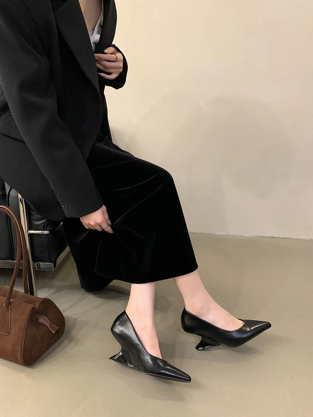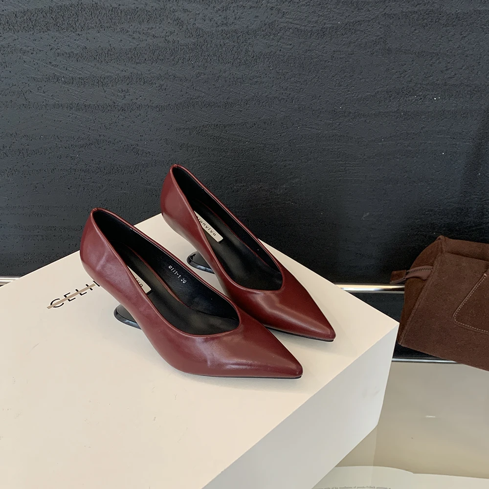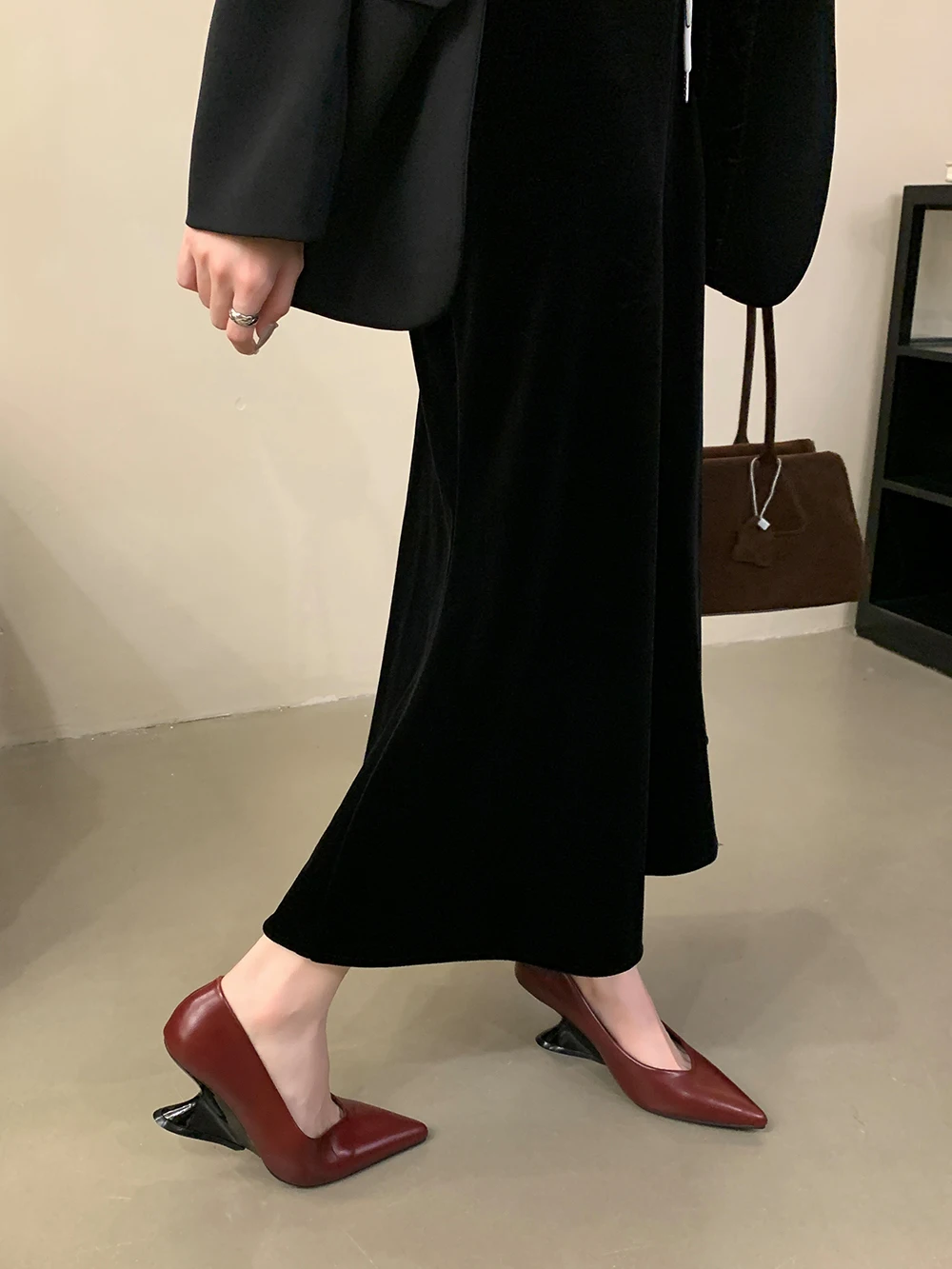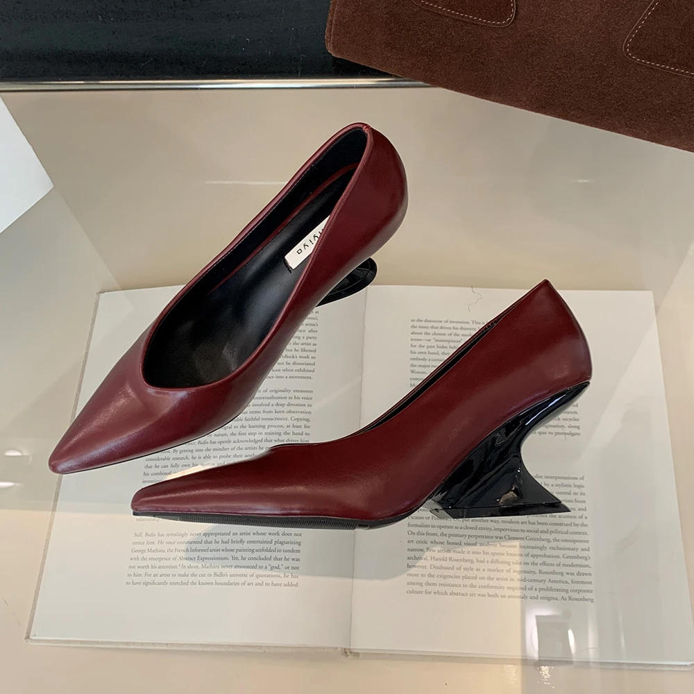 LBSFY - Pointed Toe Women Pumps Black/Wine Red/Leopard Shallow Pumps Shoes Woman Wedge High Heels Slip On Party Pumps Shoes Size 35-39