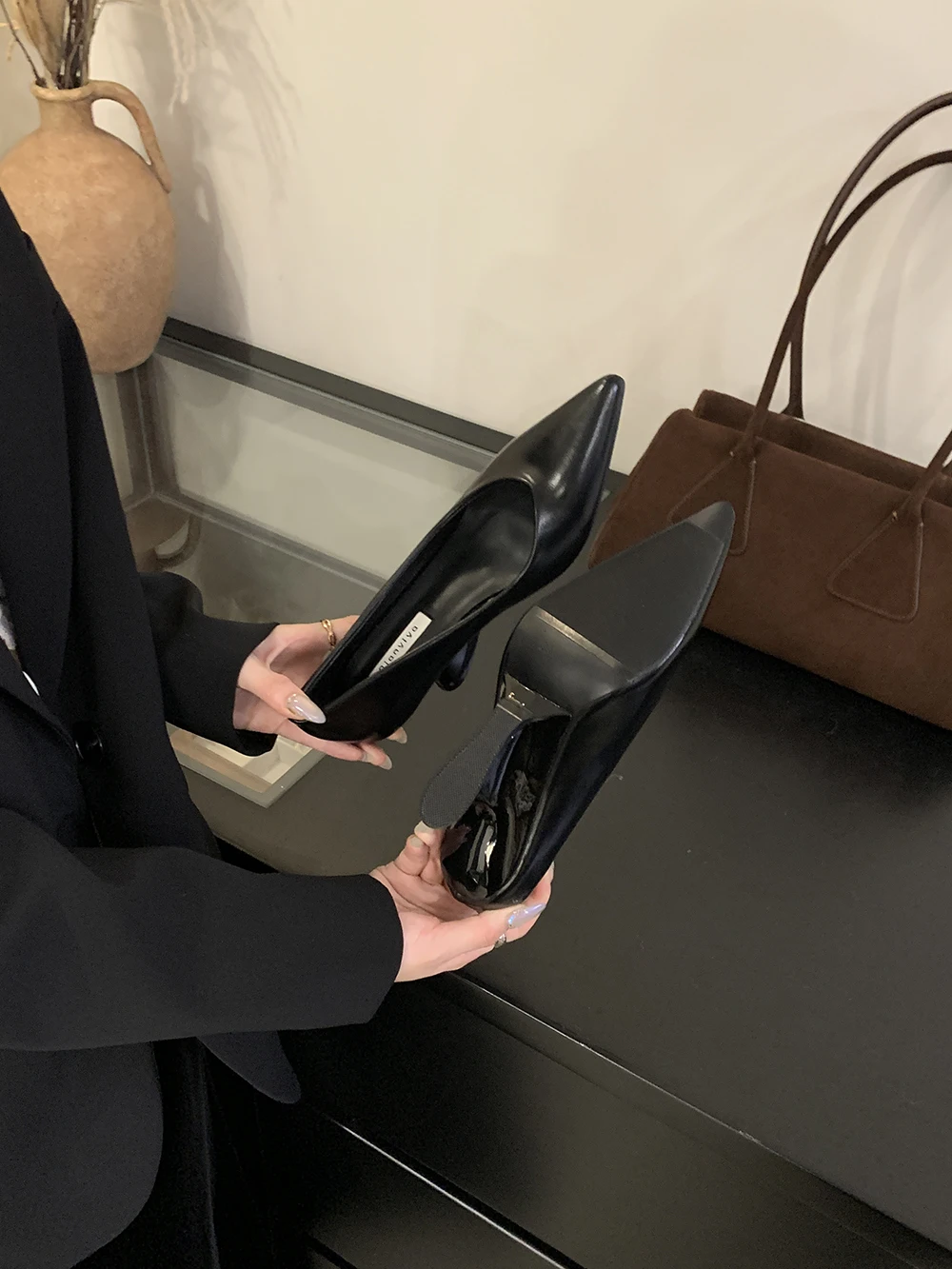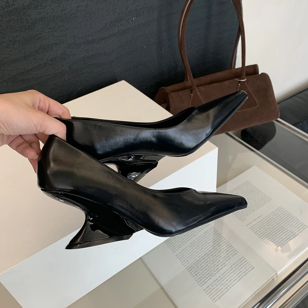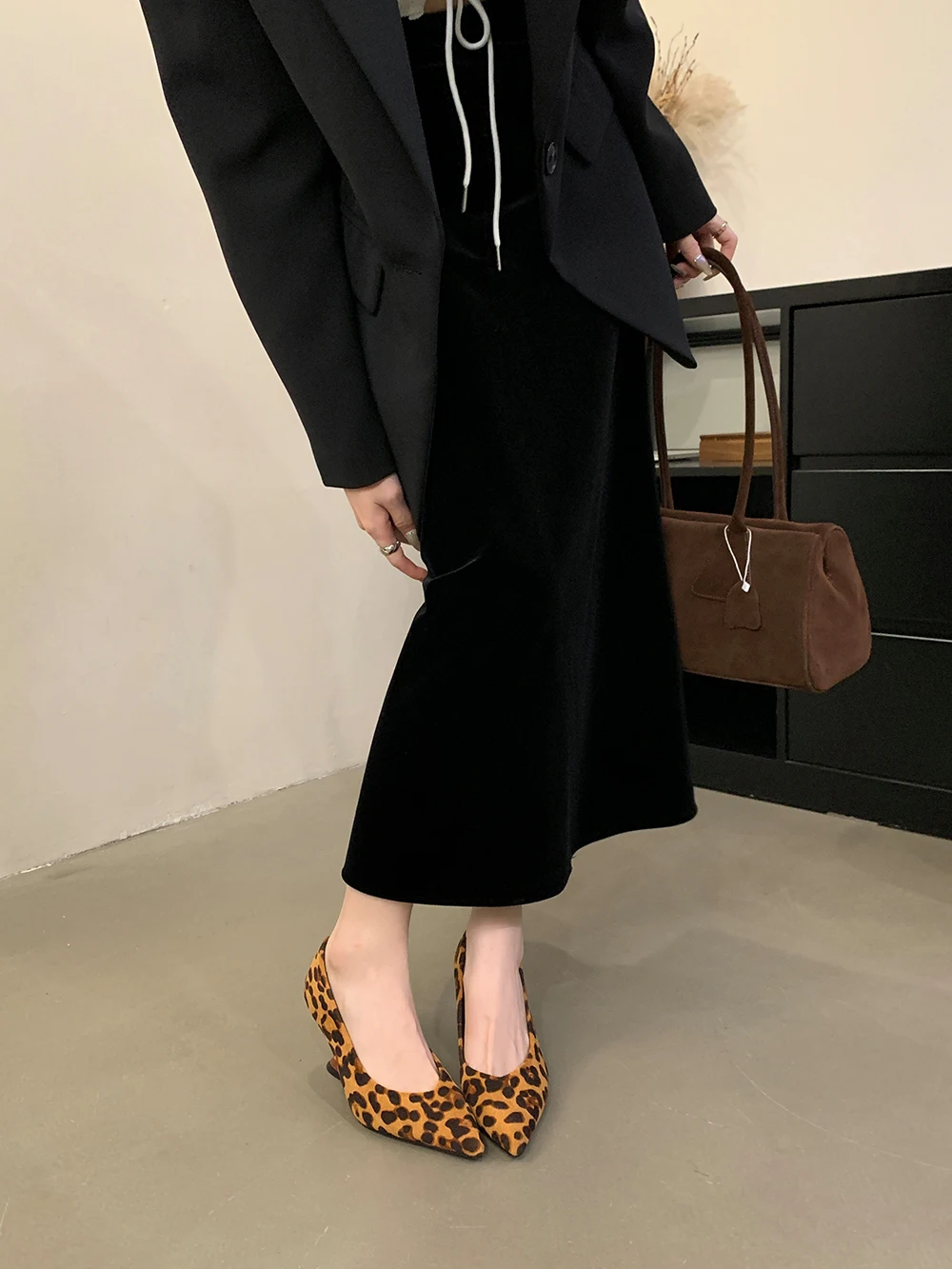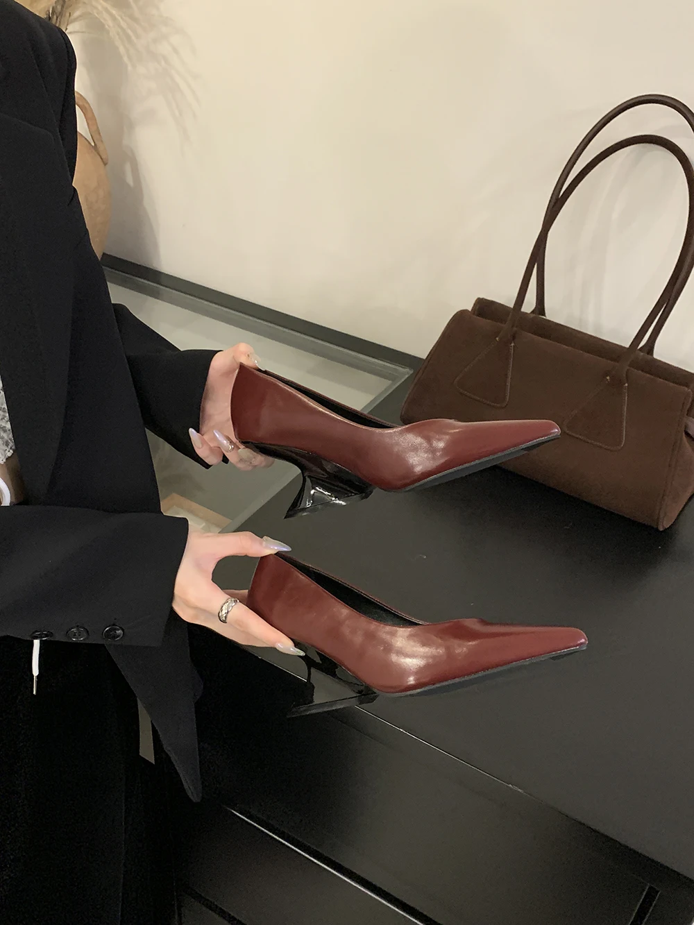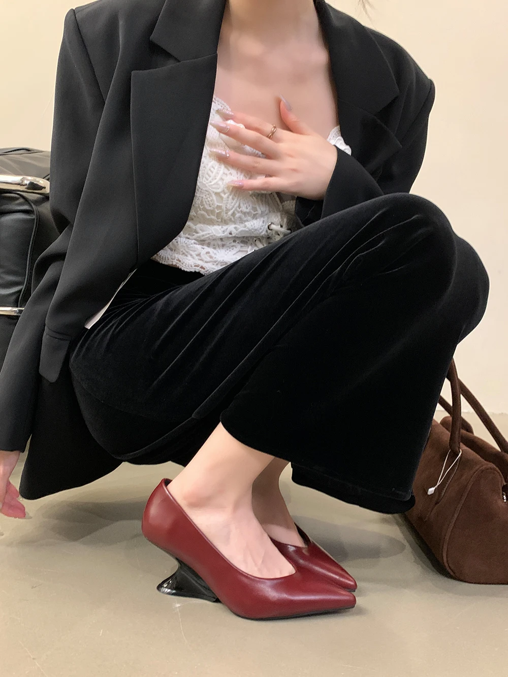 LBSFY - Pointed Toe Women Pumps Black/Wine Red/Leopard Shallow Pumps Shoes Woman Wedge High Heels Slip On Party Pumps Shoes Size 35-39
