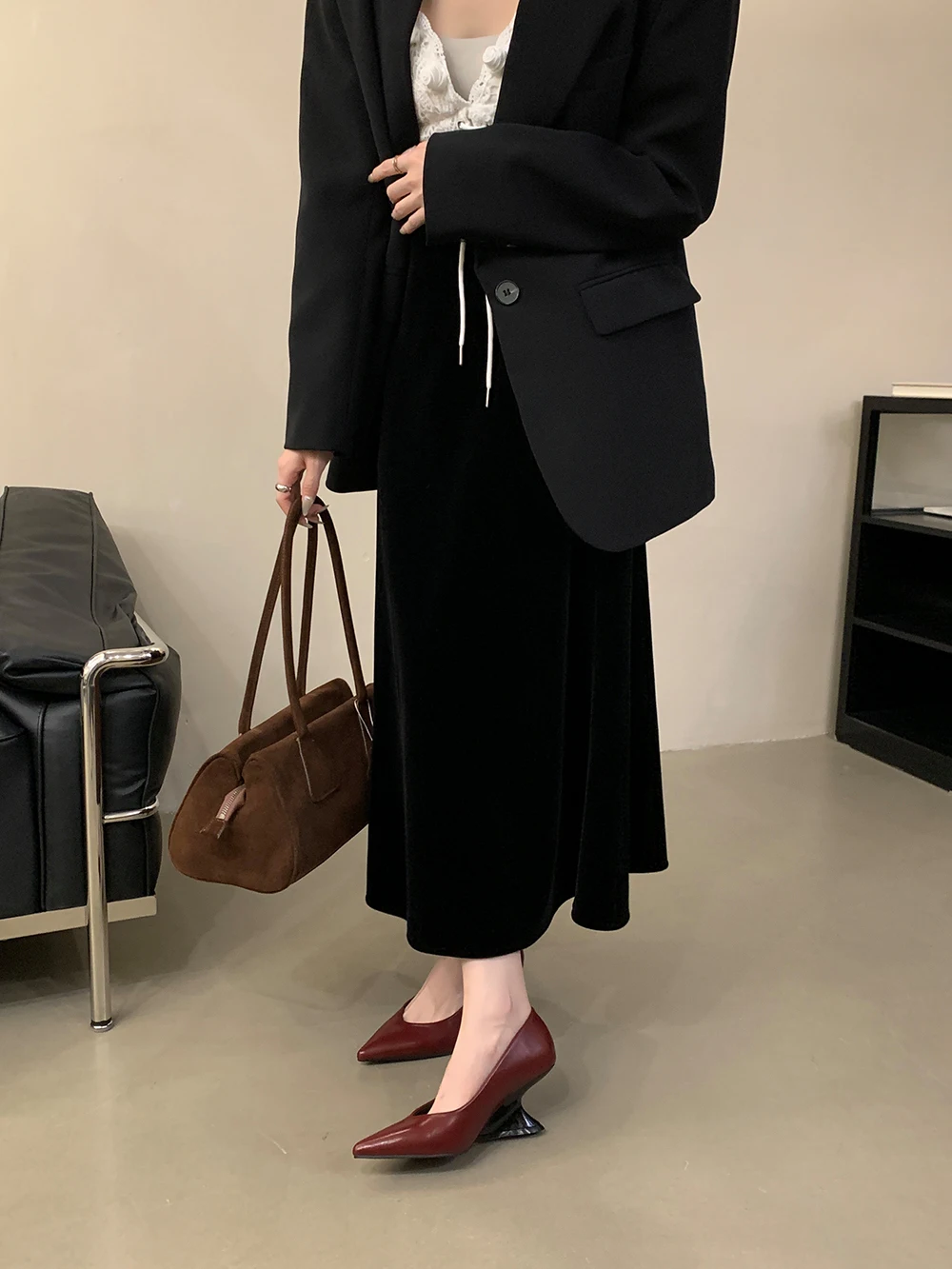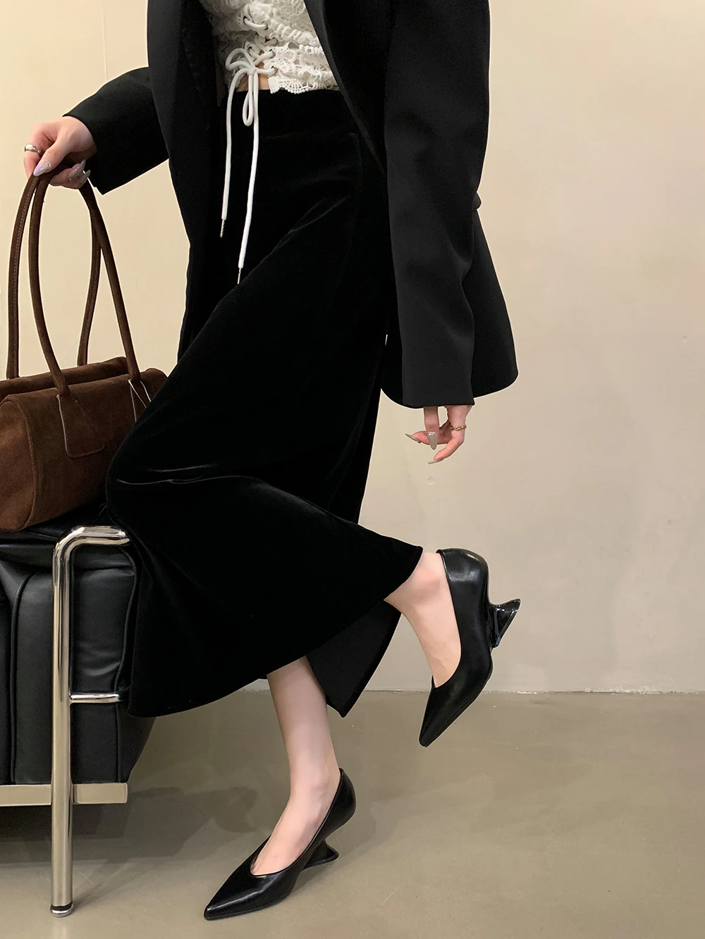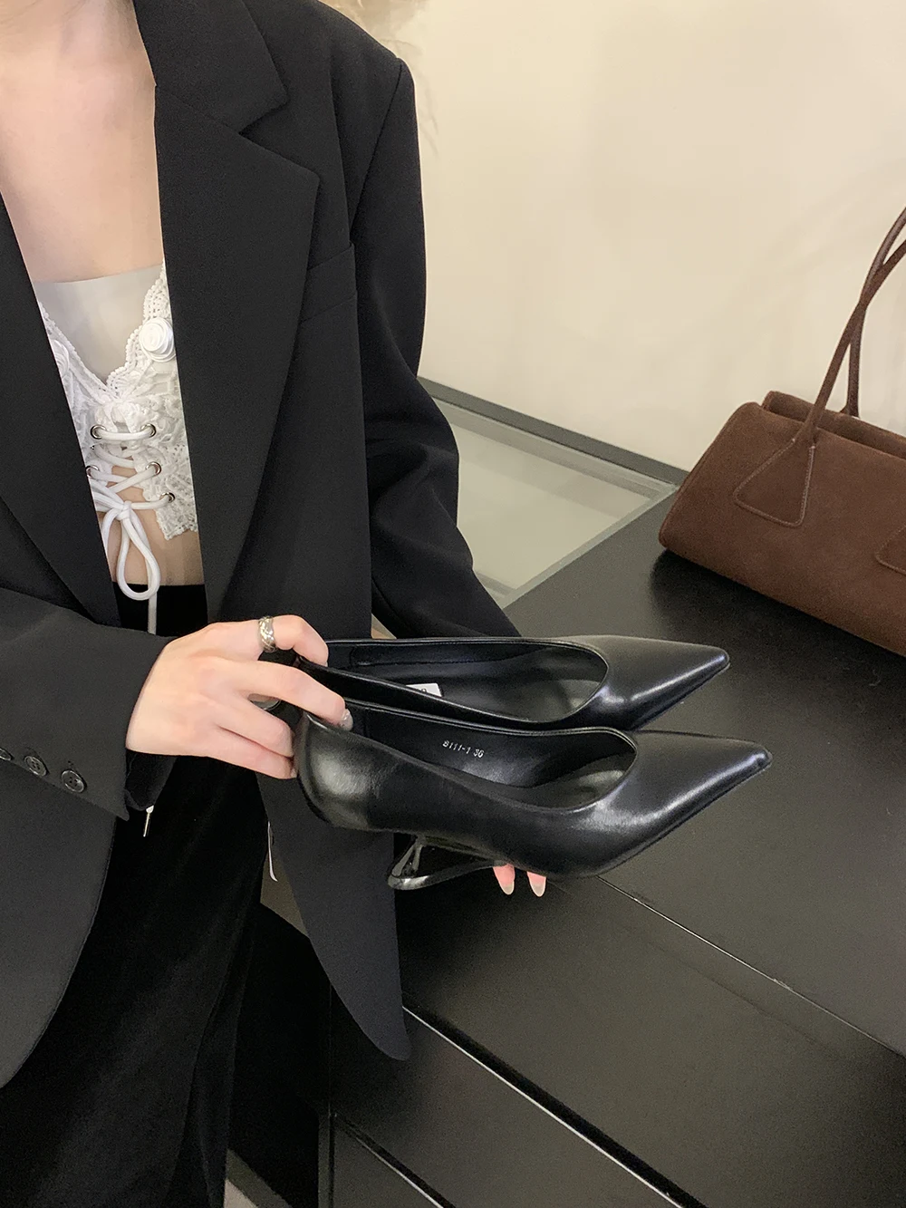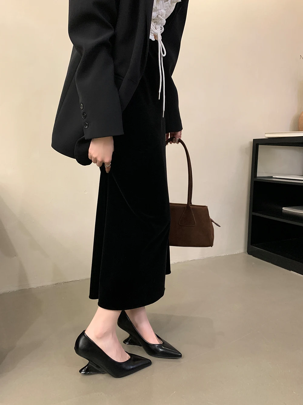 LBSFY - Pointed Toe Women Pumps Black/Wine Red/Leopard Shallow Pumps Shoes Woman Wedge High Heels Slip On Party Pumps Shoes Size 35-39