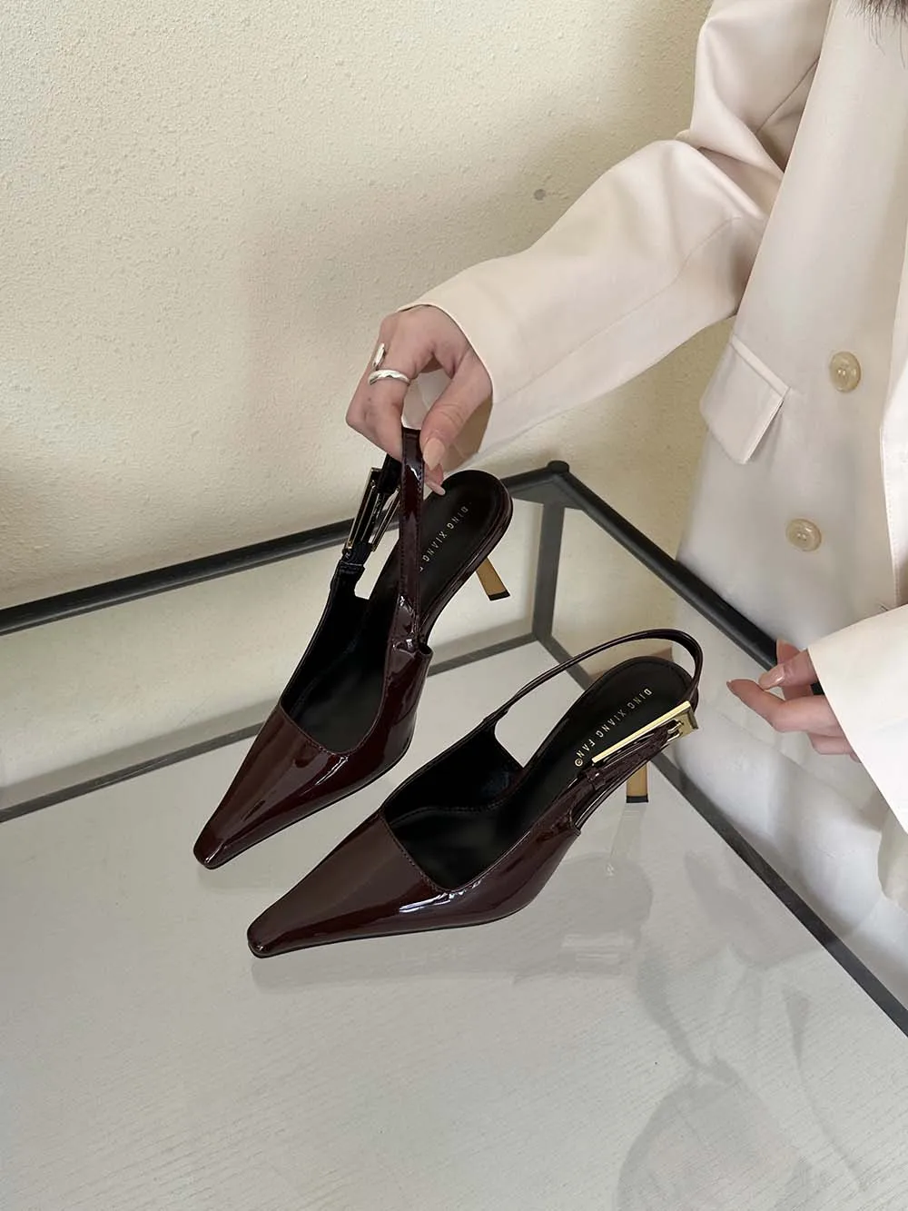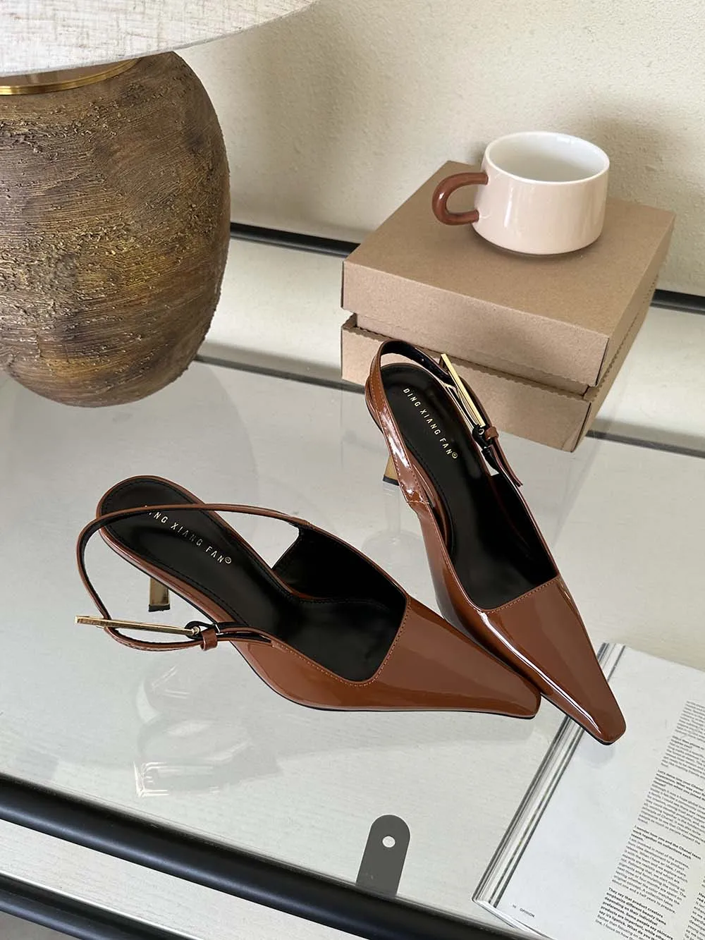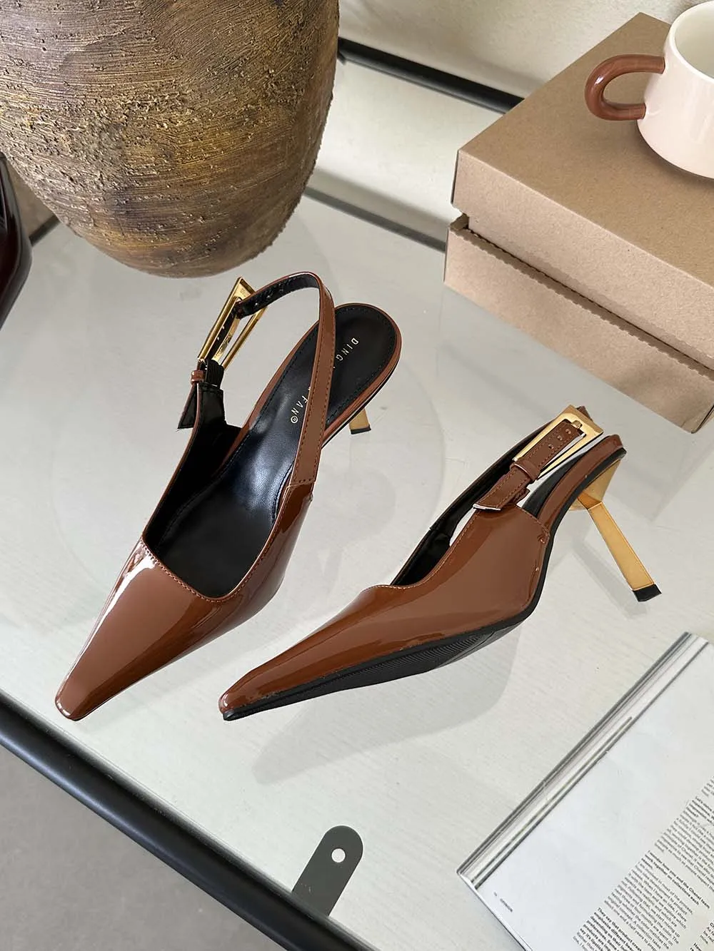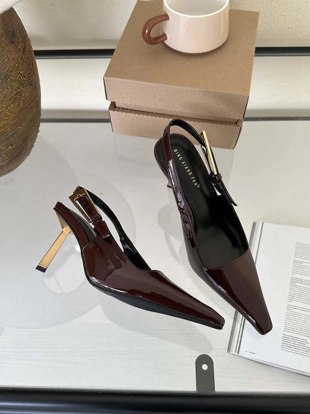 LBSFY - Pointed Toe Women Sandal 2024 New Arrivals Fashion Dress Shoes Back Strap Thin High Heels Party Pumps Belt Buckle Wedding Pumps