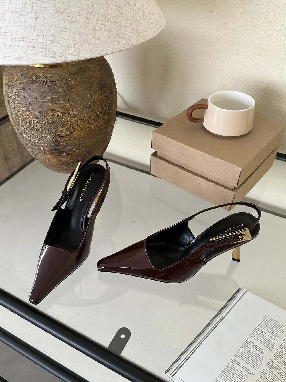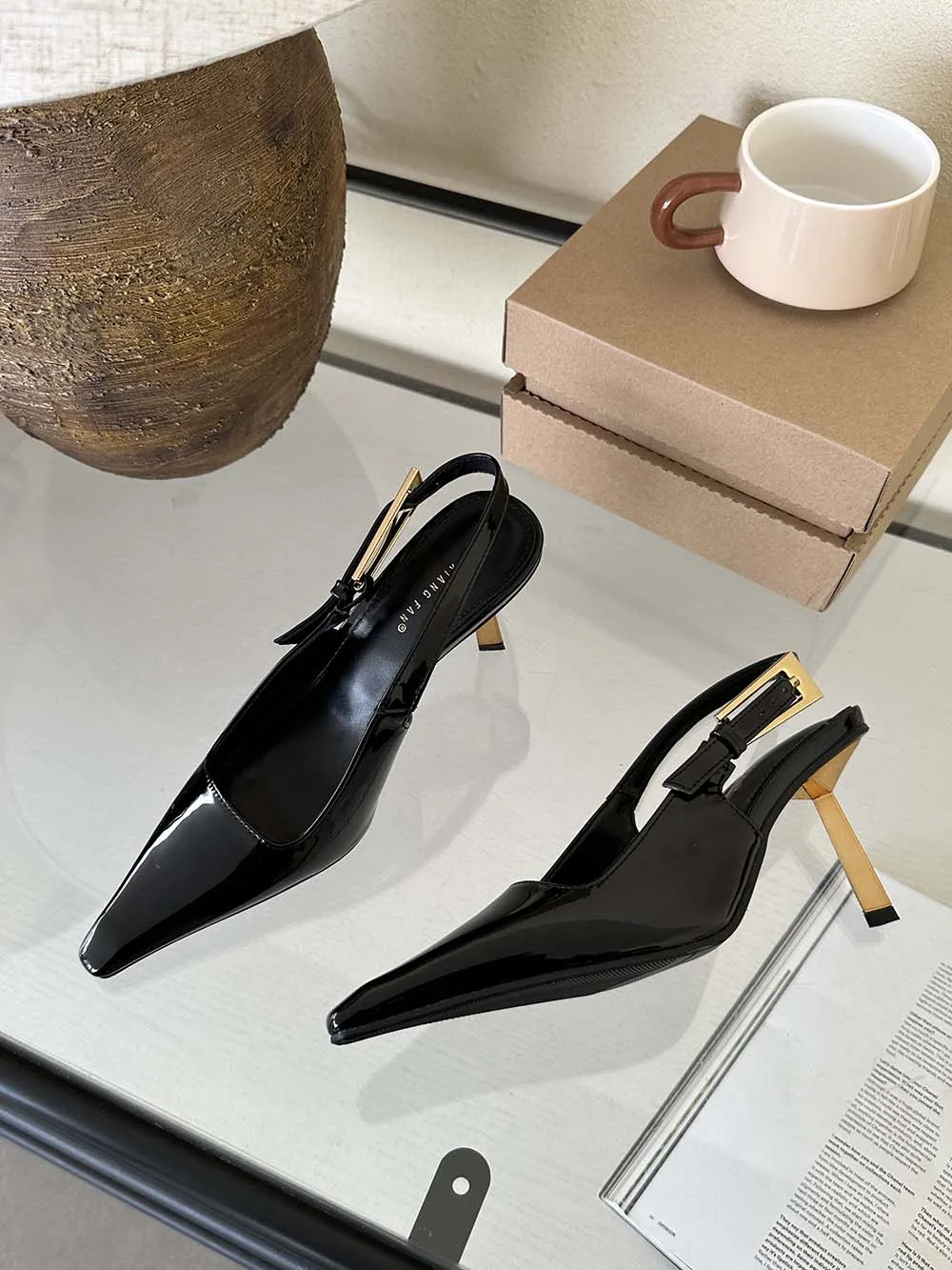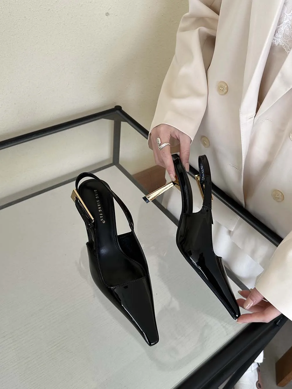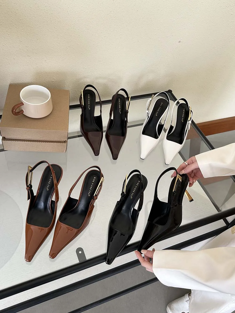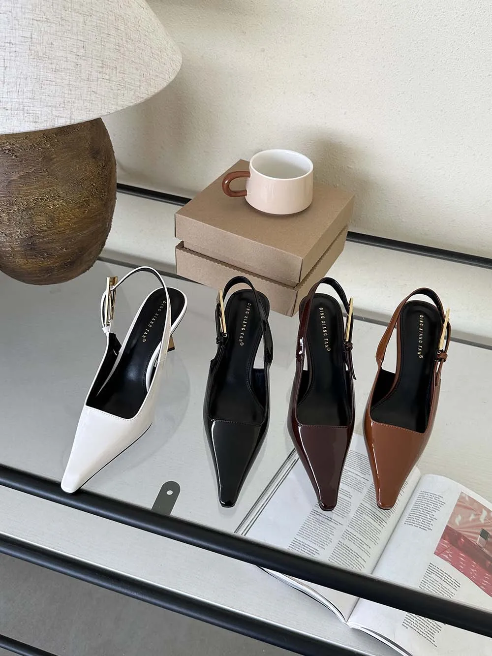 LBSFY - Pointed Toe Women Sandal 2024 New Arrivals Fashion Dress Shoes Back Strap Thin High Heels Party Pumps Belt Buckle Wedding Pumps
