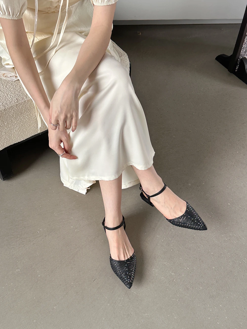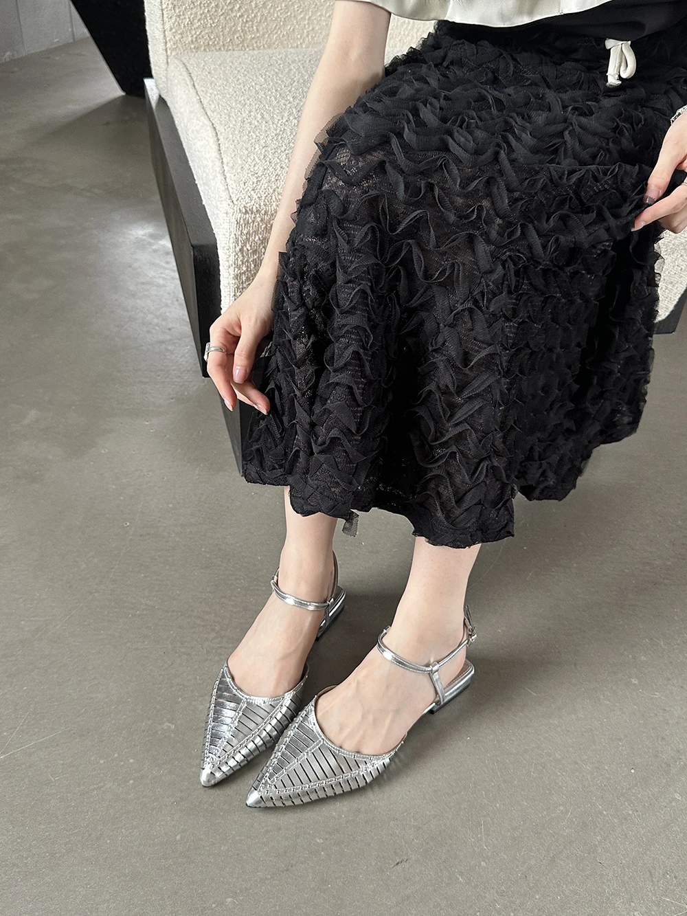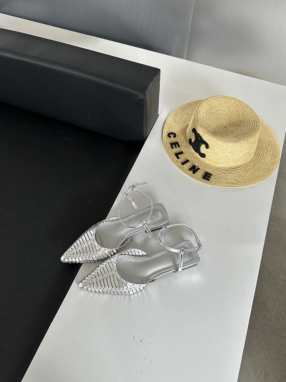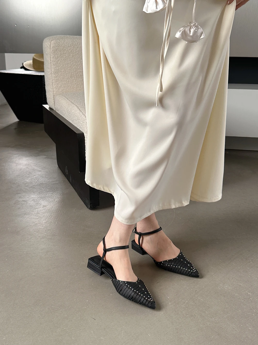 LBSFY - Pointed Toe Women Sandals 2024 New Arrivals Ankle Strap Black Silver Summer Flat Low Heeled Rhinestone Party Sandals Size 35-39