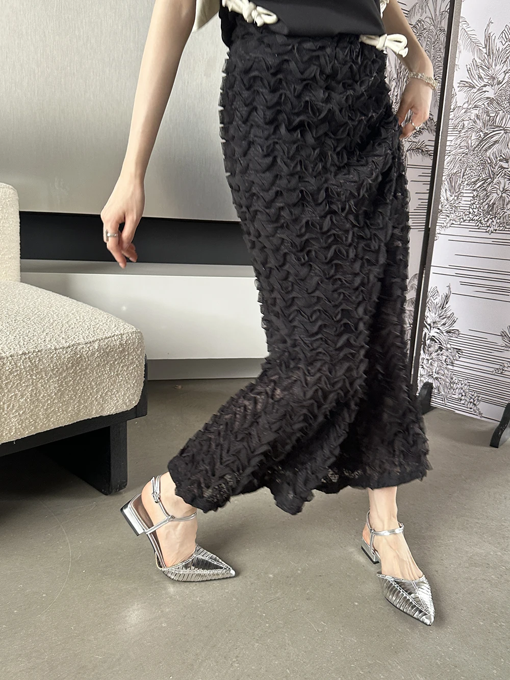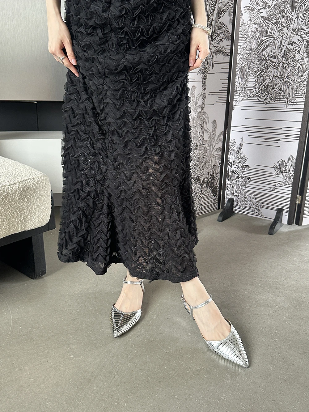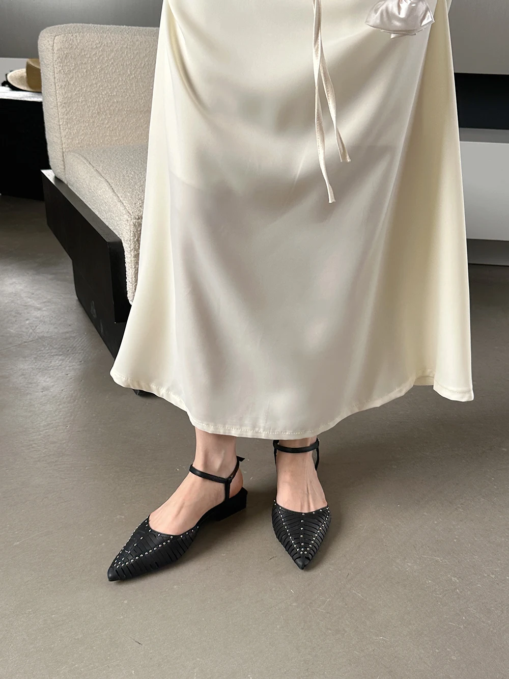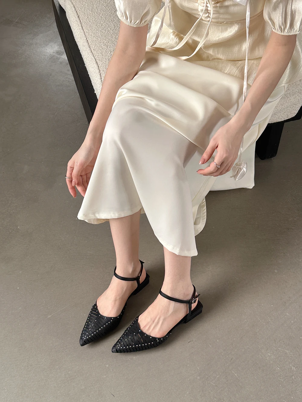 LBSFY - Pointed Toe Women Sandals 2024 New Arrivals Ankle Strap Black Silver Summer Flat Low Heeled Rhinestone Party Sandals Size 35-39