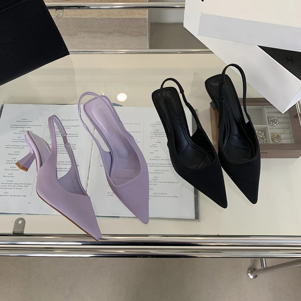 LBSFY - Pointed Toe Women Sandals 2024 New Arrivals Party Pumps Thin High Heels Black/Purple Elegant Dress Shoes Woman 2024 Size 35-40