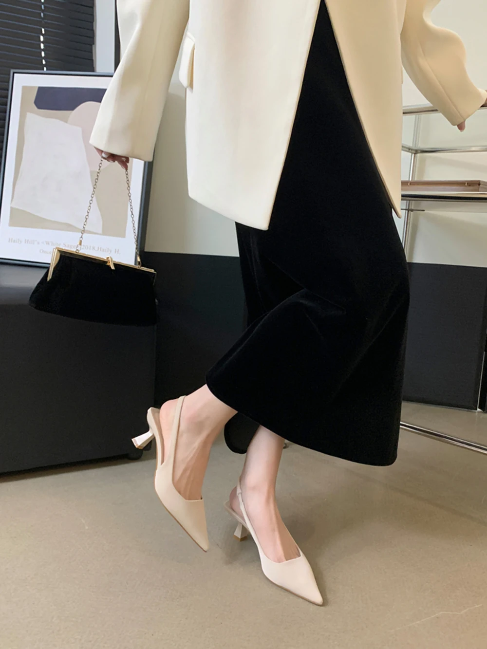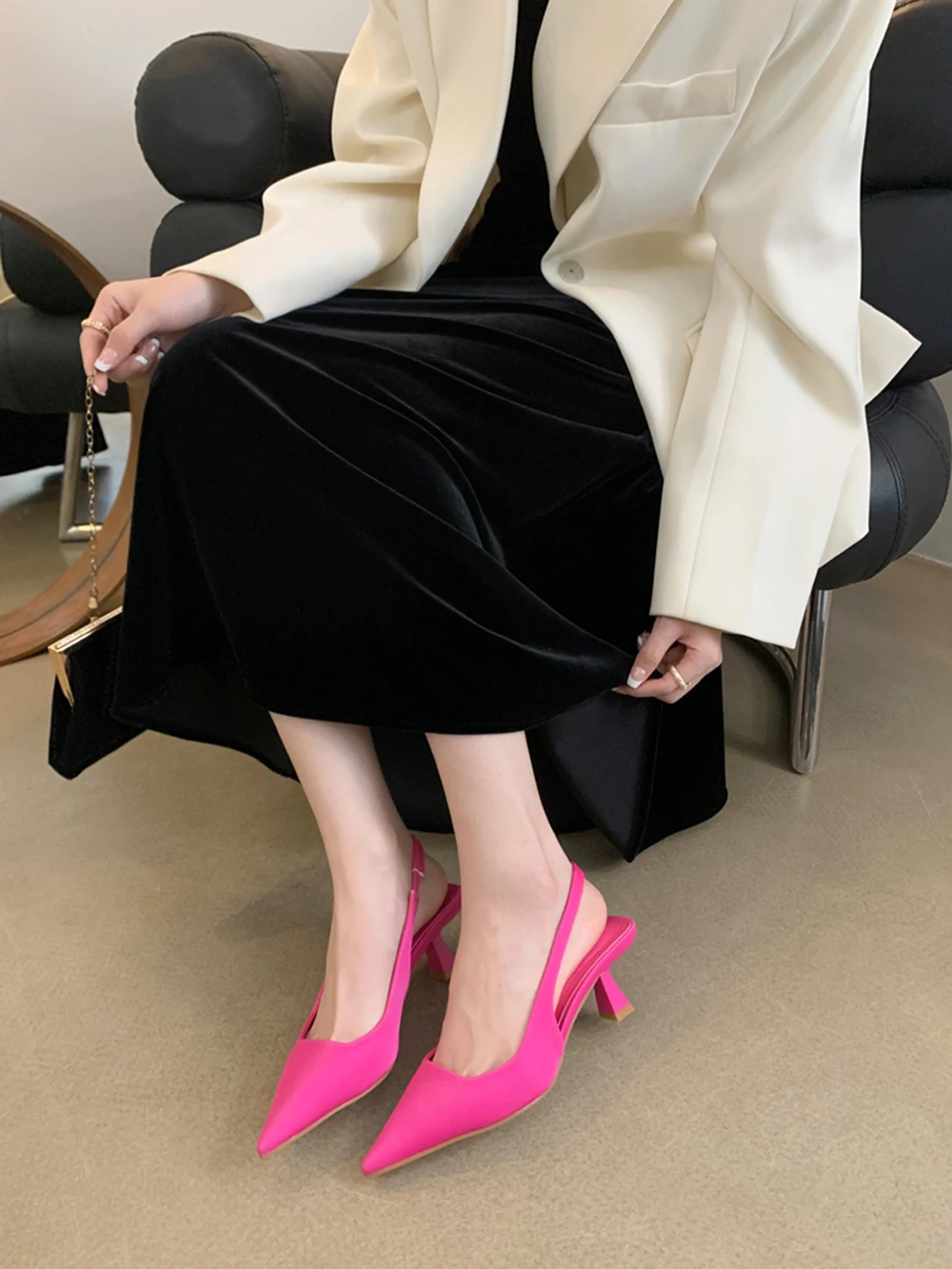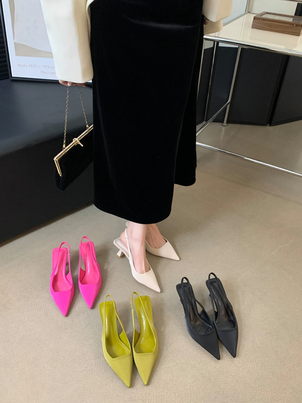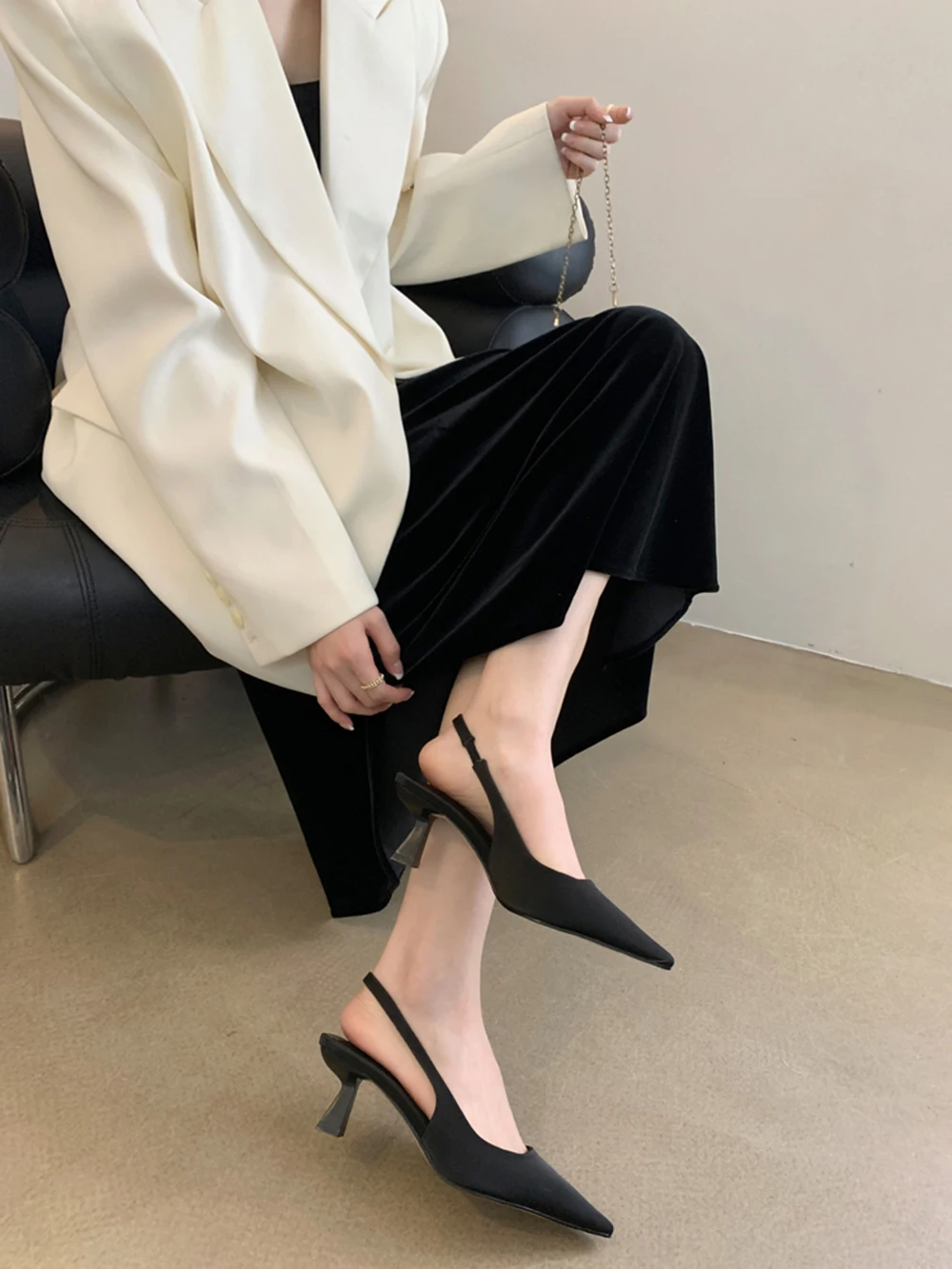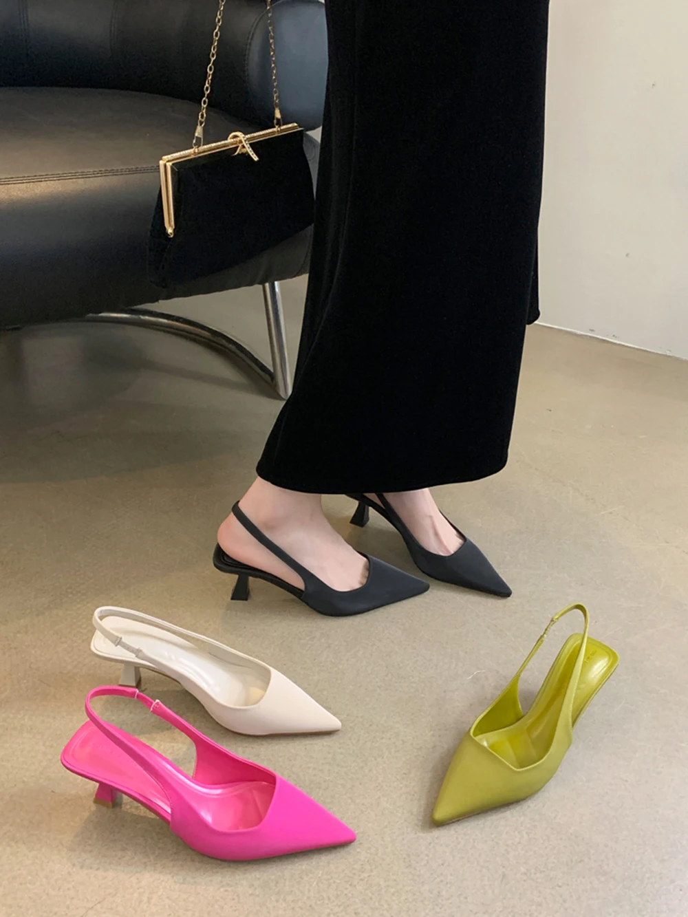 LBSFY - Pointed Toe Women Sandals 2024 New Arrivals Thin High Heels Casual Party Pumps Elastic Back Strap Party Pumps Size 35-39 Sexy
