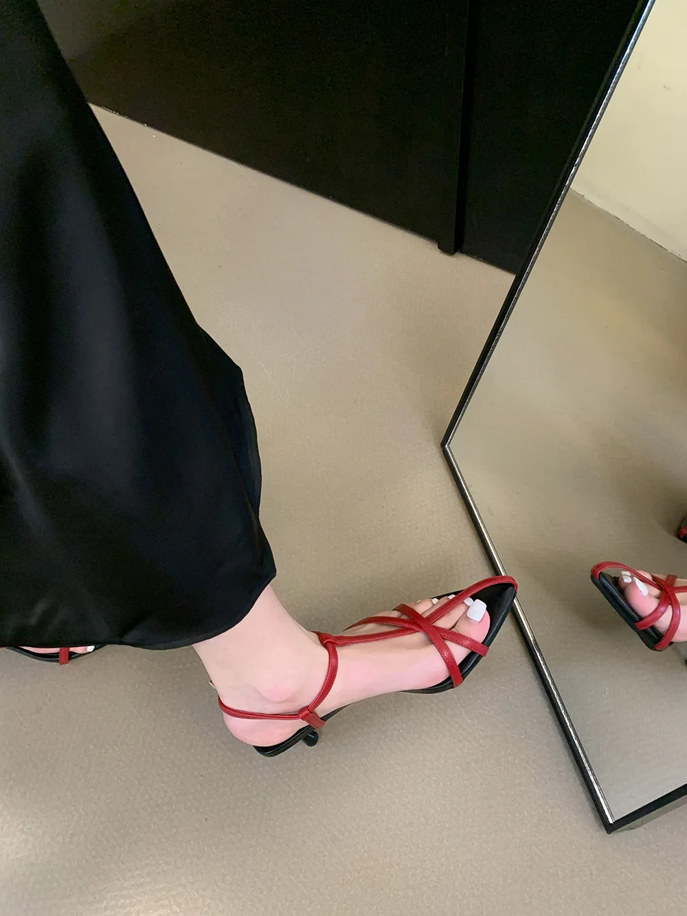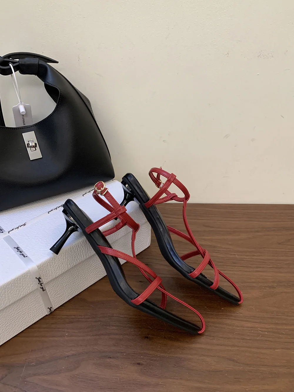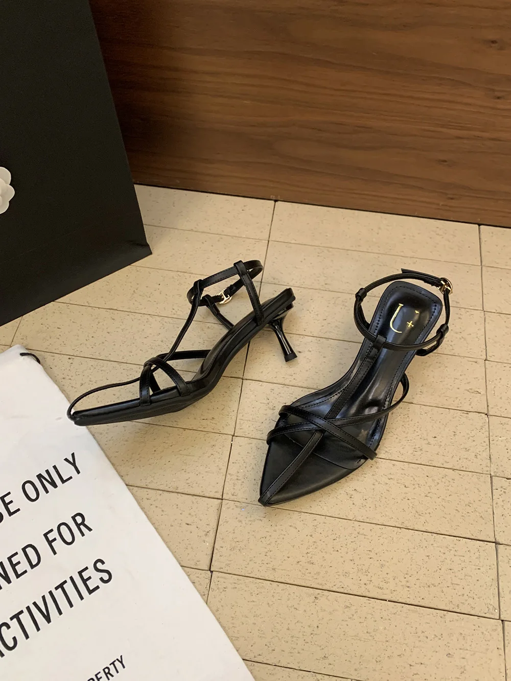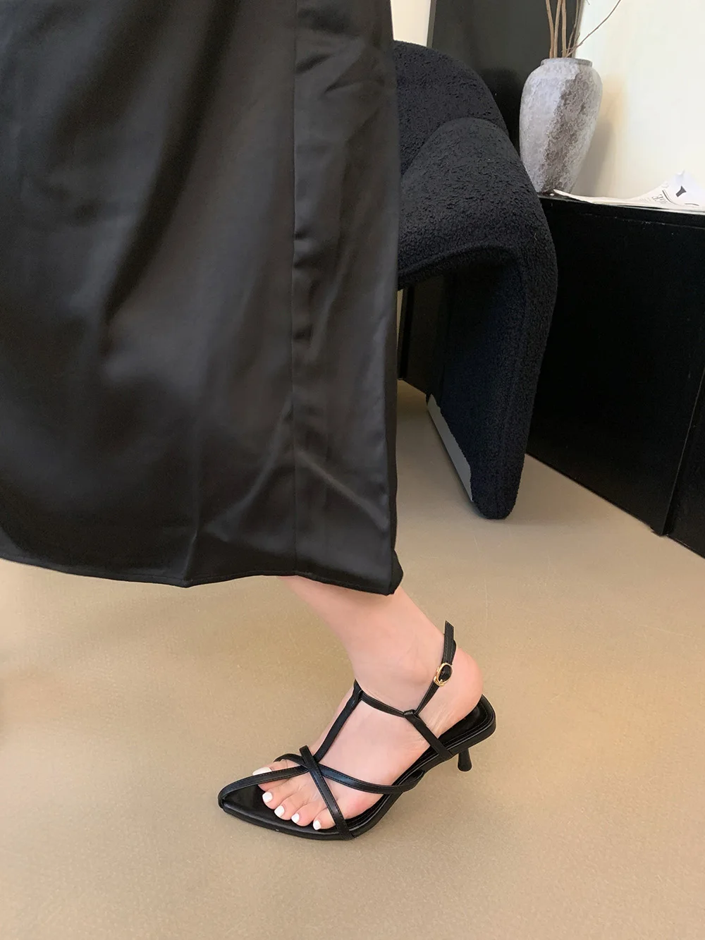 LBSFY - Pointed Toe Women Sandals Fashion Dress Party Pumps Thin High Heels Ankle Strap Black Red Silver Hollow Design Wedding Pumps