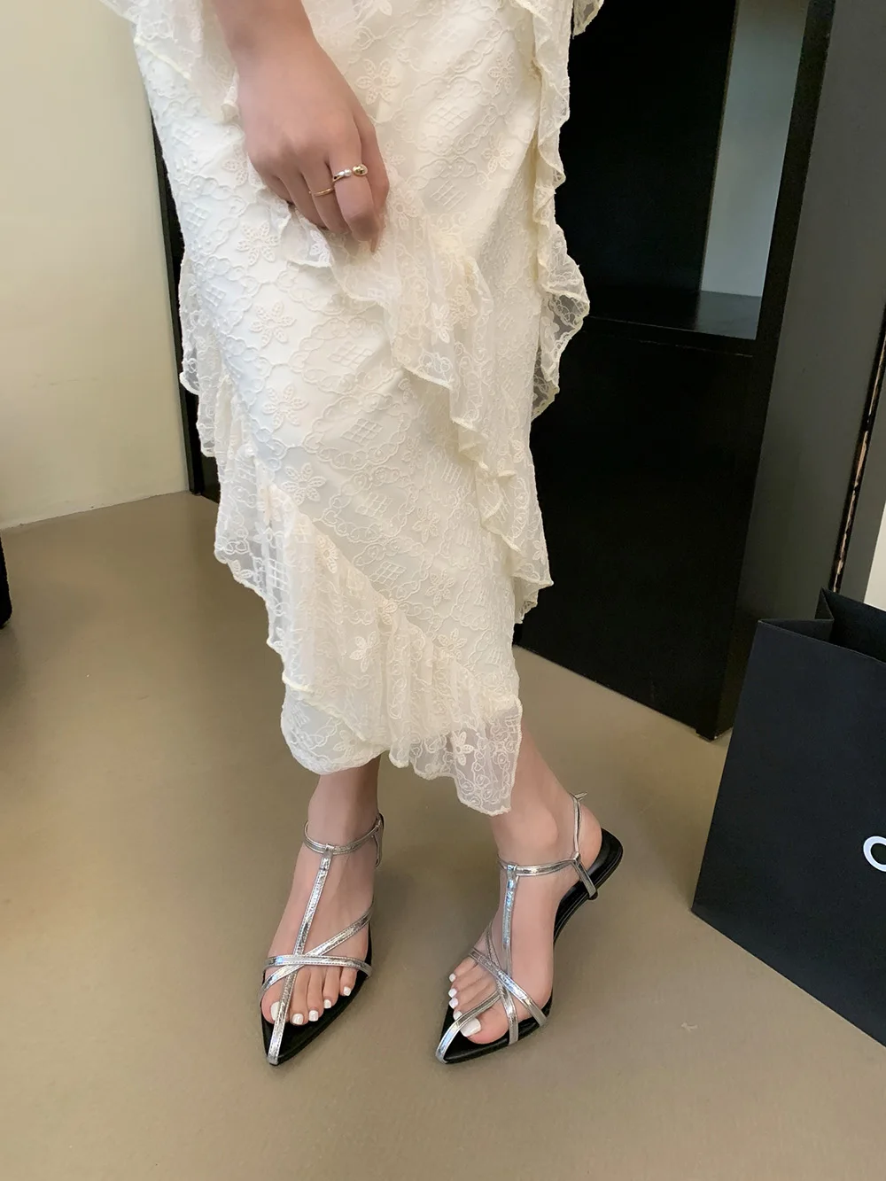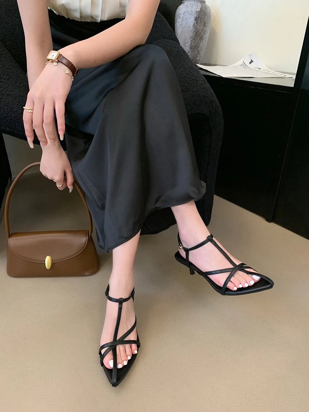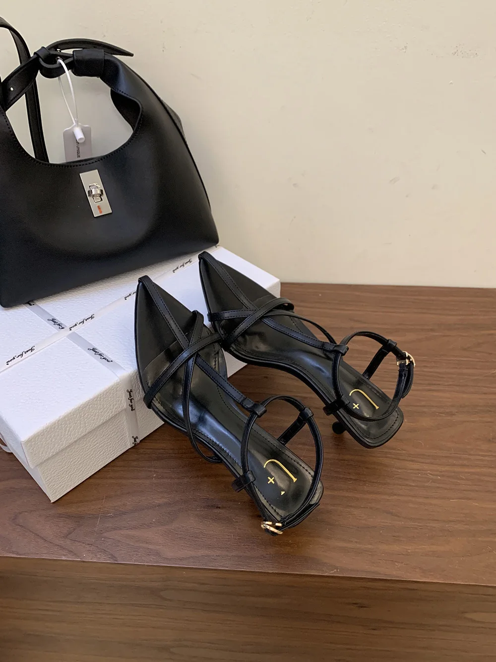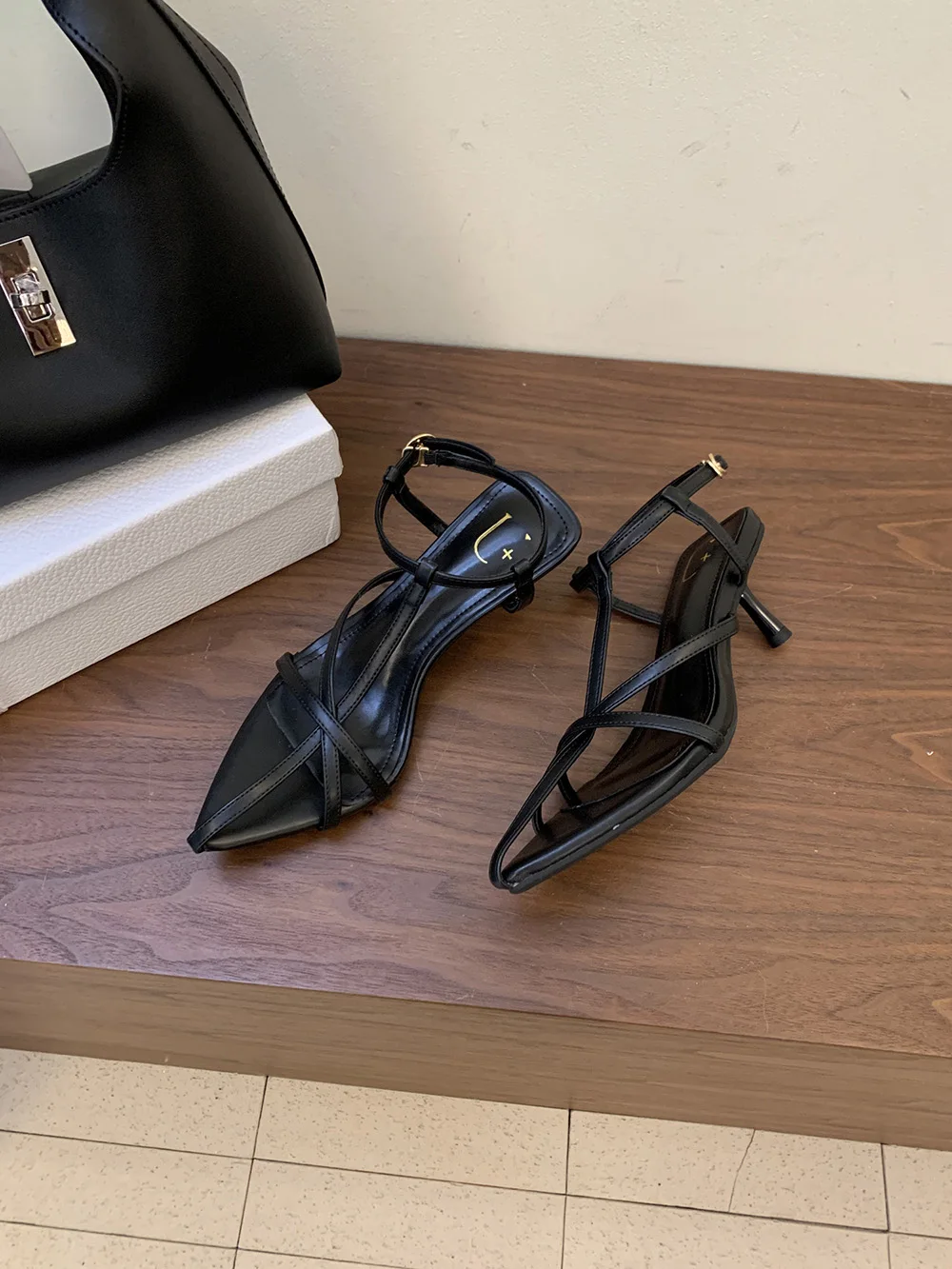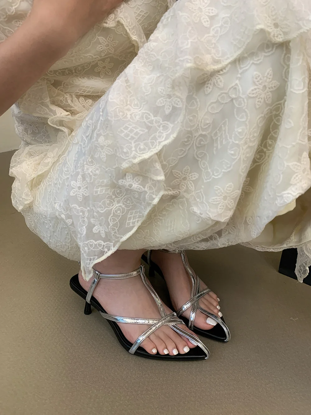 LBSFY - Pointed Toe Women Sandals Fashion Dress Party Pumps Thin High Heels Ankle Strap Black Red Silver Hollow Design Wedding Pumps
