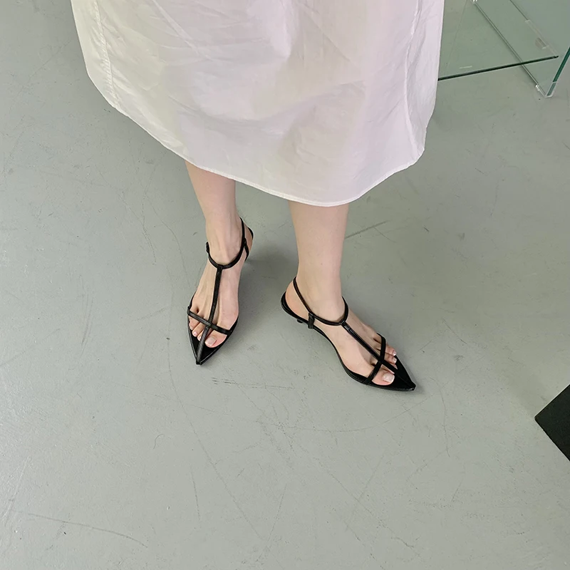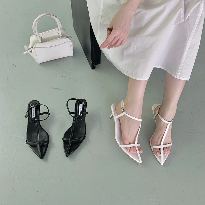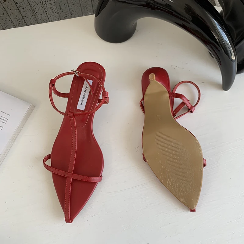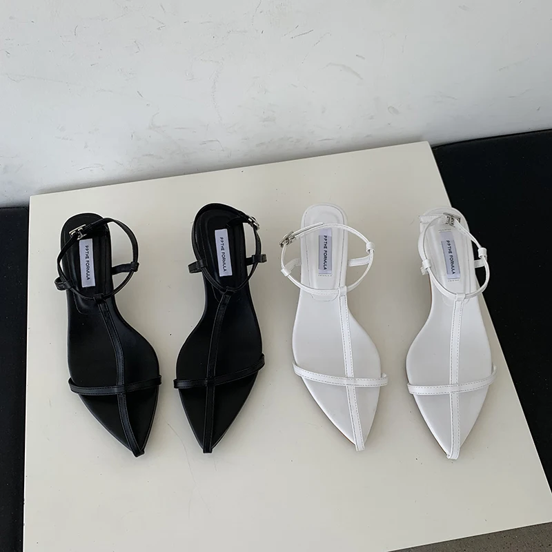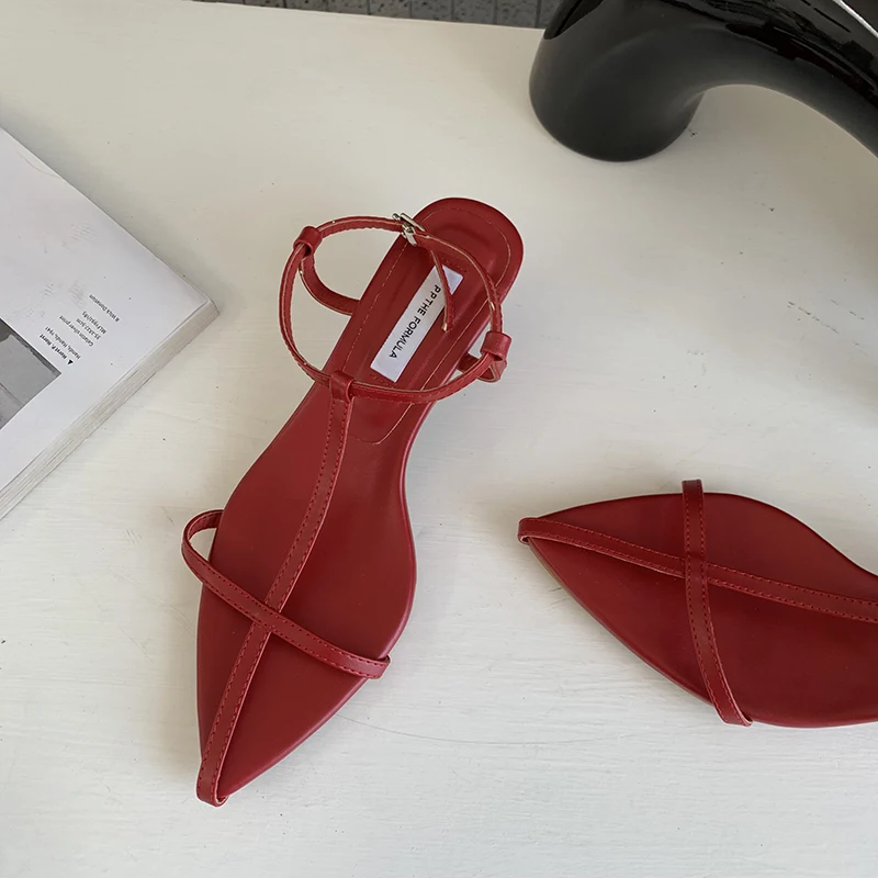 LBSFY - Pointed Toe Women Sandals Narrow Band 2022 News Summer Outside Thin Low Heels Sexy Dress Shoes Casual Party Pumps Shoes Woman