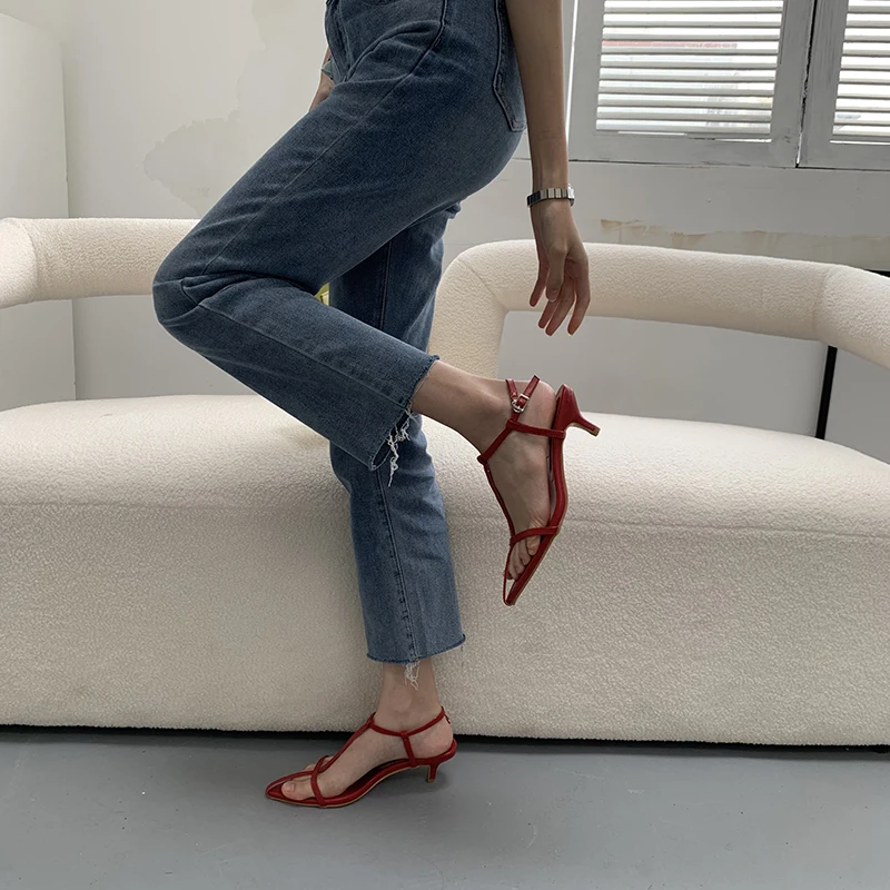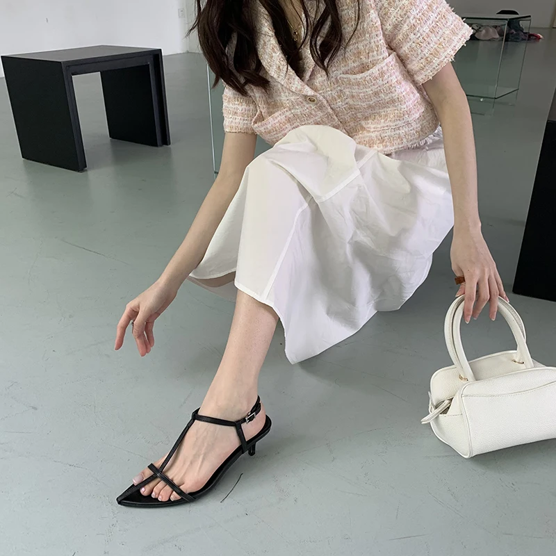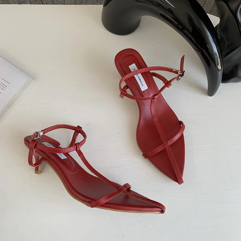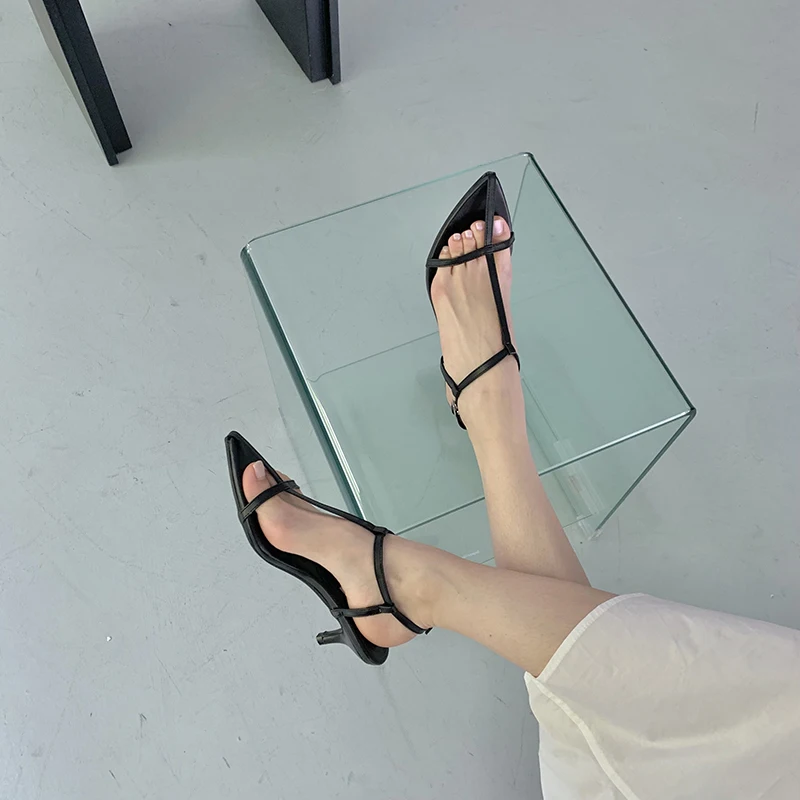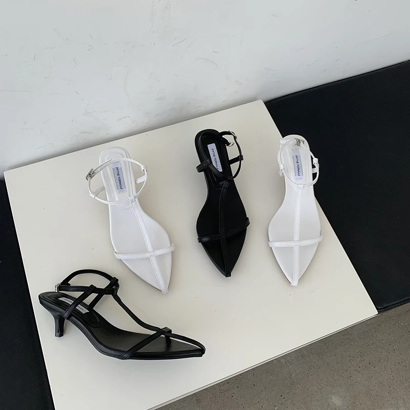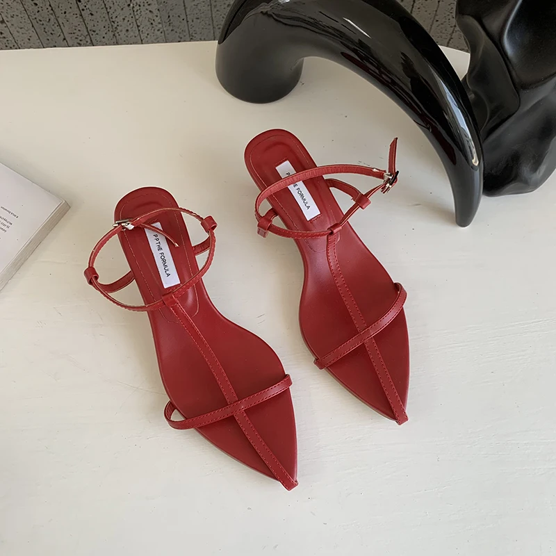 LBSFY - Pointed Toe Women Sandals Narrow Band 2022 News Summer Outside Thin Low Heels Sexy Dress Shoes Casual Party Pumps Shoes Woman