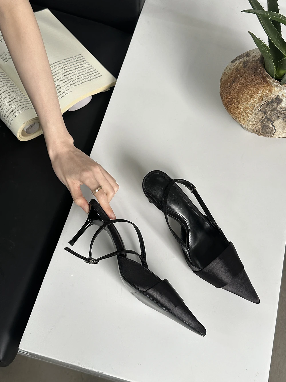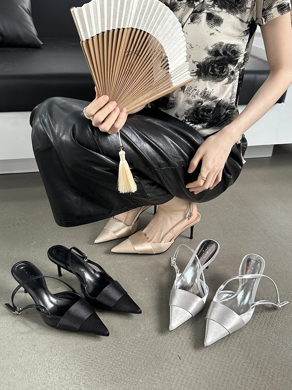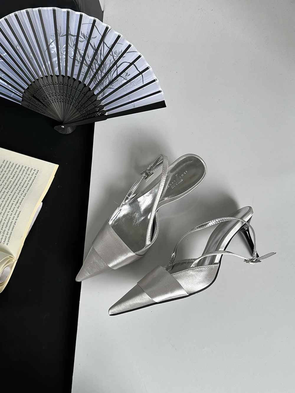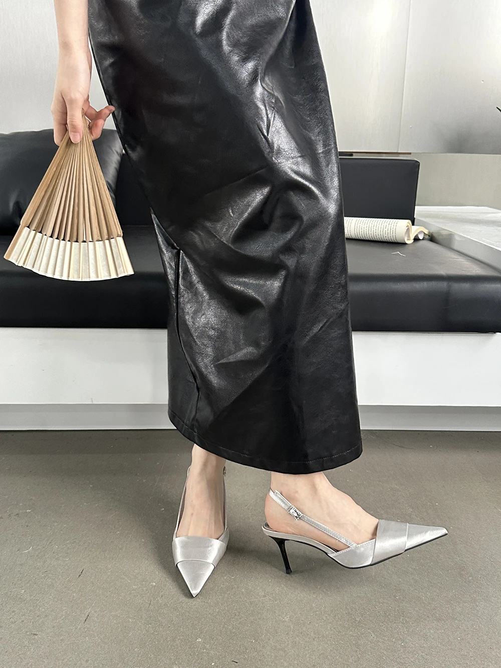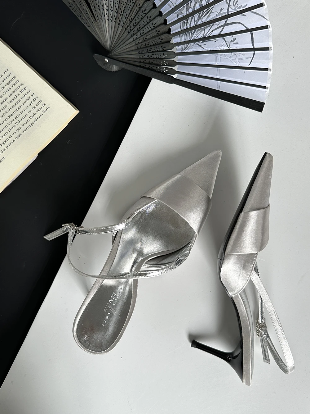 LBSFY - Pointed Toe Women Sandals Silk Summer Dress Shoes Gladiator Party Pumps Thin High Heels Silver Black Pink Sexy Mules Back Strap