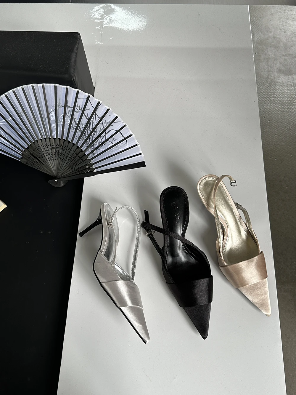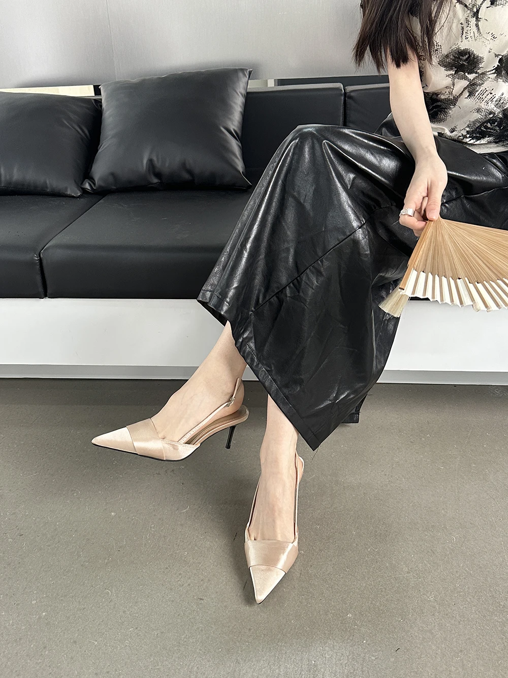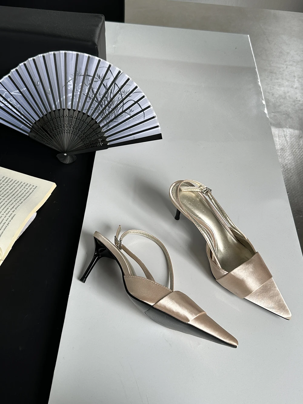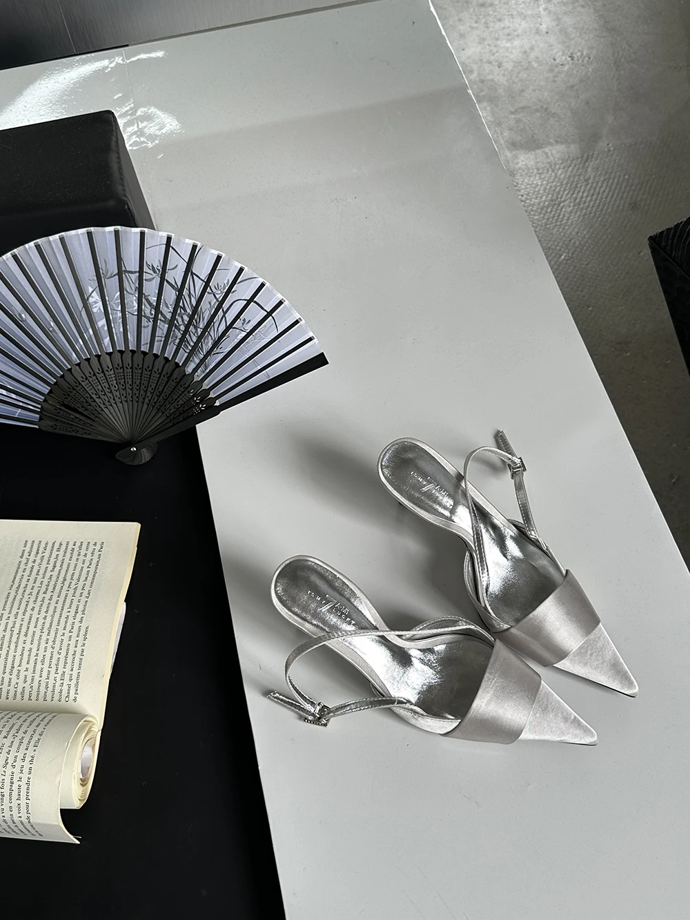 LBSFY - Pointed Toe Women Sandals Silk Summer Dress Shoes Gladiator Party Pumps Thin High Heels Silver Black Pink Sexy Mules Back Strap