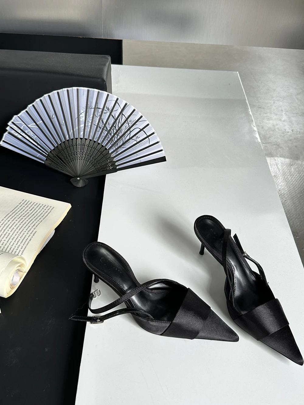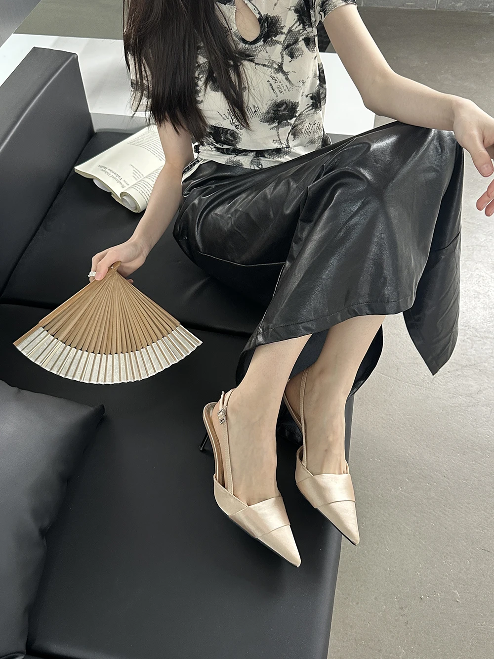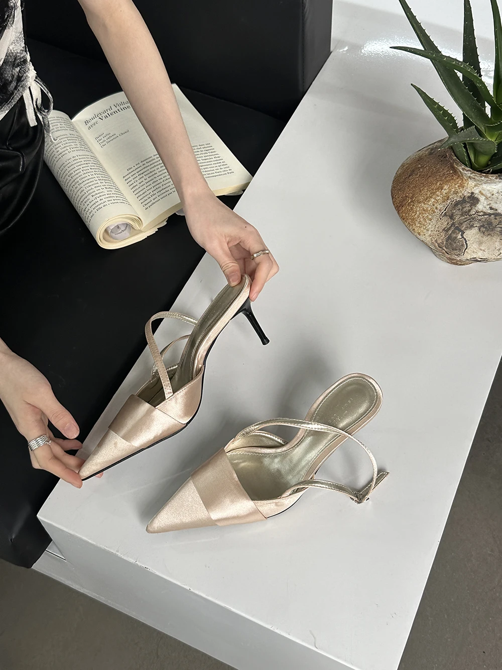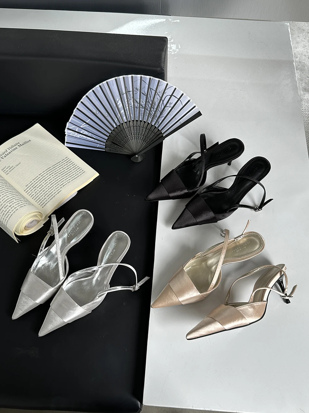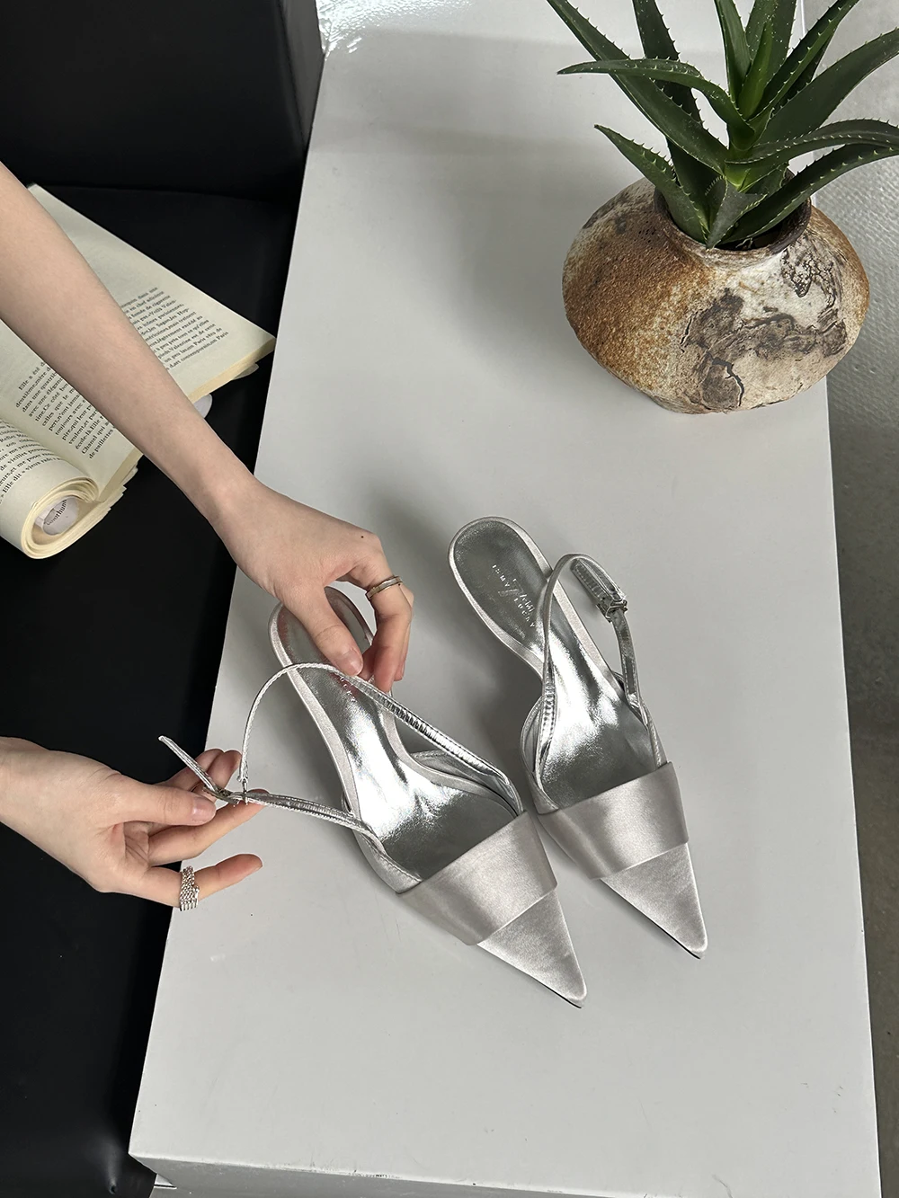 LBSFY - Pointed Toe Women Sandals Silk Summer Dress Shoes Gladiator Party Pumps Thin High Heels Silver Black Pink Sexy Mules Back Strap