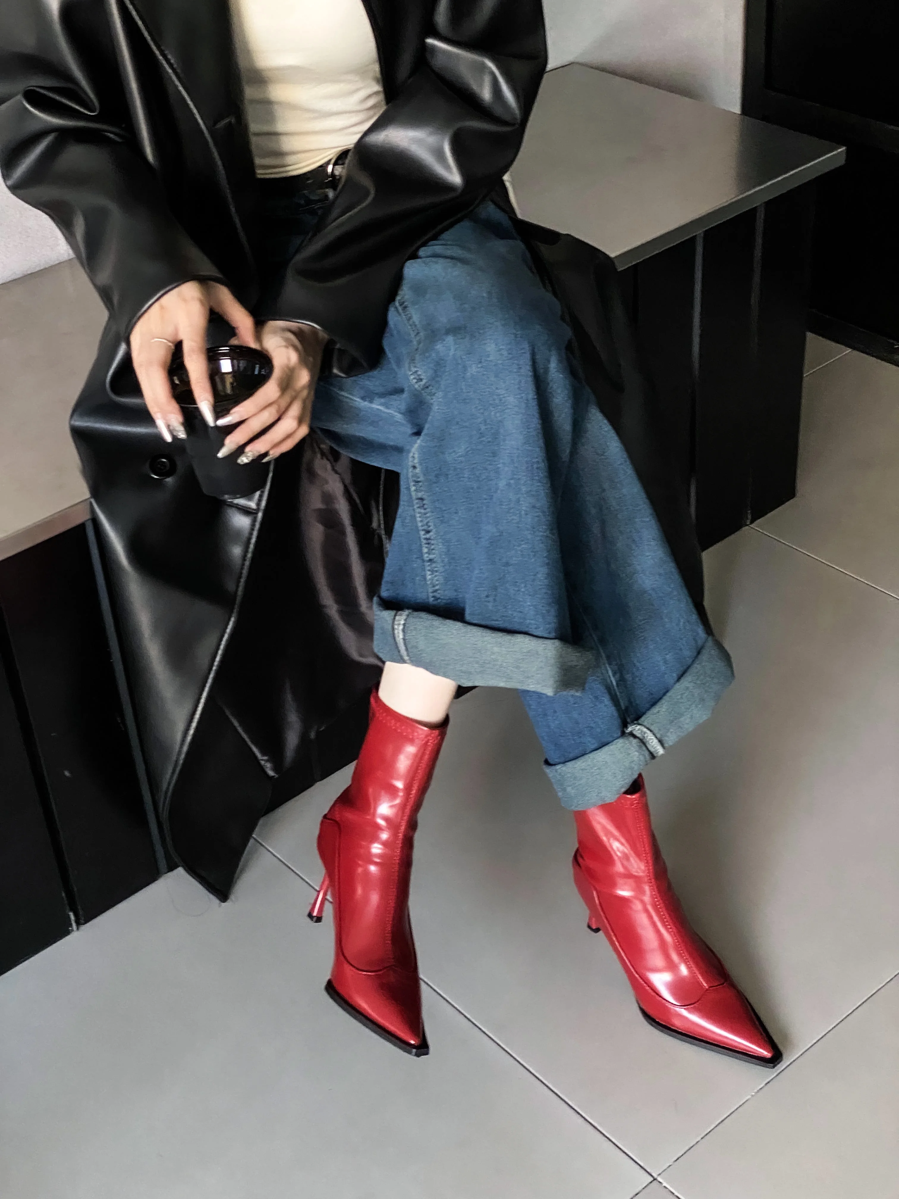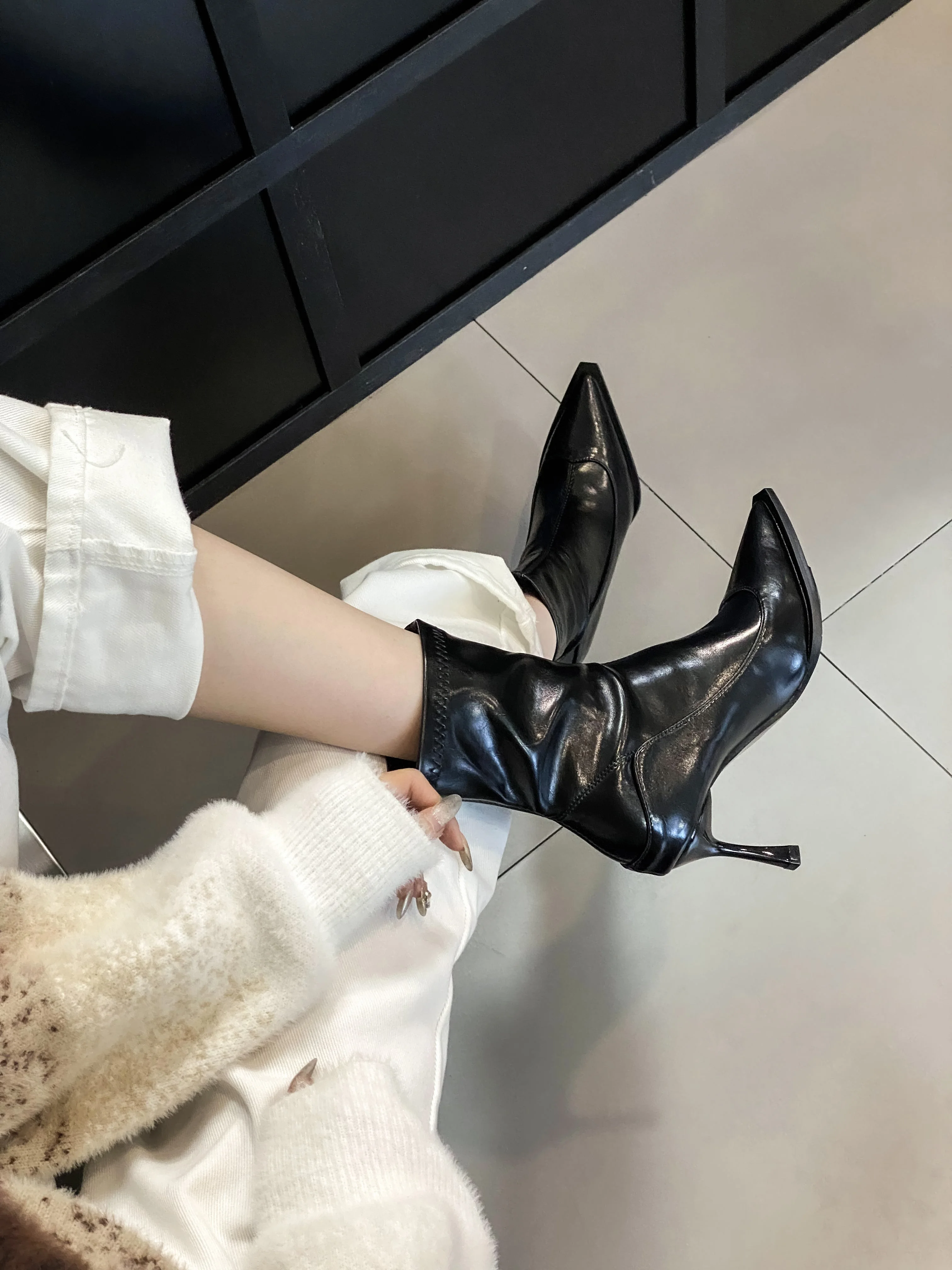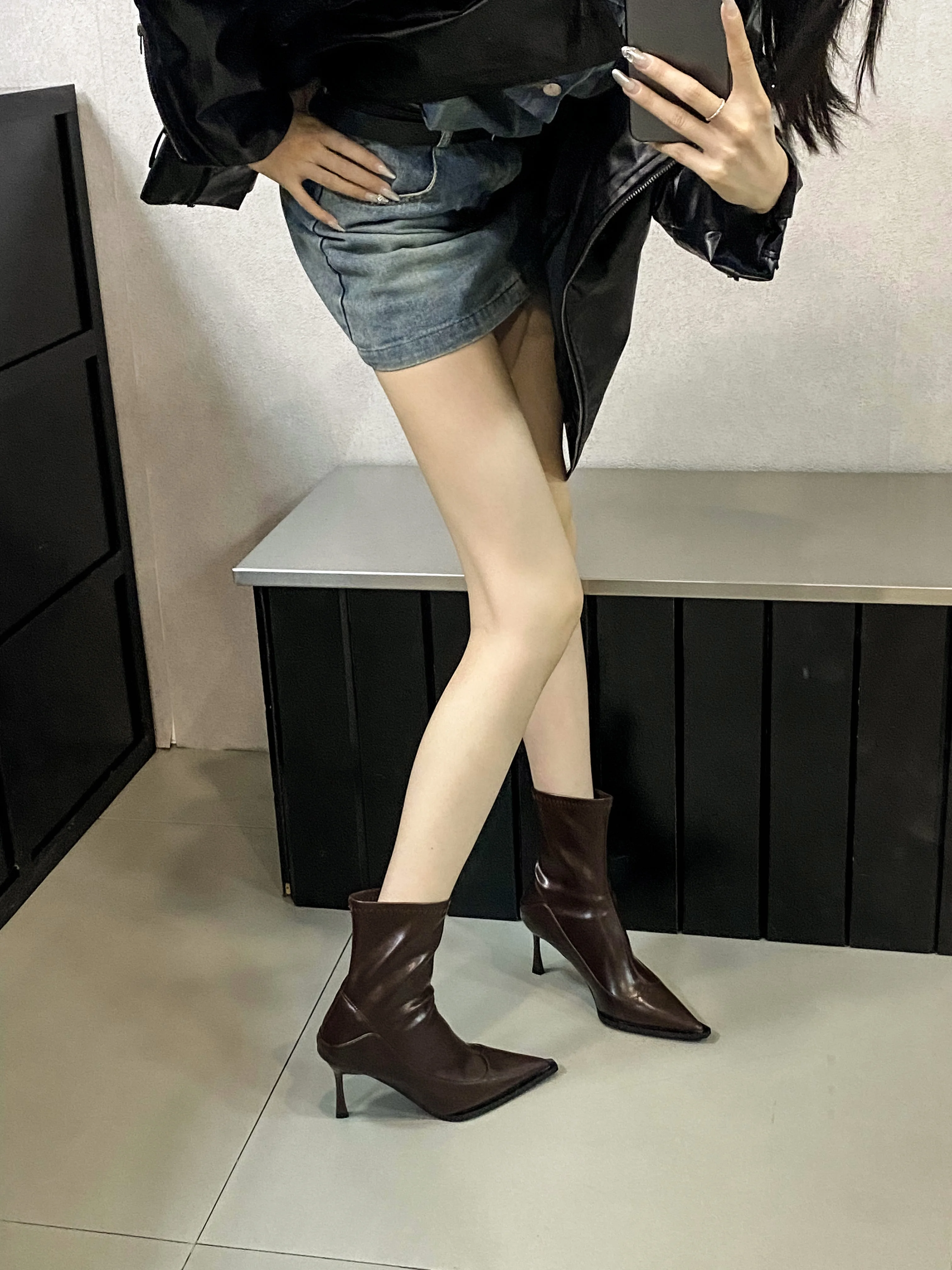 LBSFY  -   Pointed Toe Women Short Boots Fashion Zippers Slim Ankle Booties Thick High Heel Autumn Winter Ladies Shoes Mujer