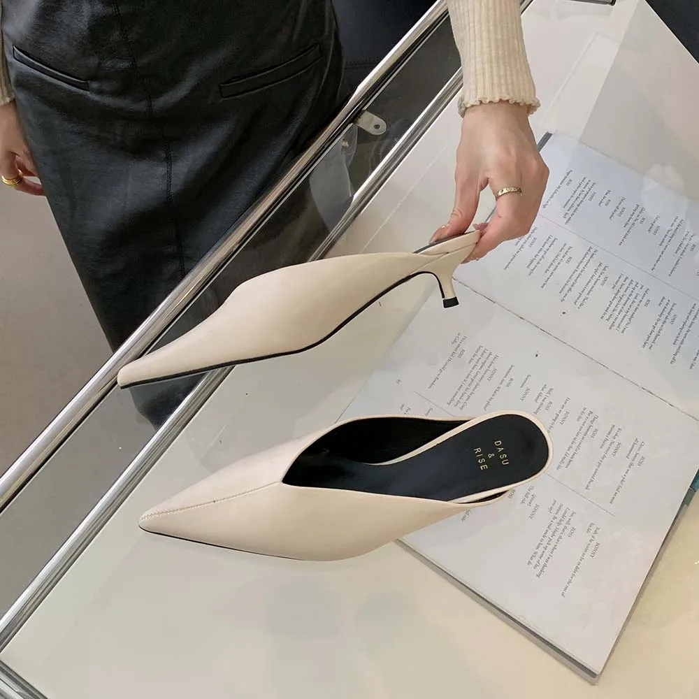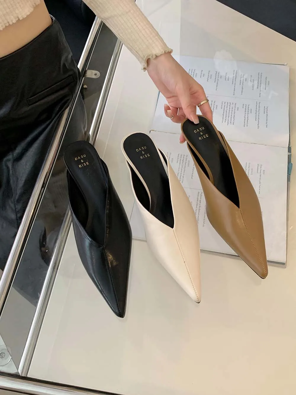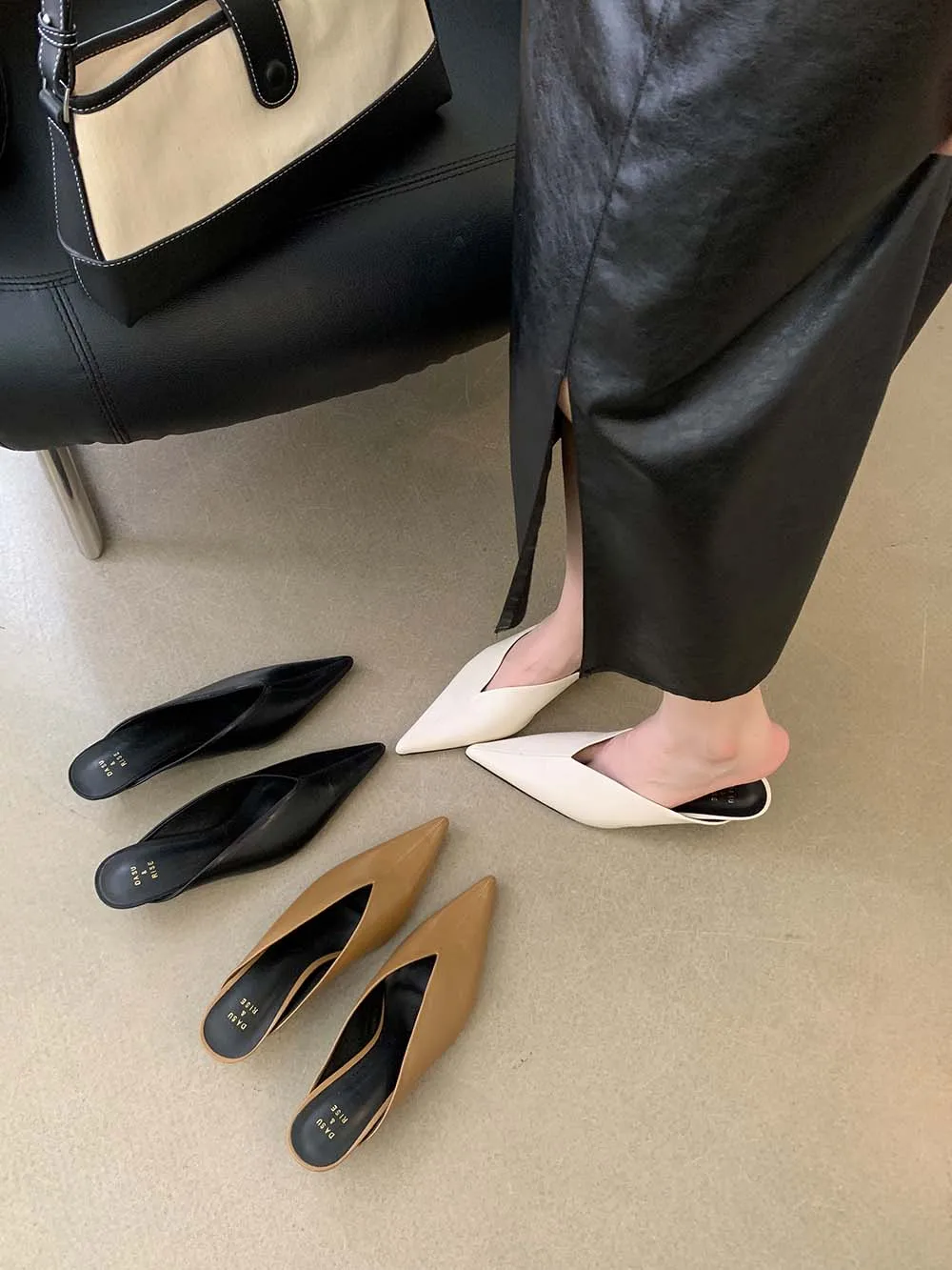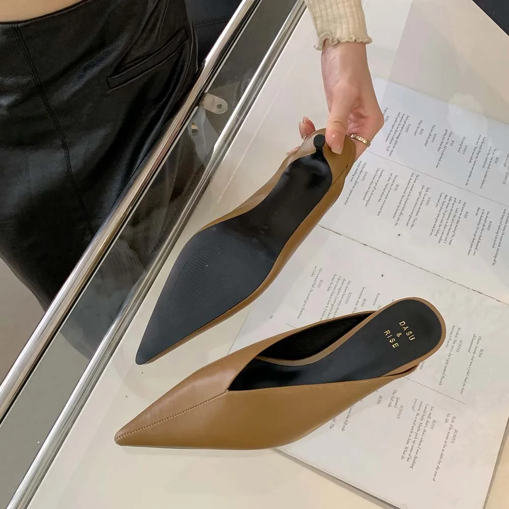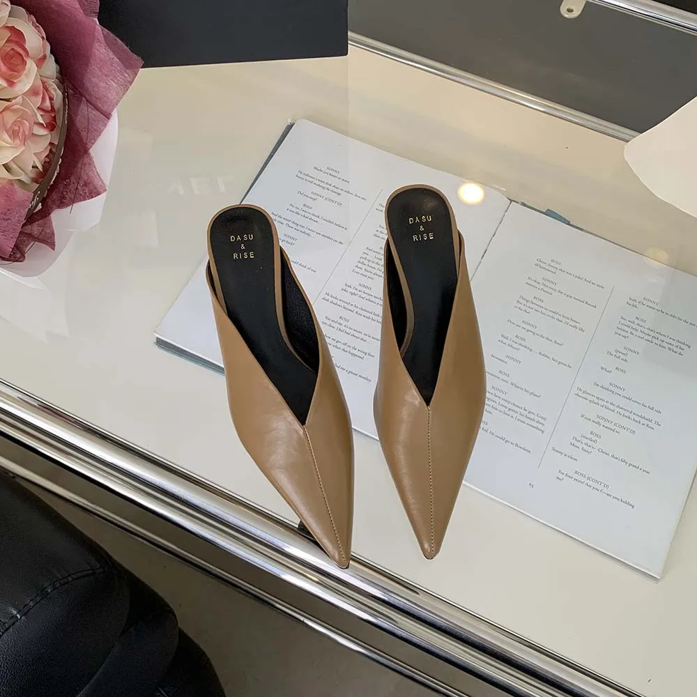 LBSFY - Pointed Toe Women Slides Slippers 2024 New Arrivals Fashion Outside Dress Shoes Thin Low Heels Beige Brown Black Party Pumps 39