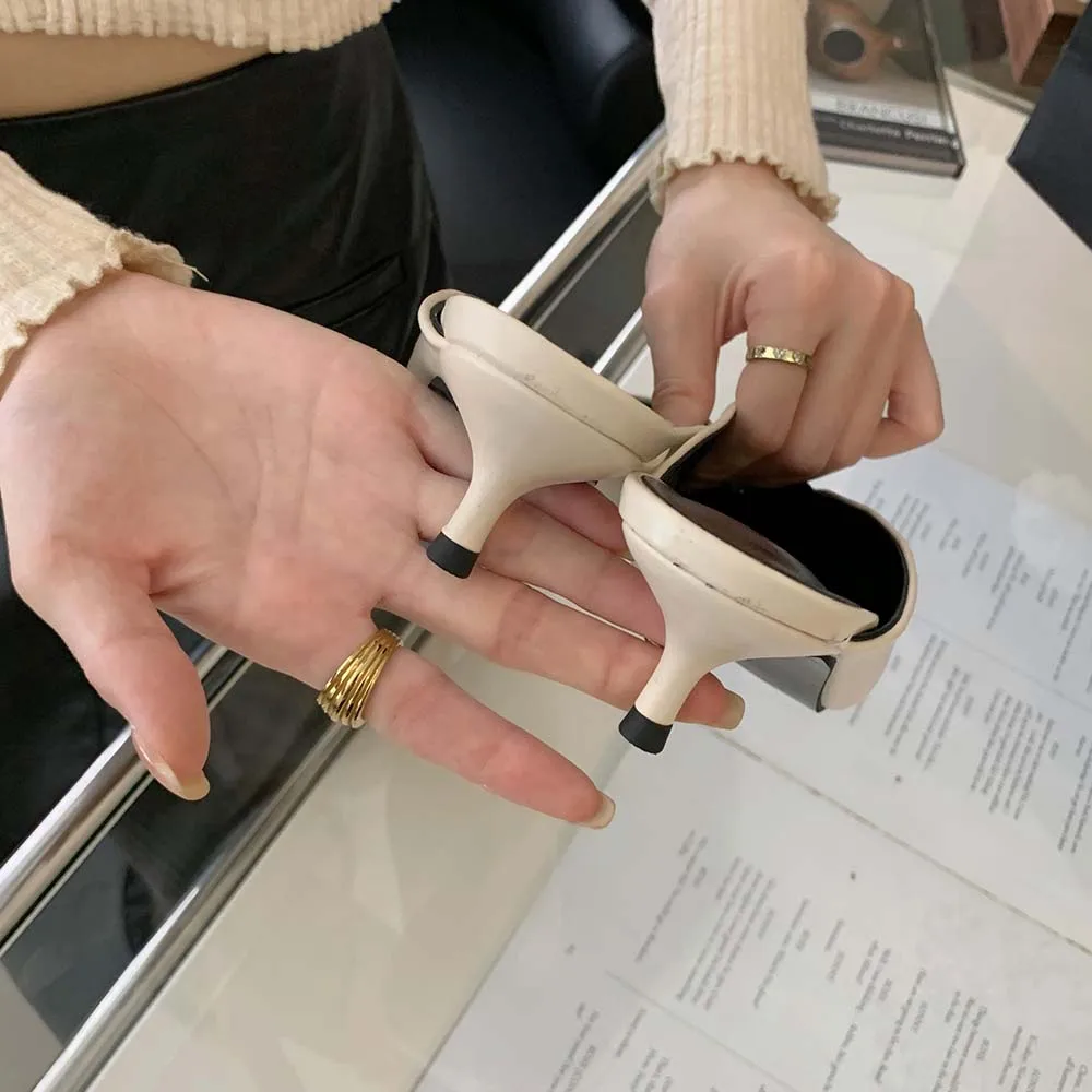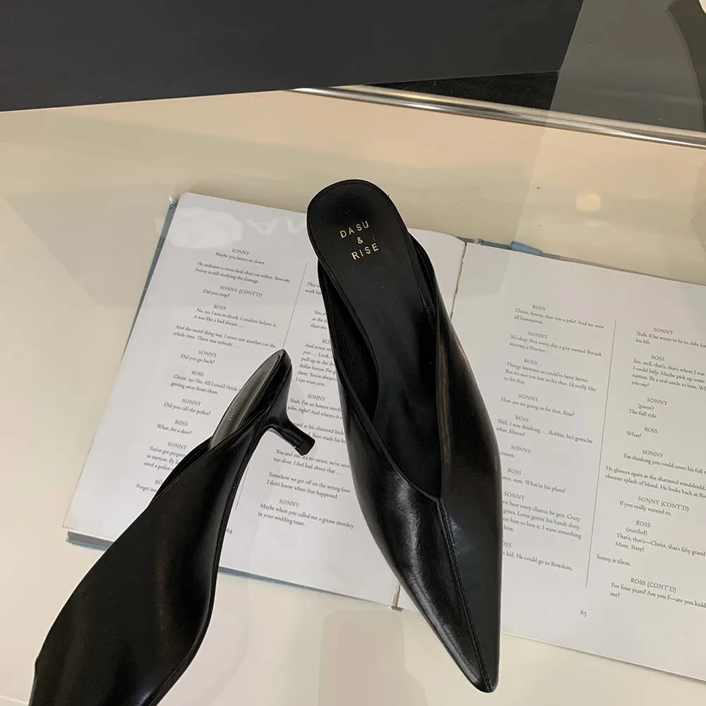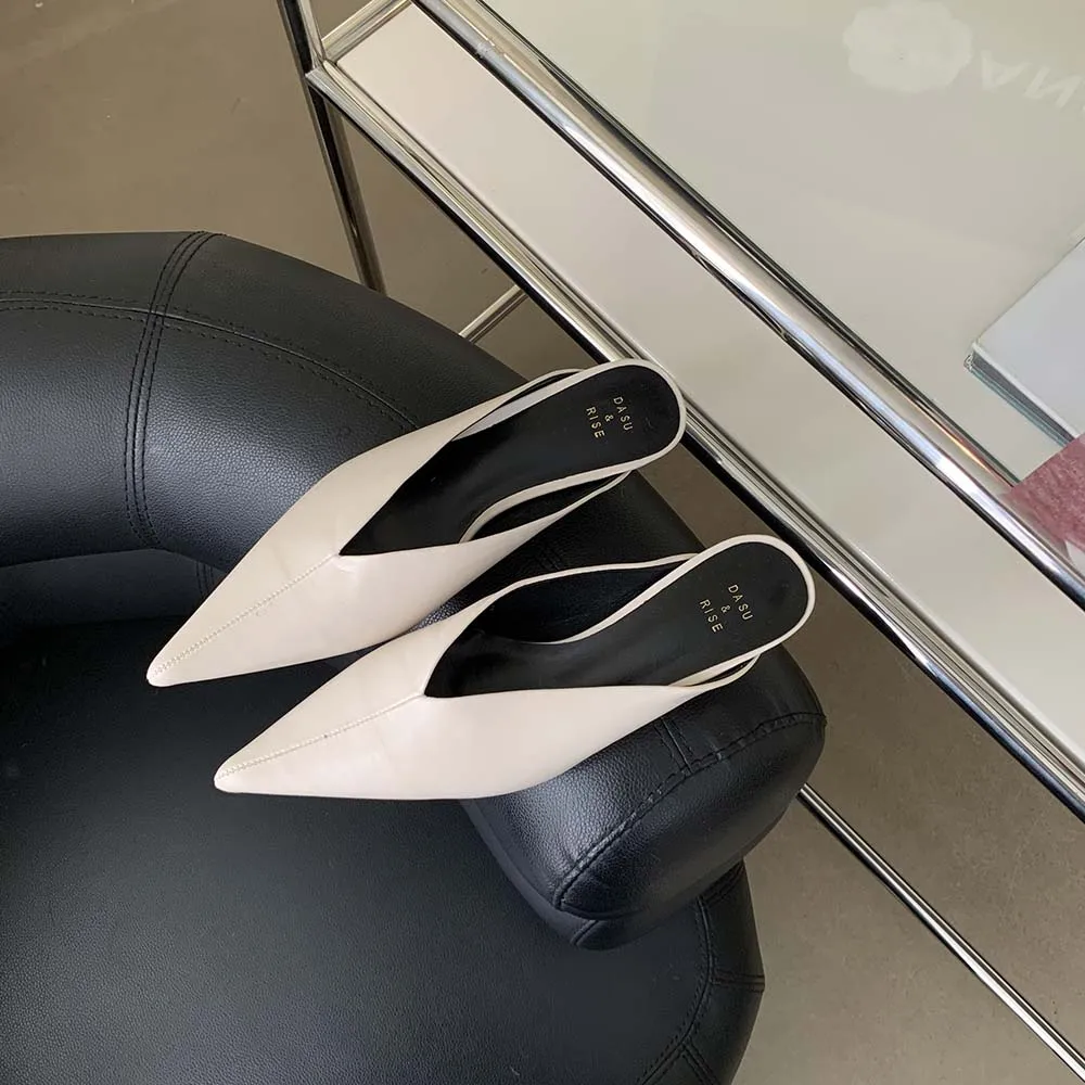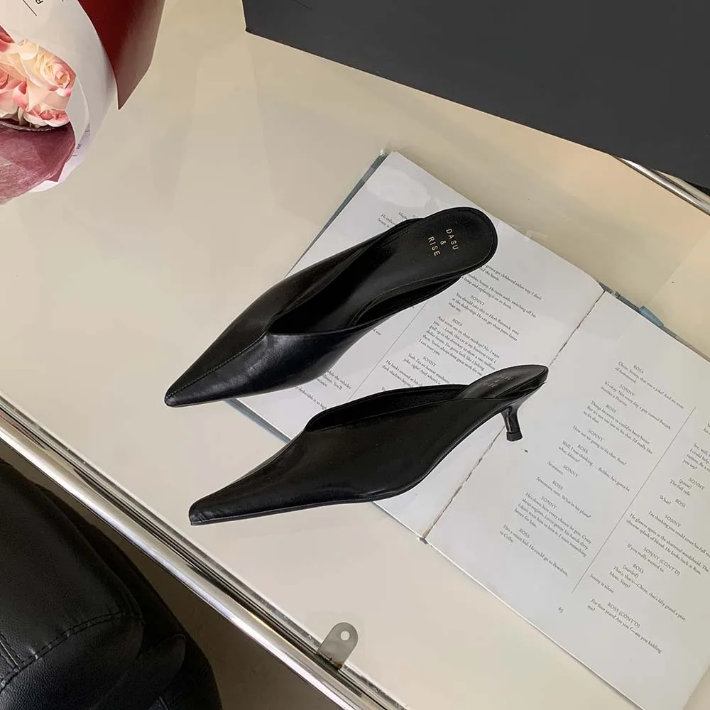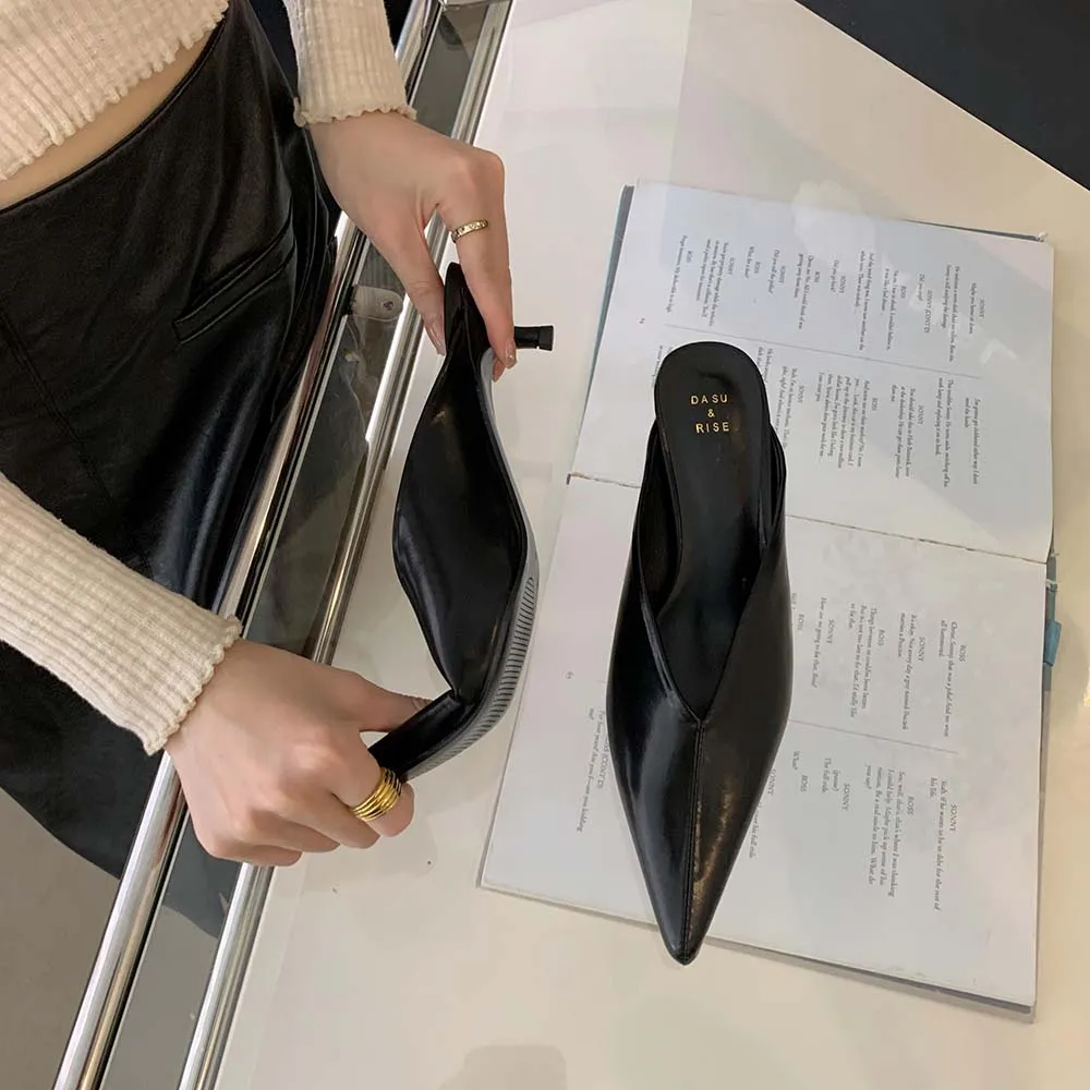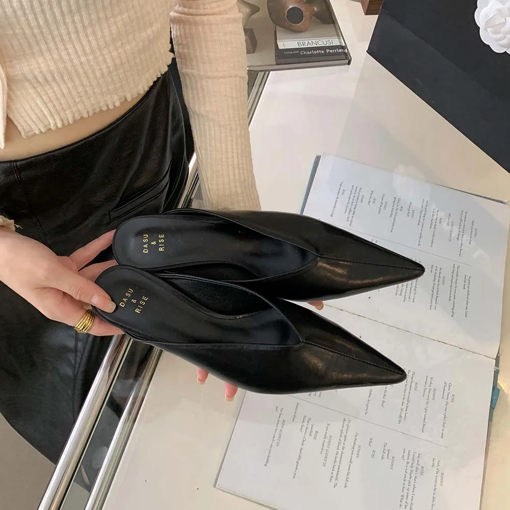 LBSFY - Pointed Toe Women Slides Slippers 2024 New Arrivals Fashion Outside Dress Shoes Thin Low Heels Beige Brown Black Party Pumps 39