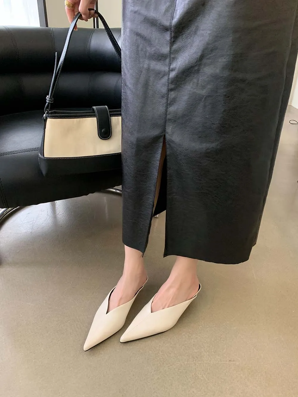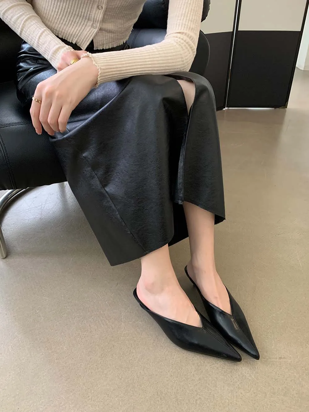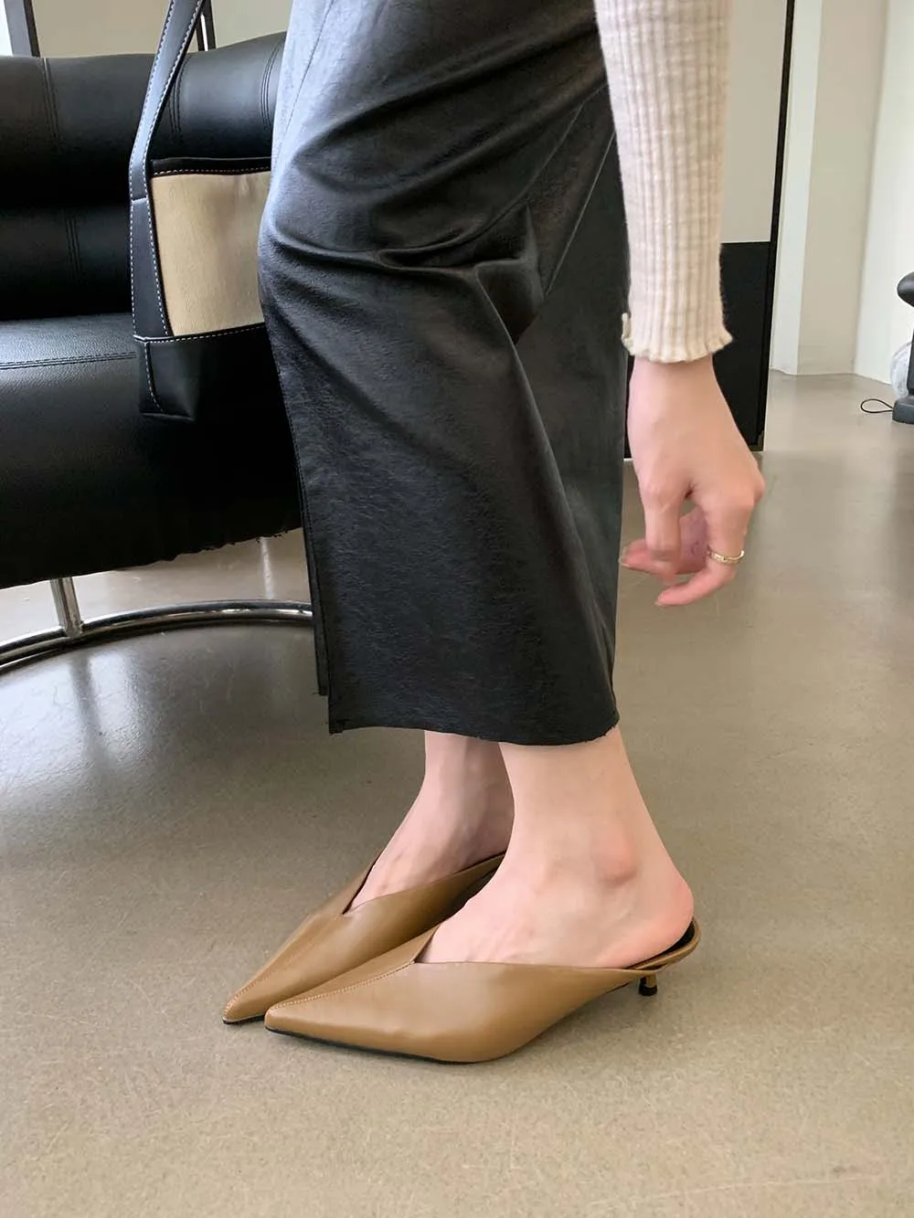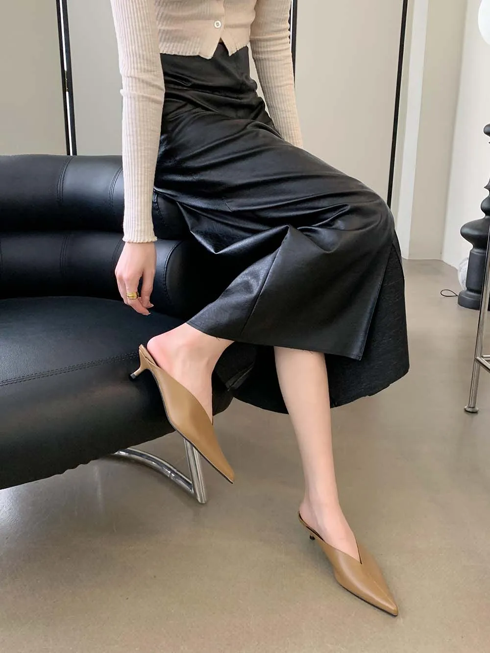 LBSFY - Pointed Toe Women Slides Slippers 2024 New Arrivals Fashion Outside Dress Shoes Thin Low Heels Beige Brown Black Party Pumps 39