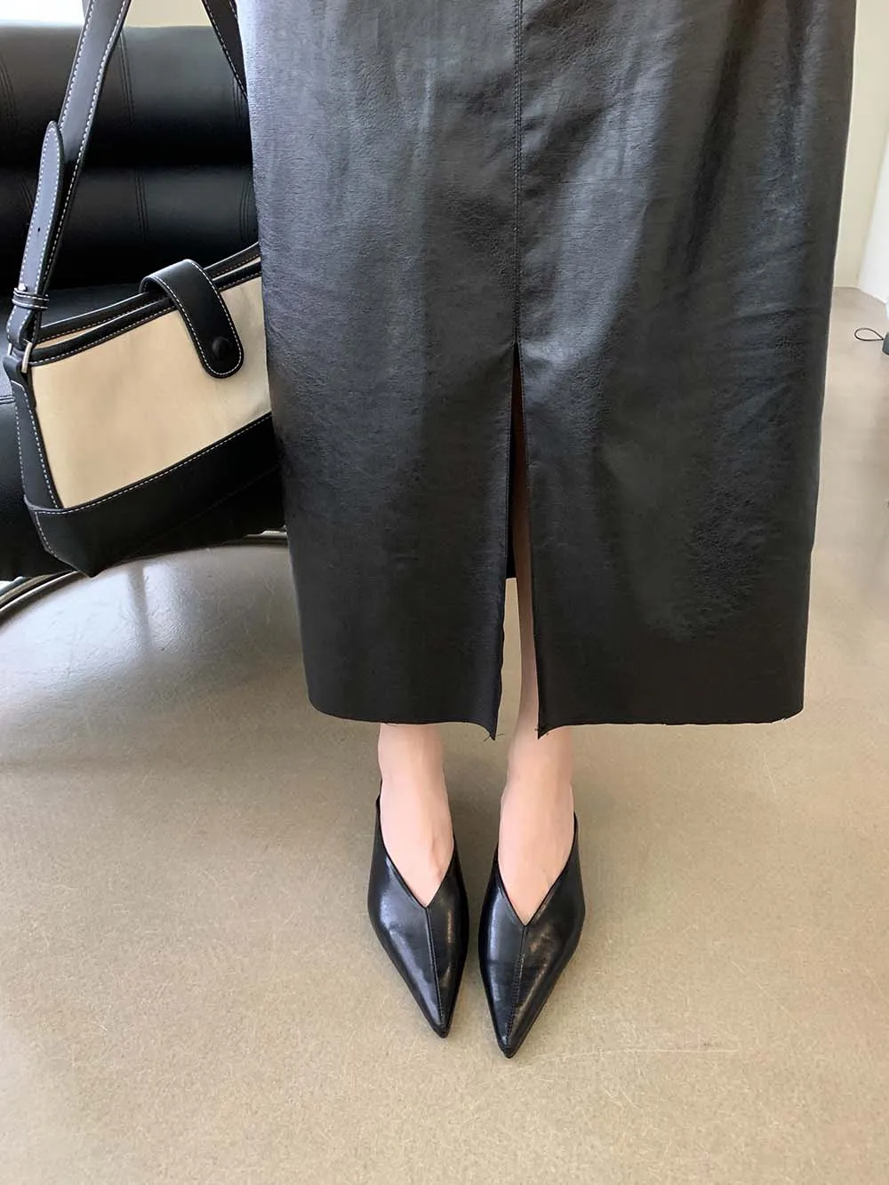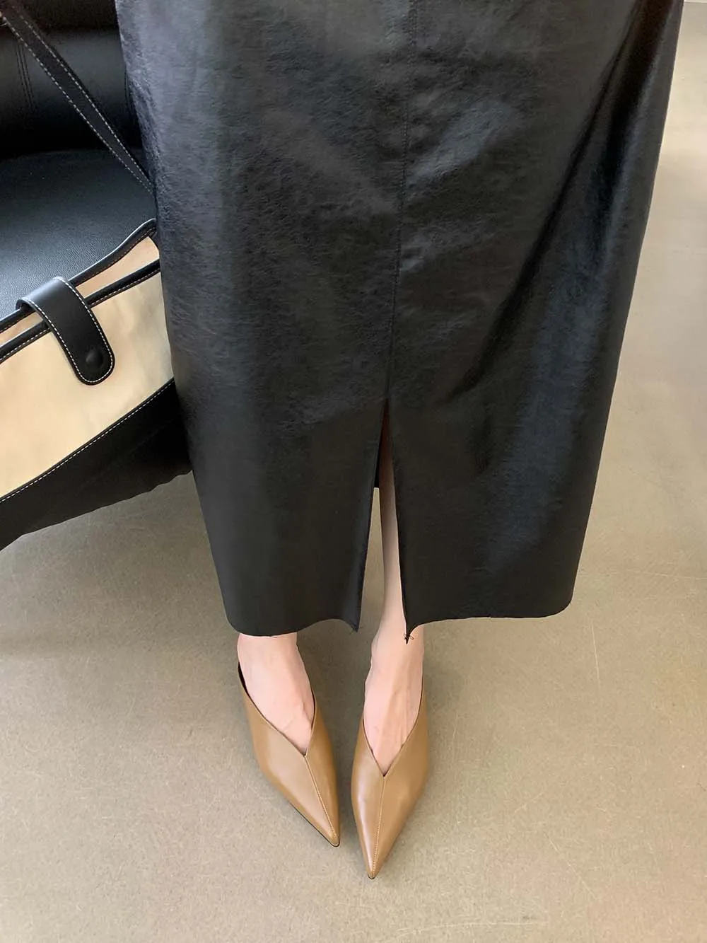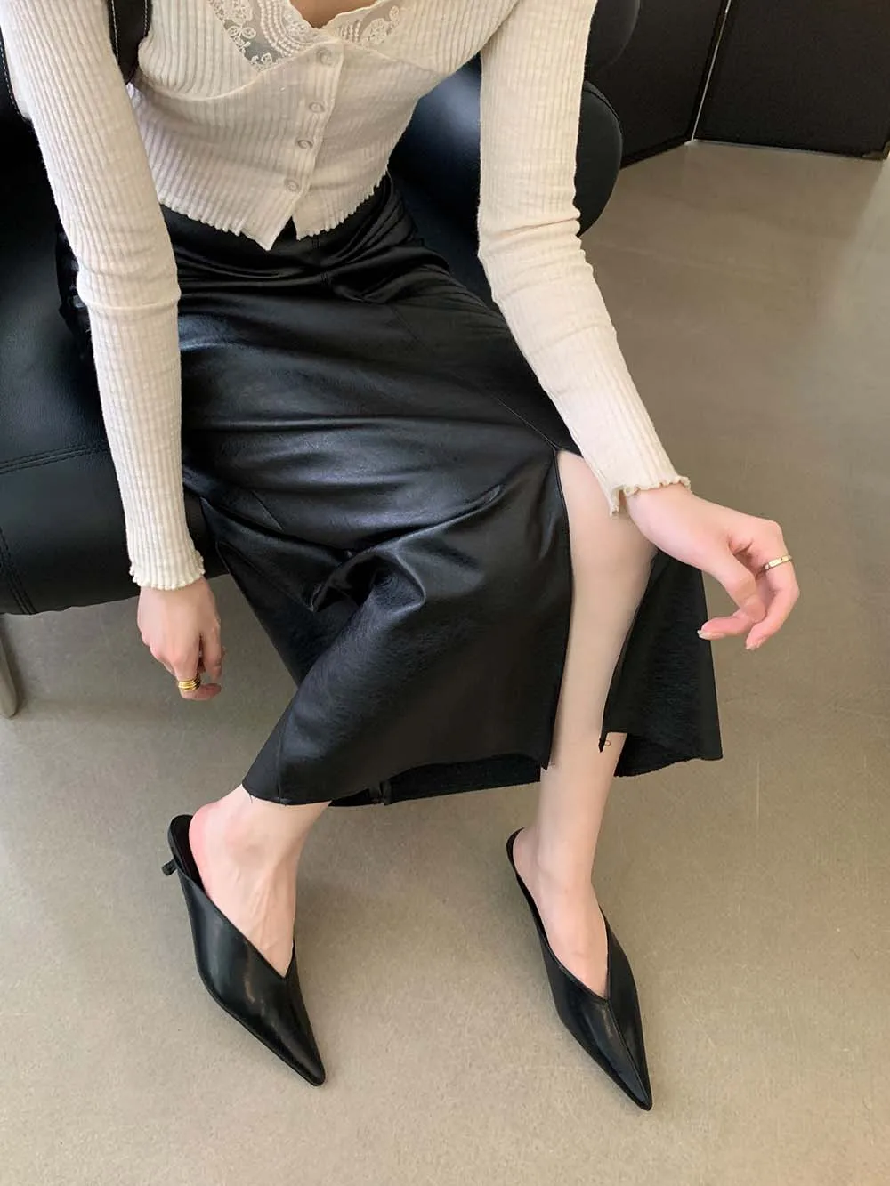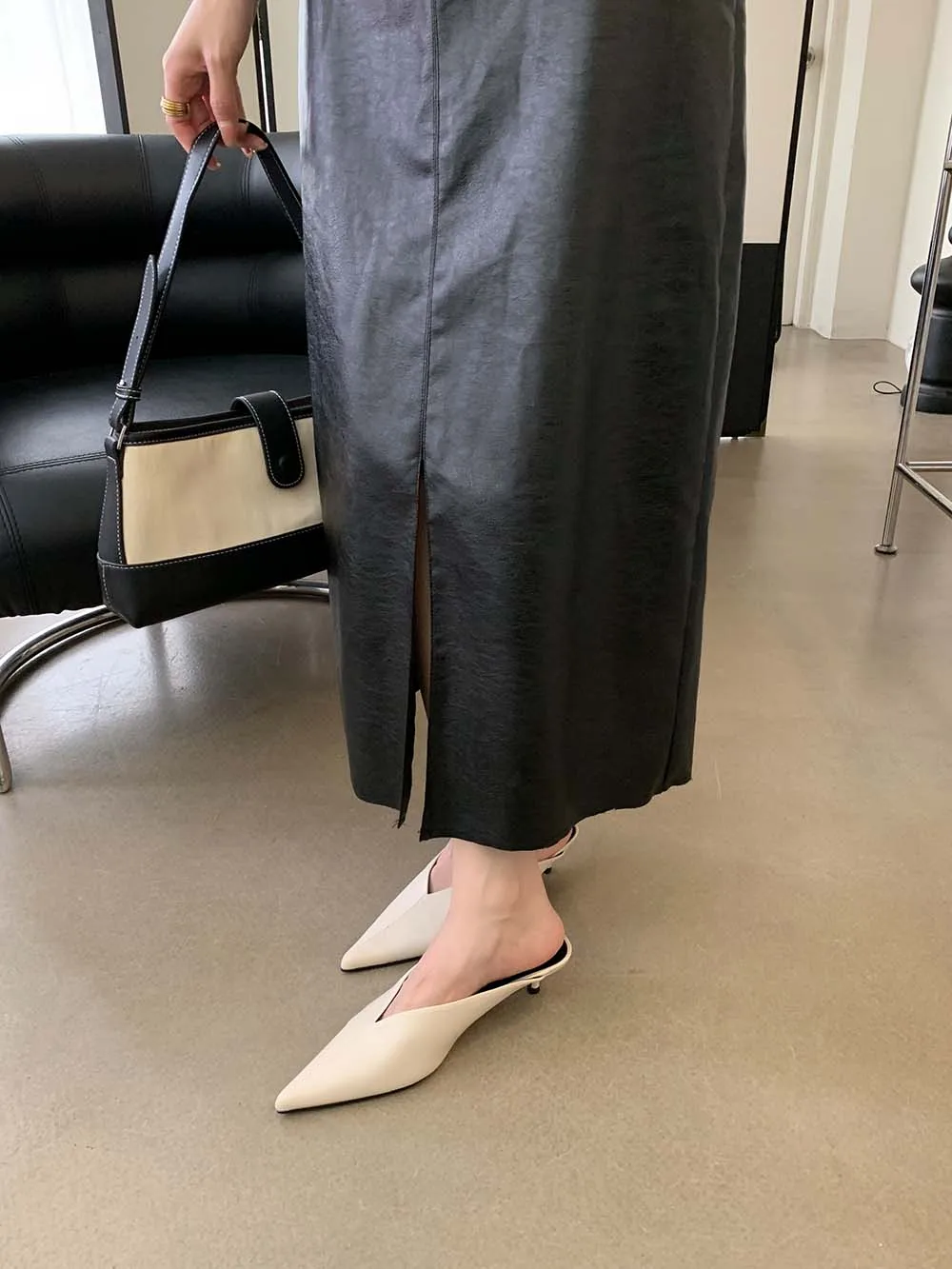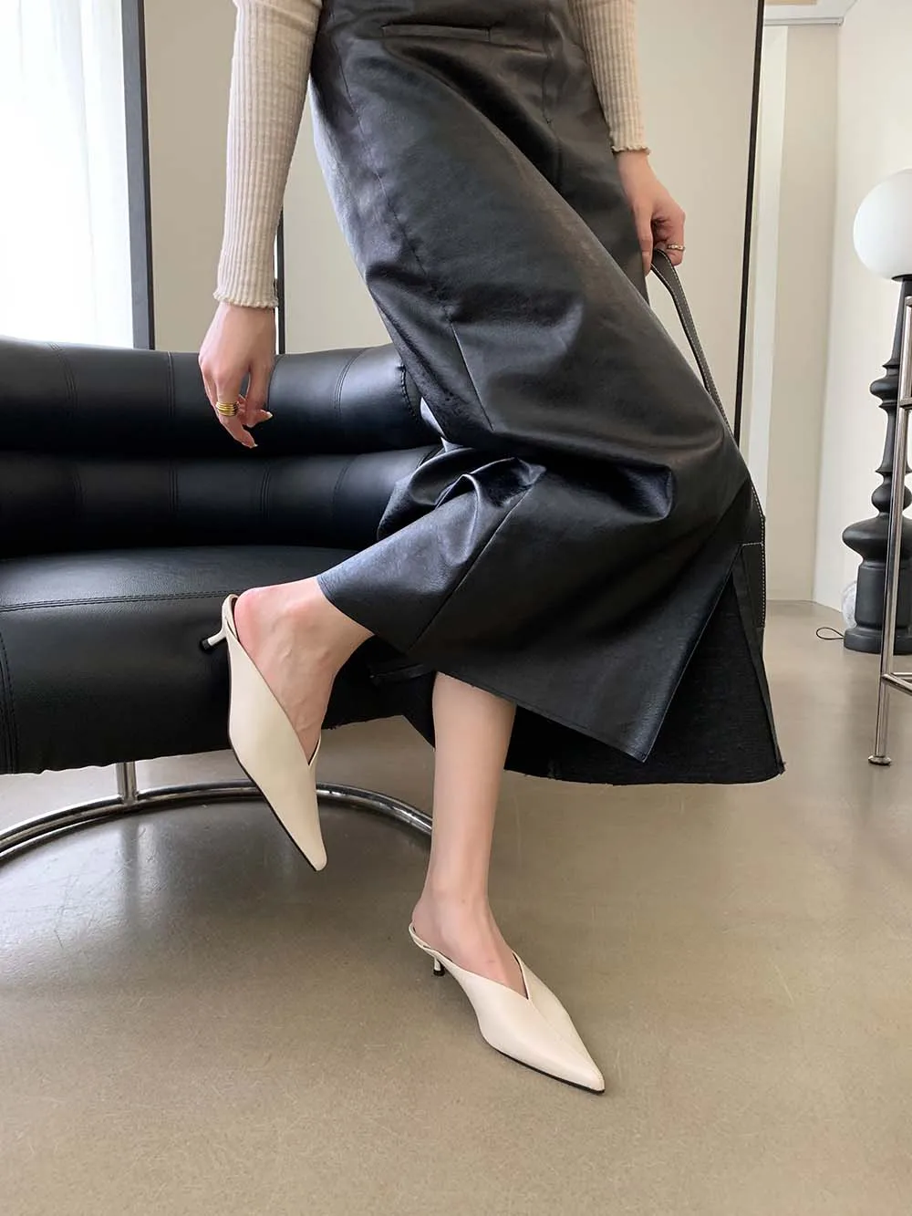 LBSFY - Pointed Toe Women Slides Slippers 2024 New Arrivals Fashion Outside Dress Shoes Thin Low Heels Beige Brown Black Party Pumps 39