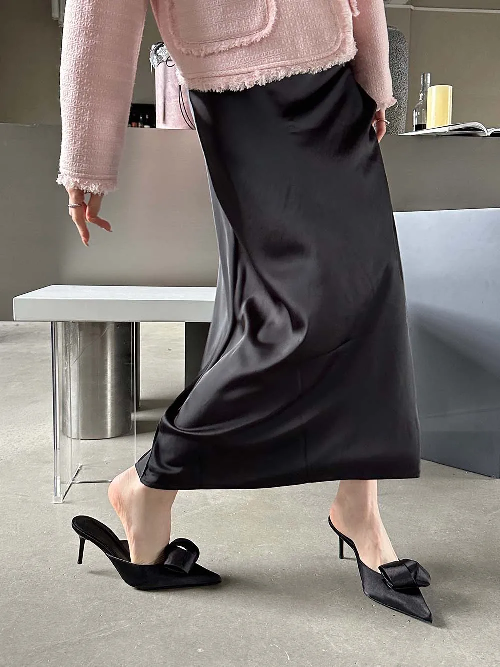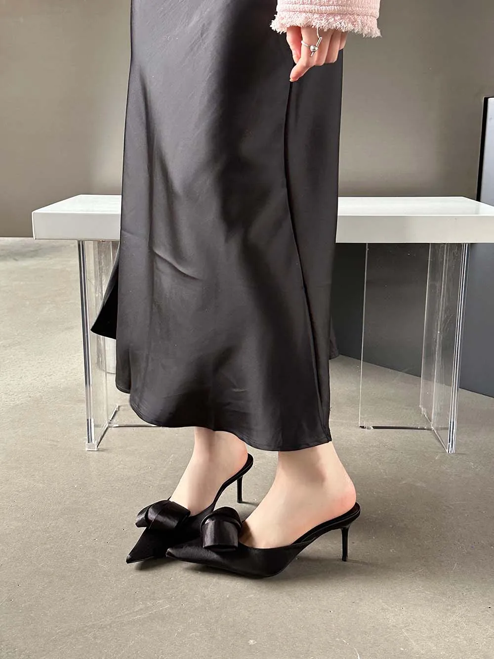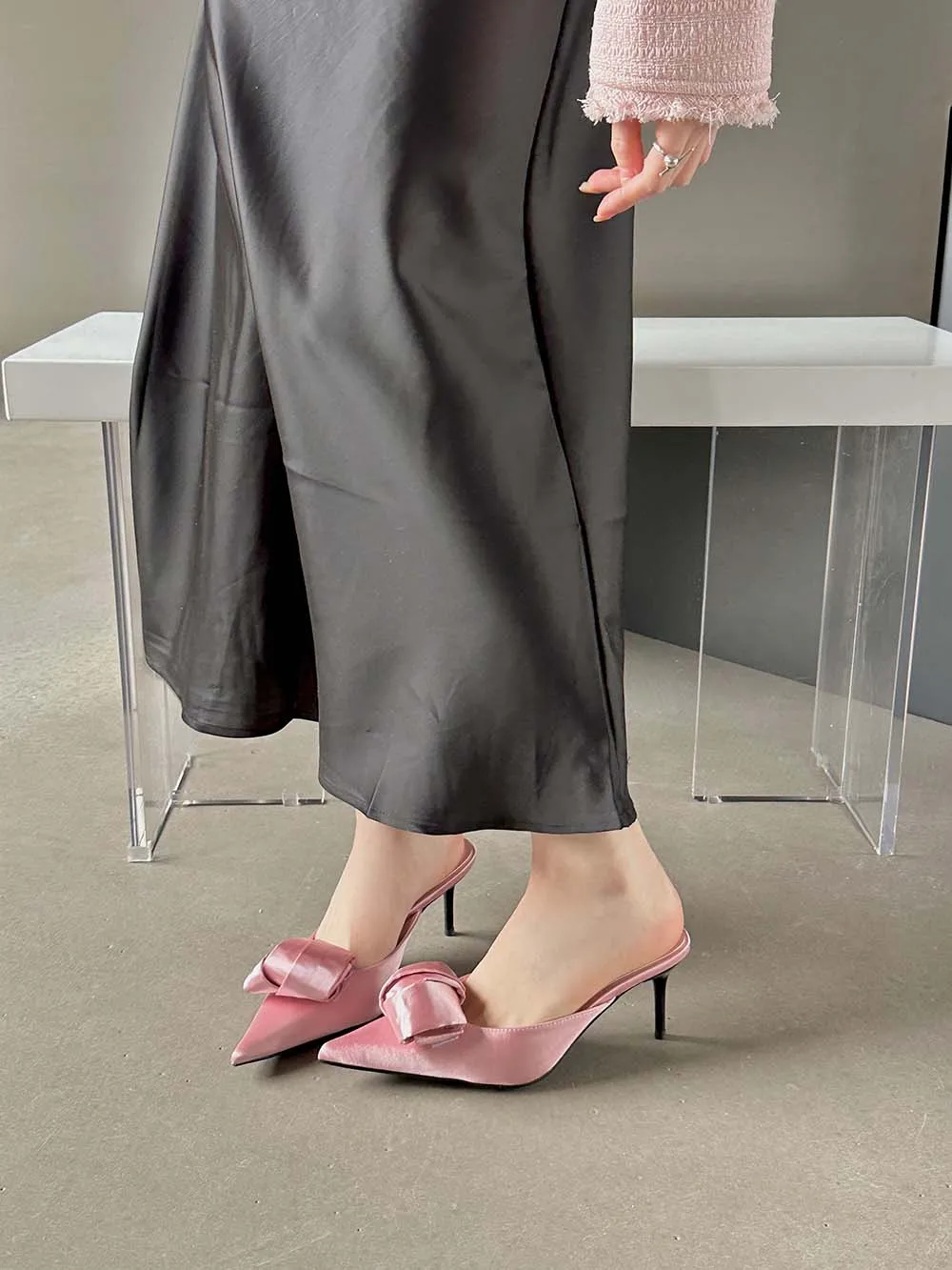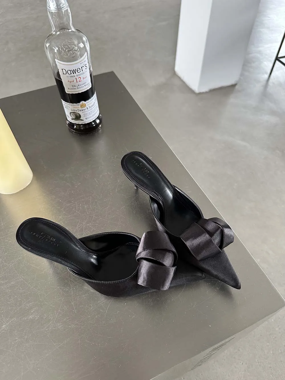 LBSFY - Pointed Toe Women Slides Slippers 2024 New Arrivals Fashion Shallow Slip On Party Pumps Stiletto Heels Bow Design Outside Mules