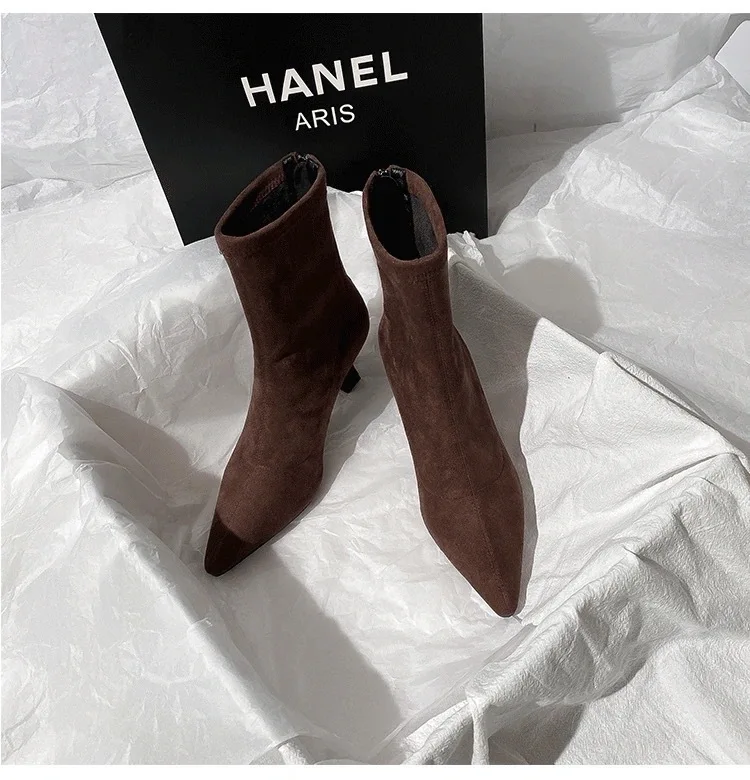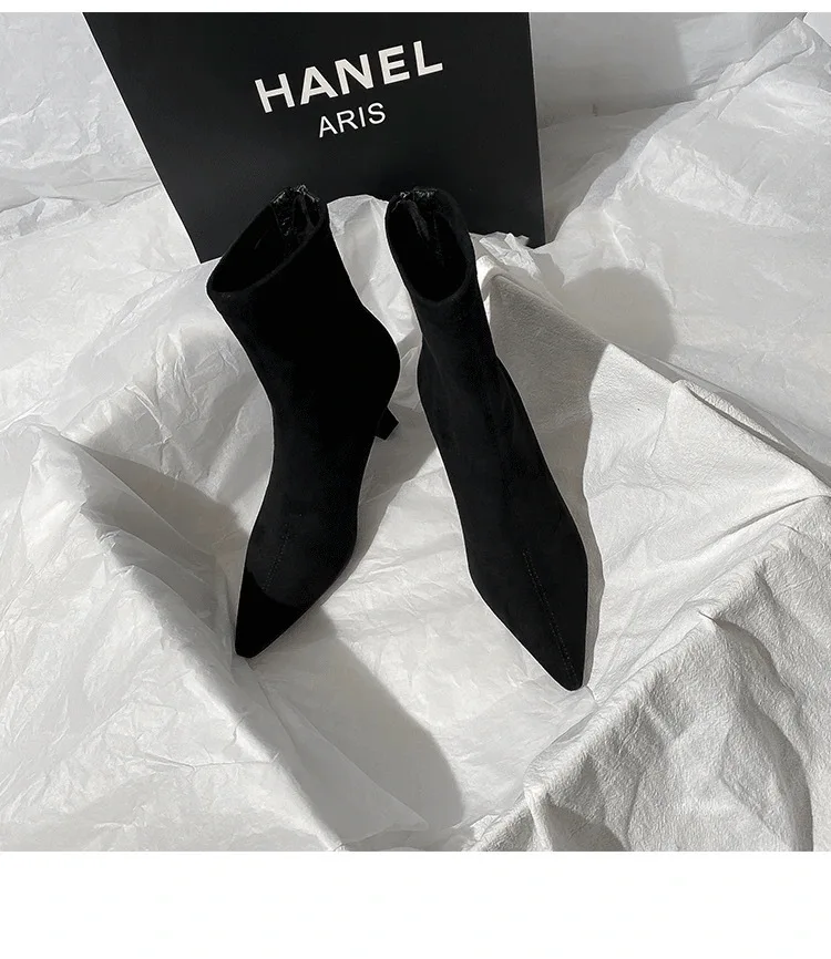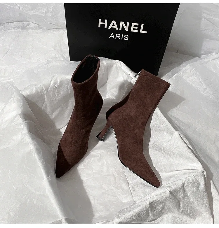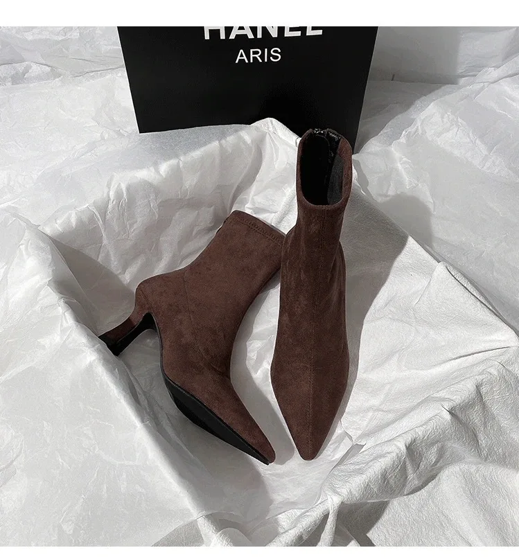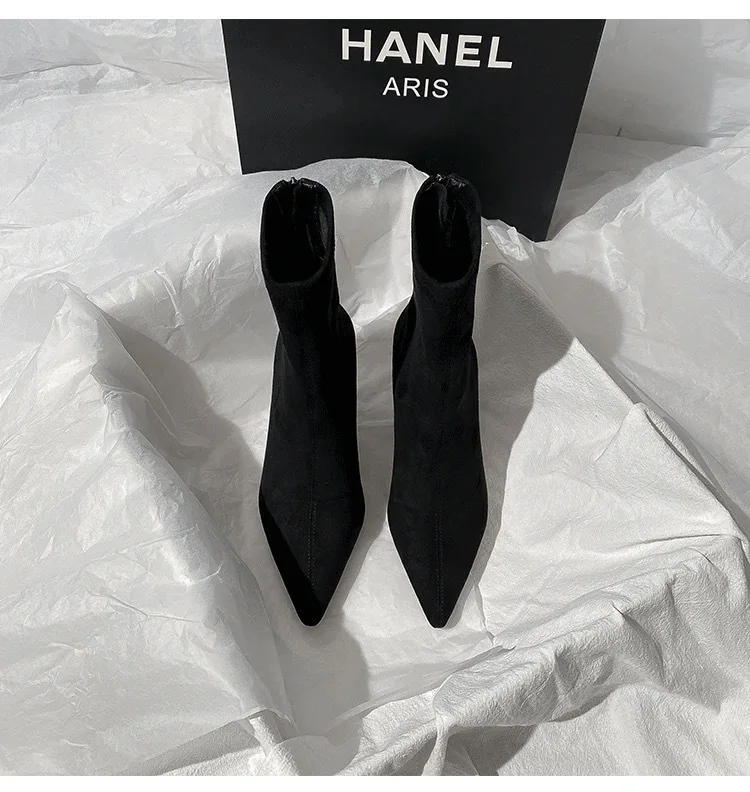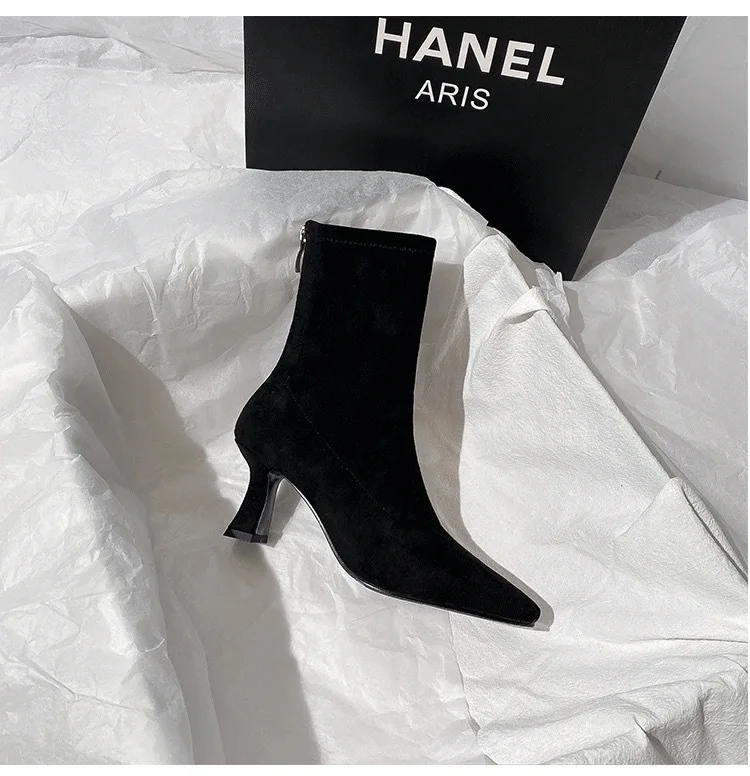 LBSFY - Pointed Toe Women Sock Short Boots Fashion Side Zipper Ankle Booties Thick High Heel Autumn Winter Ladies Shoes Botas Femininas