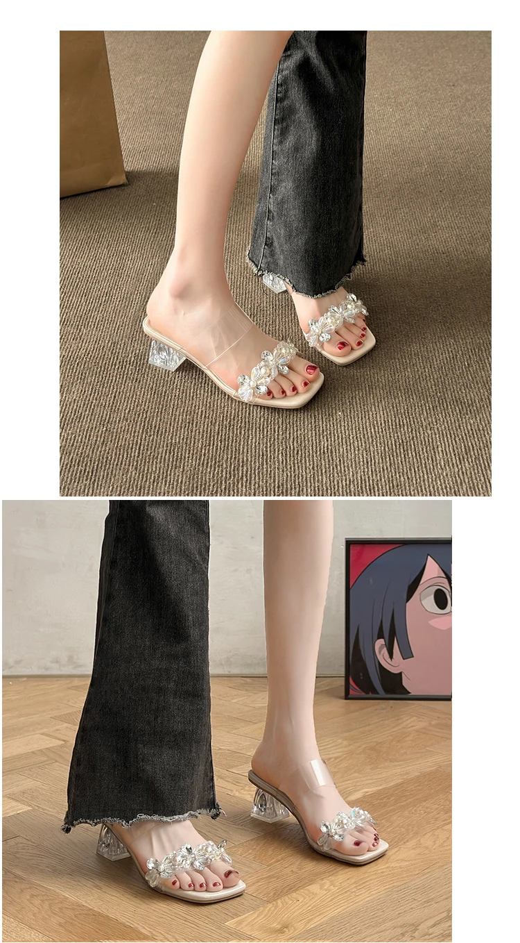 LBSFY - PVC Crystal Women Sandals High Heels Slippers Pumps 2024 Summer New Trend Luxury Dress Party Fashion Walking Slingback Slides